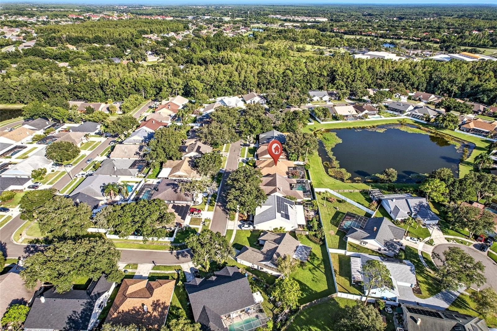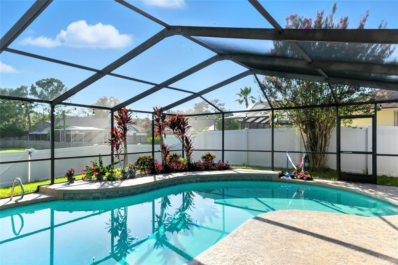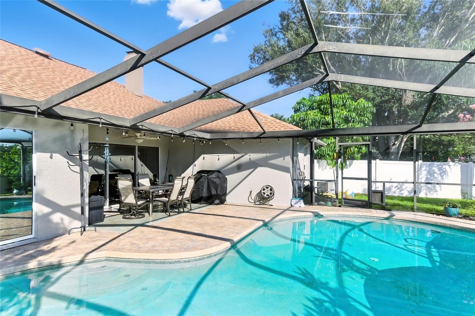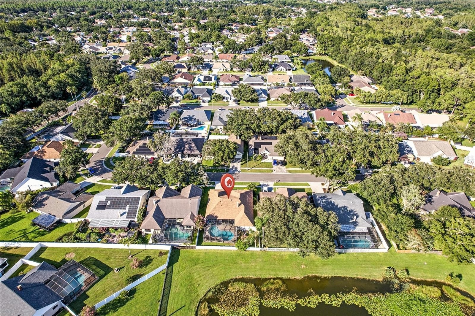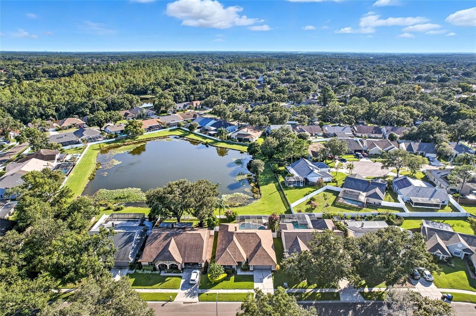 Beautifully Updated Pool Home with Serene Pond Views in Pebble Creek. Step into this meticulously maintained 4-bedroom, 2-bathroom residence featuring a spacious 2-car garage and a sparkling refinished pool—all nestled on a quiet street with a pond view and no rear neighbors. Open-concept layout with high ceilings & a wood burning fireplace in the living room. Gourmet kitchen with granite countertops, maple cabinetry, center island, and a cozy eat-in breakfast nook. Primary bath with a glass block walk-in shower, massaging jets, and modern vanities. No carpet: Porcelain tile in main living areas, hardwood in the primary & one of the bedrooms & luxury vinyl plank in the other 2 bedrooms. Peaceful pond views from the pool that offers a tranquil natural backdrop. Updates: 2025-Pool Pump; 2024-Roof, Water Heater & Dishwasher; 2021-Electric Panel, Garage Door, Pool: Resurfaced, Tile & Screening, Range/Oven; 2020-AC. Pebble Creek has no CDD and a super low HOA fee of $650 per year. Community amenities: pool, tennis courts, pickleball courts, basketball court & playground. Easy access & just minutes to I-75, I-275, Wiregrass, premium outlets, restaurants & medical facilities. Close proximity to the University of South Florida, VA Hospital, Moffitt Cancer Center and downtown Tampa with all it has to offer.