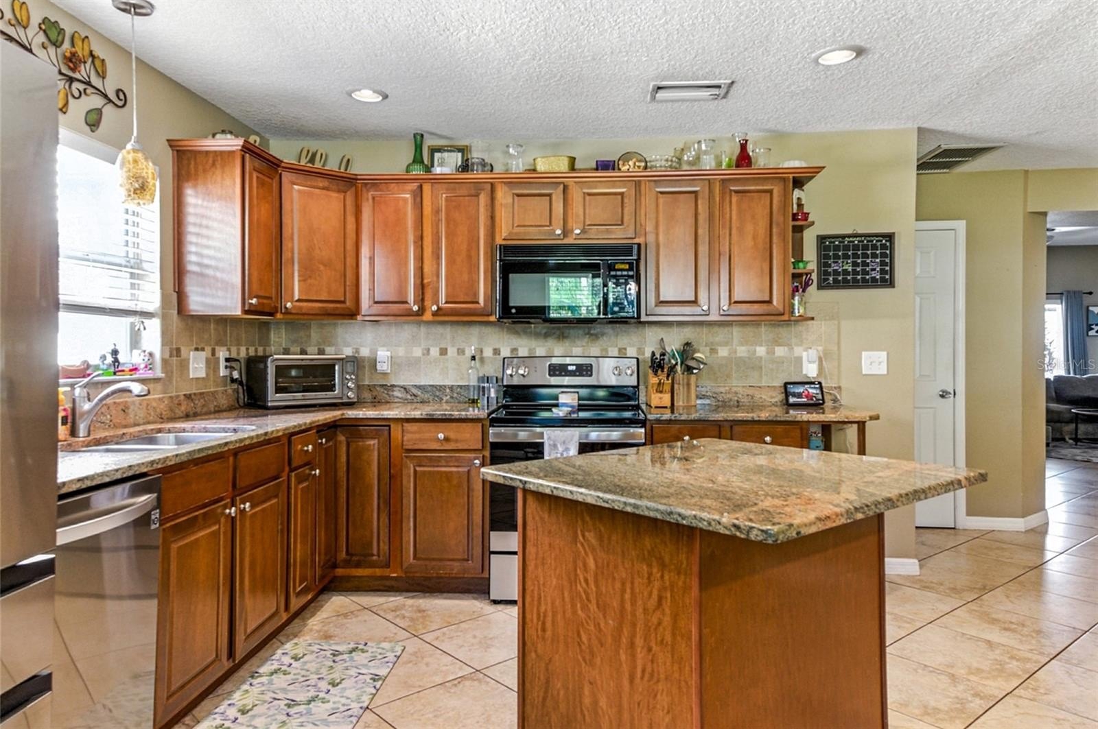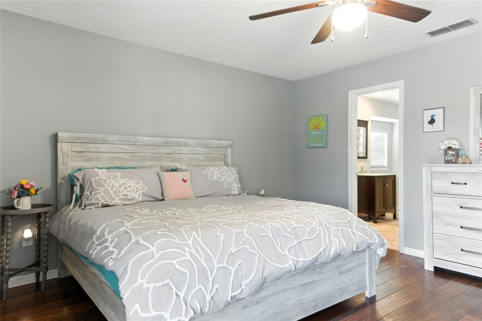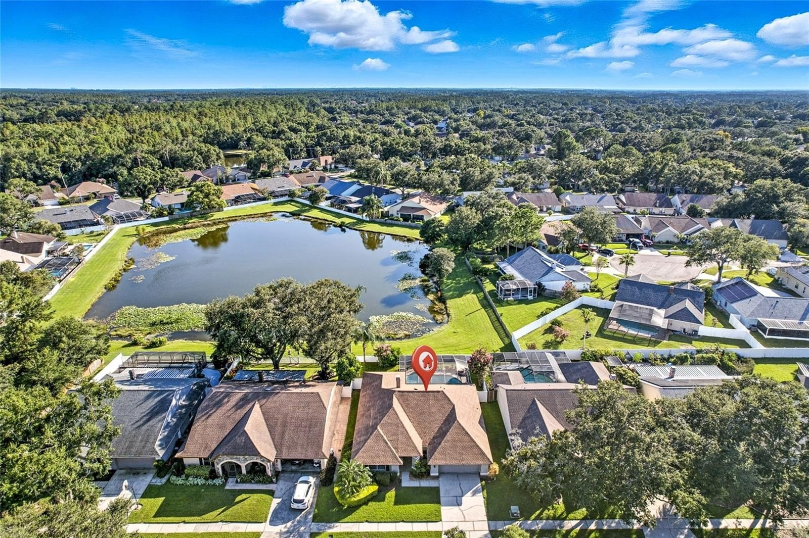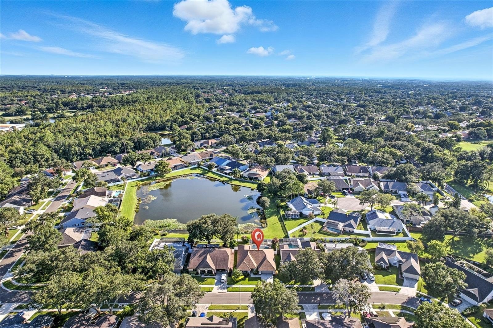 Beautifully Updated Pool Home with Serene Pond Views in Pebble Creek. Step into this meticulously maintained 4-bedroom, 2-bathroom residence featuring a spacious 2-car garage and a sparkling refinished pool—all nestled on a quiet street with a pond view and no rear neighbors. Open-concept layout with high ceilings & a wood burning fireplace in the living room. Gourmet kitchen with granite countertops, maple cabinetry, center island, and a cozy eat-in breakfast nook. Primary bath with a glass block walk-in shower, massaging jets, and modern vanities. No carpet: Porcelain tile in main living areas, hardwood in the primary & one of the bedrooms & luxury vinyl plank in the other 2 bedrooms. Peaceful pond views from the pool that offers a tranquil natural backdrop. Updates: 2025-Pool Pump; 2024-Roof, Water Heater & Dishwasher; 2021-Electric Panel, Garage Door, Pool: Resurfaced, Tile & Screening, Range/Oven; 2020-AC. Pebble Creek has no CDD and a super low HOA fee of $650 per year. Community amenities: pool, tennis courts, pickleball courts, basketball court & playground. Easy access & just minutes to I-75, I-275, Wiregrass, premium outlets, restaurants & medical facilities. Close proximity to the University of South Florida, VA Hospital, Moffitt Cancer Center and downtown Tampa with all it has to offer.