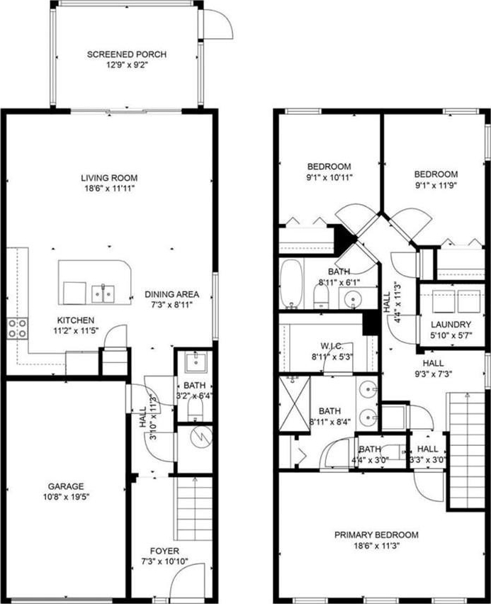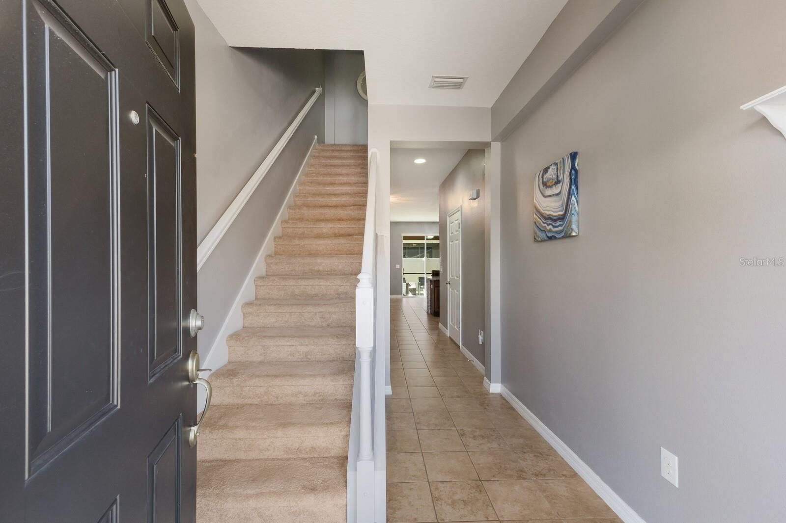 This spacious 3-bedroom, 2.5-bath home features a screened lanai, a 1-car garage, and an oversized driveway with room for two additional vehicles. The laundry room is conveniently located on the second floor for ease of use.