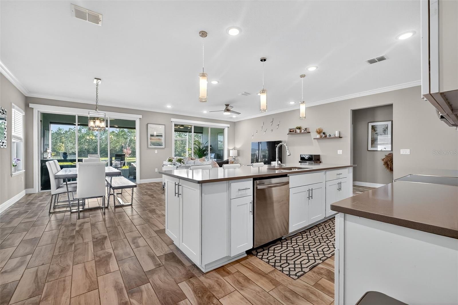 Immaculate and pristinely maintained, this 3-bedroom, 2½-bath home is nestled in the sought-after Huntington Green section of Hunter’s Ridge. Step inside to an inviting open floor plan featuring quartz countertops, stainless steel appliances, and a large kitchen island ideal for entertaining. Two triple-pane sliding doors fill the living space with natural sunlight and lead to an expansive screened-in lanai—perfect for relaxing or enjoying morning coffee while taking in the serene backyard views of the pond and wooded preserve.