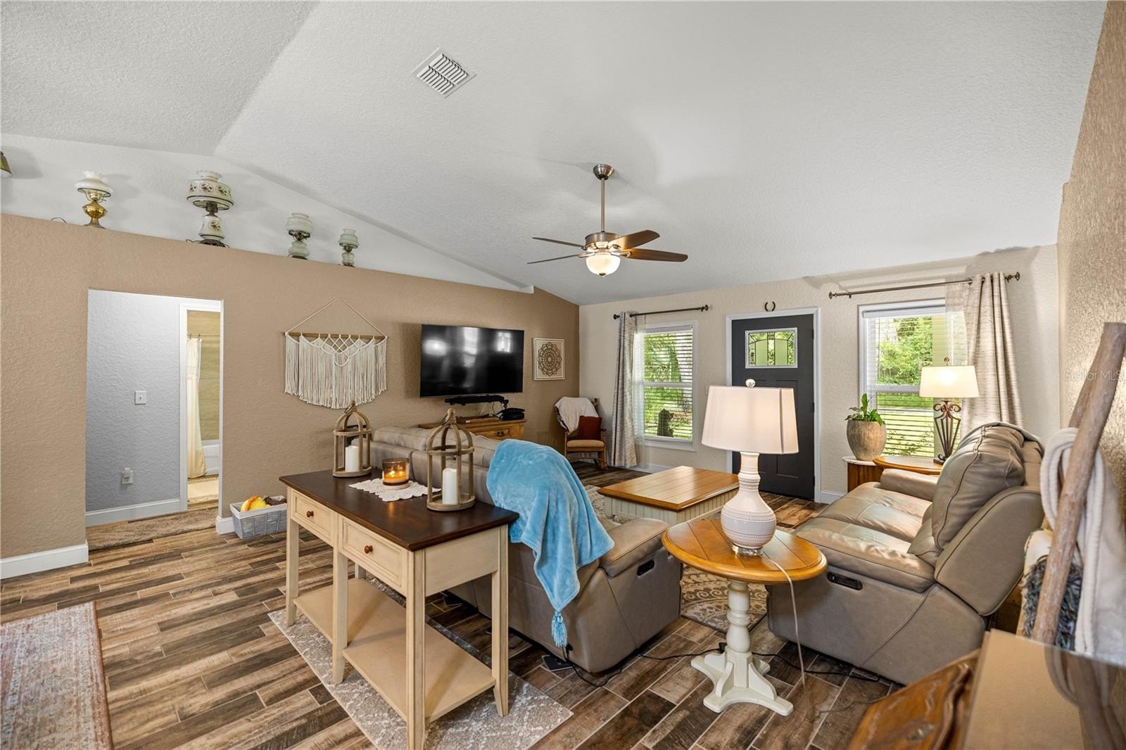 ~~Farmhouse Charm Meets Modern Living~~ Welcome to this stunning 3-bedroom, 2-bath farmhouse-style home built in 2022 with over $50,000 in upgrades!!! ~NO HOA~ From the moment you arrive, you’ll notice the beautiful curb appeal that carries through into the spacious, fully fenced backyard. Inside, the bright and open floor plan features a kitchen with quartz countertops, a large pantry, soft-close drawers, upgraded sink, new light fixtures, and a solar tube for natural light. An inside laundry room with sink, extra storage, and a folding table adds everyday convenience. The primary suite is a true retreat with a walk-in closet, dual vanity sinks, and a sleek walk-in shower. Step outside to enjoy your backyard oasis—complete with custom brick pavers, professional rock landscaping, a large patio with pull-down shades, ceiling fan, and plenty of room for entertaining. There’s also space to park your boat or RV, plus extra driveway parking with asphalt millings. Additional upgrades include: Saltwater filtration system, Commercial-grade water heater, Whole-house gutters, Aluminum attic stairs for easy access, and Convenient garage entry from the backyard. This home is the perfect blend of modern finishes, thoughtful upgrades, and timeless farmhouse style—ready for you to move in and enjoy! Best of all, it’s just minutes to Publix, shopping, restaurants, doctors, and more!