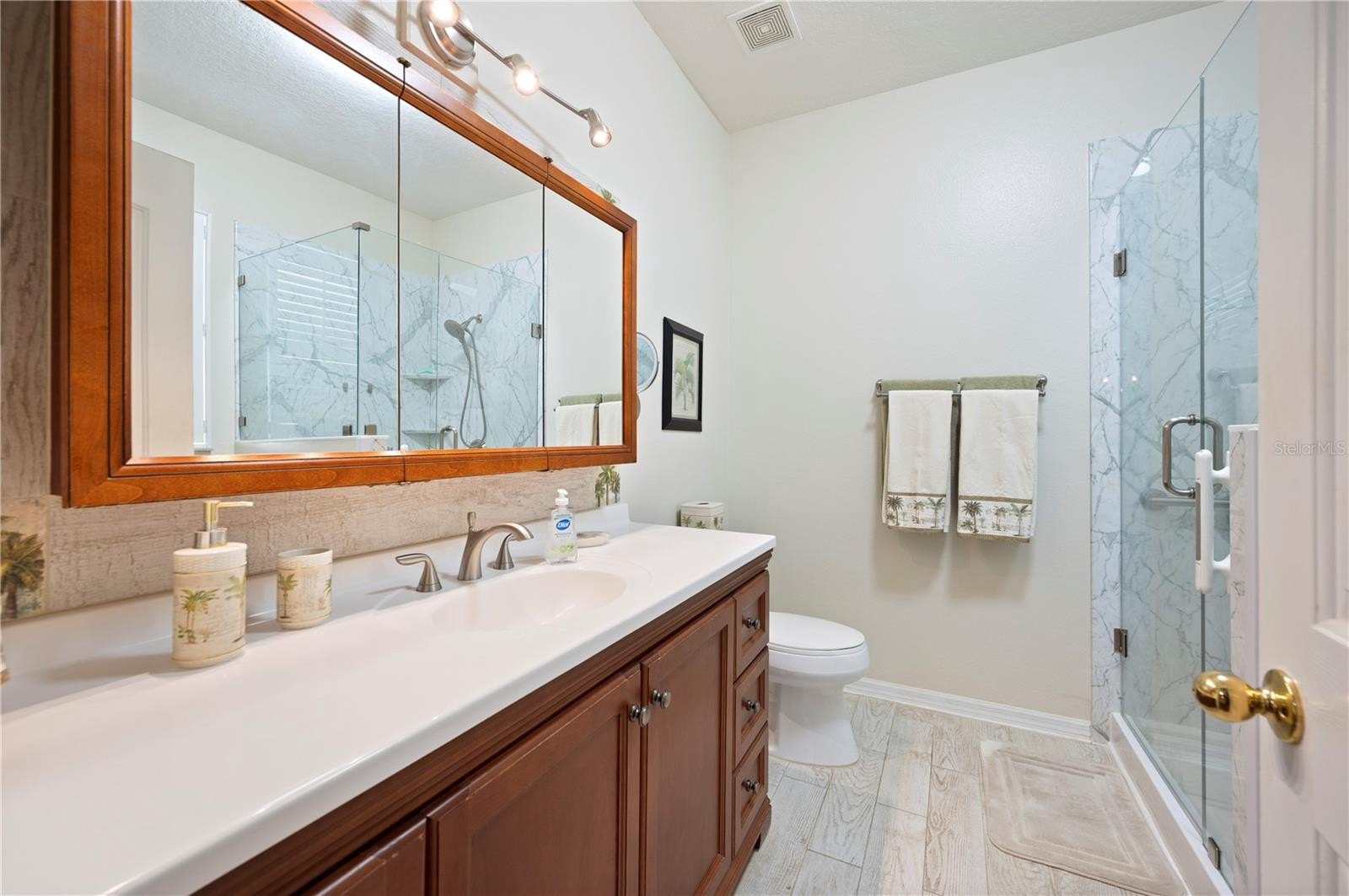 The primary suite is very large and provides a serene escape, featuring an updated spa-like en-suite bathroom, and a spacious walk-in closet. This homes second bathroom has been nicely updated and is shared by 2 additional bedrooms that offer spacious versatility for guests & Family. Outside, enjoy the tranquility of the waterfront setting from your enormous Ultra screened patio, where your panoramic view allows for watching golfers in the distance and take in the stunning sunsets over the pond where there is often magnificent wildlife to enjoy! View this homes feature sheet in the attachments section of the listing . Roof 2022,AC & Air handler 2023,water heater 2018.