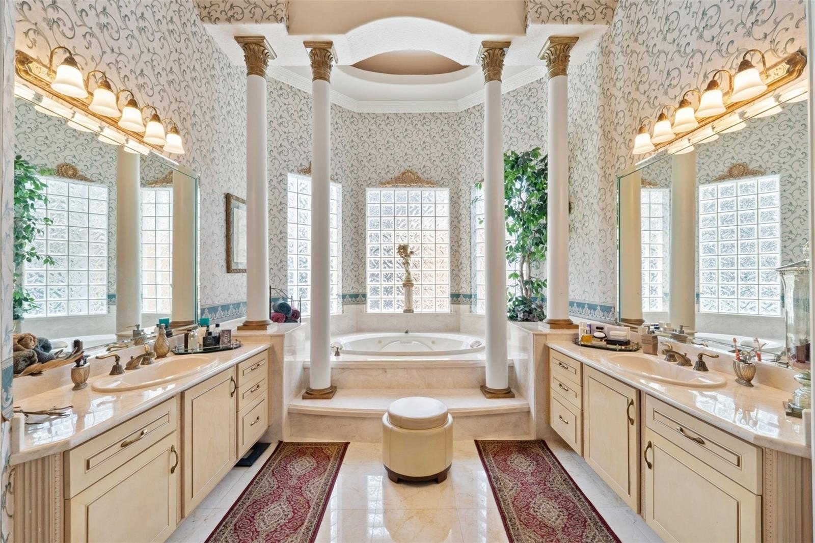 MOTIVATED SELLER! A Rare Opportunity Awaits: Own a Custom Estate in Coveted South Bay. Discover this exceptional, custom-designed residence in the highly desirable South Bay community of Southwest Orlando's Dr. Phillips area. Crafted by a renowned architect, this magnificent single-family home exudes sophistication from the moment you arrive via the improved brick paver circular driveway. Step inside this impeccably maintained home to experience refined living, greeted by a striking split staircase. The formal living spaces showcase soaring 16' pocket tray ceilings and designer chandeliers, setting a tone of understated elegance. The state-of-the-art kitchen, recently modernized with high-end GE Café appliances, seamlessly flows into the expansive family room, perfect for grand entertaining. Each of the five spacious bedroom suites offers a private sanctuary with walk-in closets and en-suite bathrooms. This home boasts superior construction, including solid block and steel-wrapped rafters, enhanced by a new air conditioning system. The screened outdoor living space is an entertainer's dream, featuring a stunning custom pool, spa, and fountain, plus a convenient pool house with a shower and grill. While move-in ready, this distinguished residence presents a unique canvas for the discerning buyer to apply their personal vision, offering an unparalleled return on investment for those ready to customize and elevate this luxurious space. South Bay offers residents exclusive amenities including private tennis courts and, most notably, private dock access to the renowned Butler Chain of Lakes via Lake Tibet. Its premier location provides unparalleled convenience to world-class dining on Restaurant Row, the Bay Hill Golf Course, major theme parks, and exemplary Dr. Phillips schools. This rare opportunity to own a custom estate has created an opening for an attractive and expedited transaction. The Sellers are highly motivated and receptive to all qualified offers. Bring us your vision.