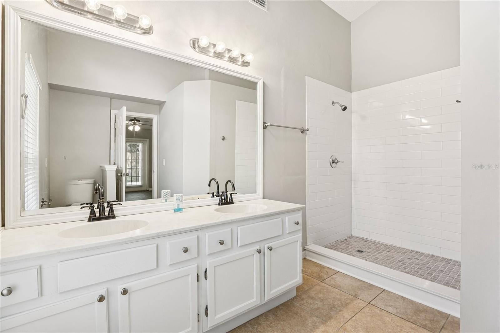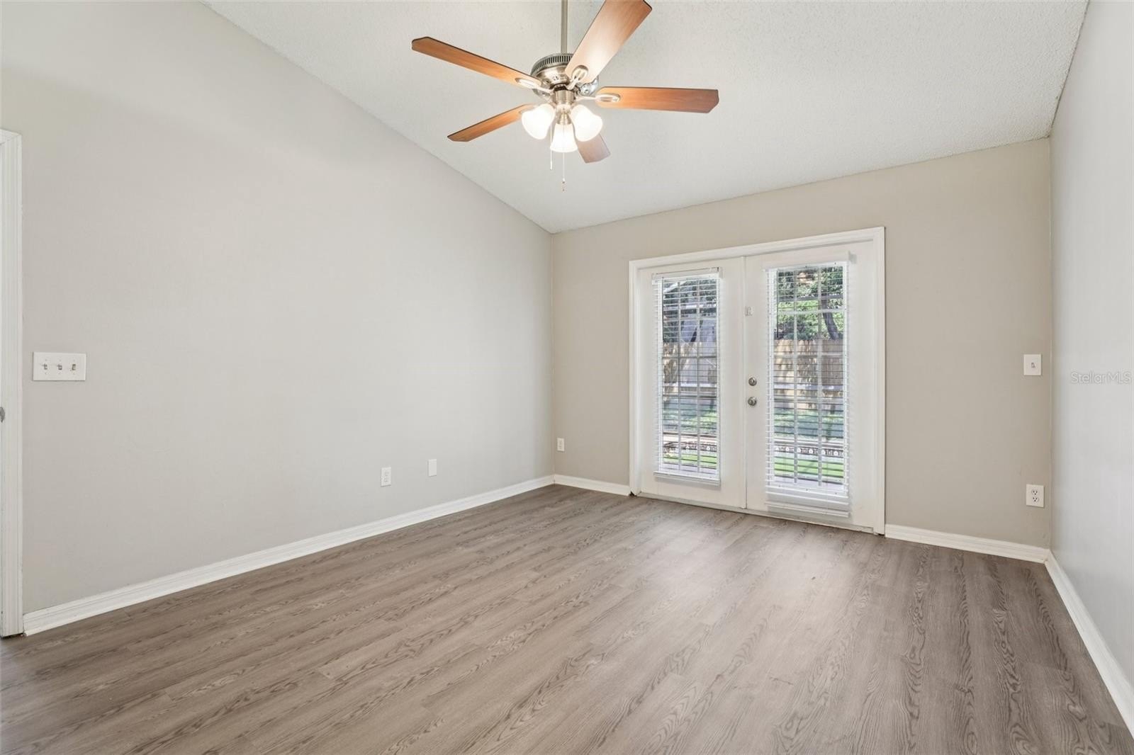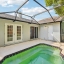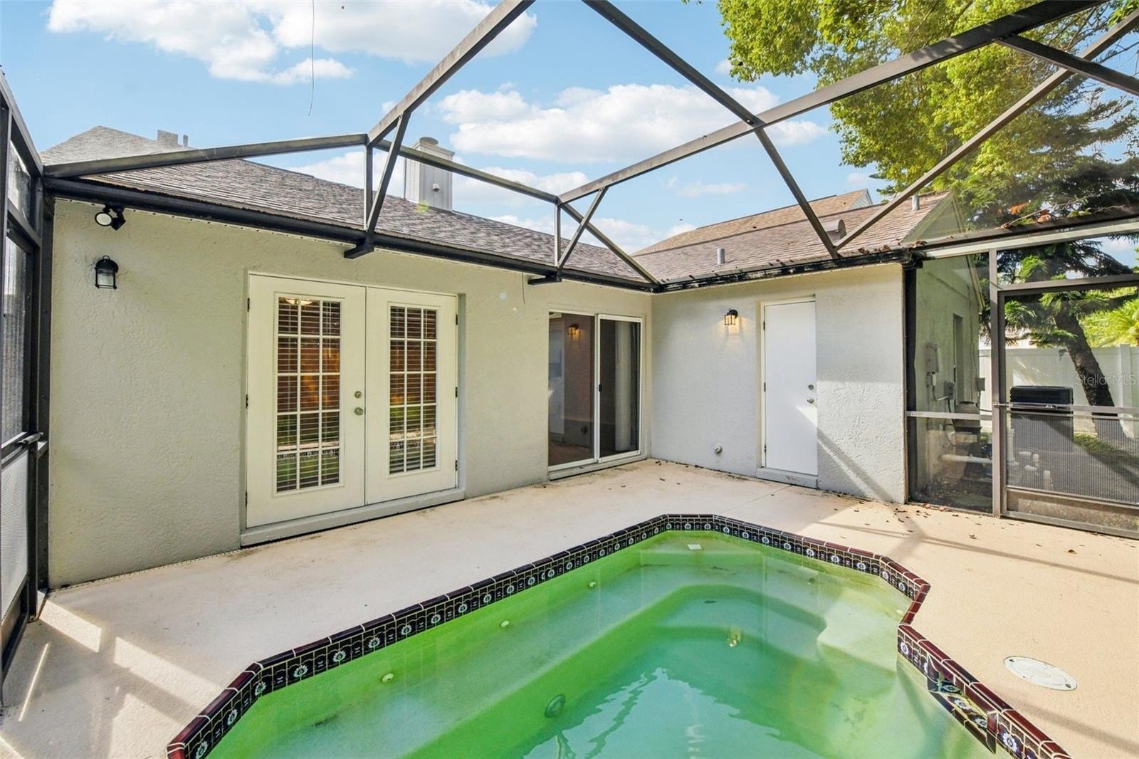Enjoy the privacy of the split bedroom layout, with a generous primary suite offering French doors that open directly to the pool area, a walk-in closet, and an en-suite bathroom with double vanity sinks and a stand-alone shower. Two additional guest bedrooms and a full bath with a tub/shower combo are tucked away on the opposite side of the home.