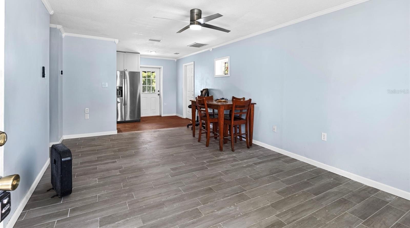 Welcome to this charming single-family ranch-style residence nestled in the heart of Orlando. With a thoughtful layout, it offers three bedrooms and one-and-a-half bathrooms across a cozy living space. The home features concrete block construction, tile or laminate flooring throughout, and central air conditioning.