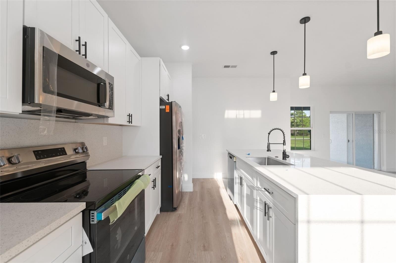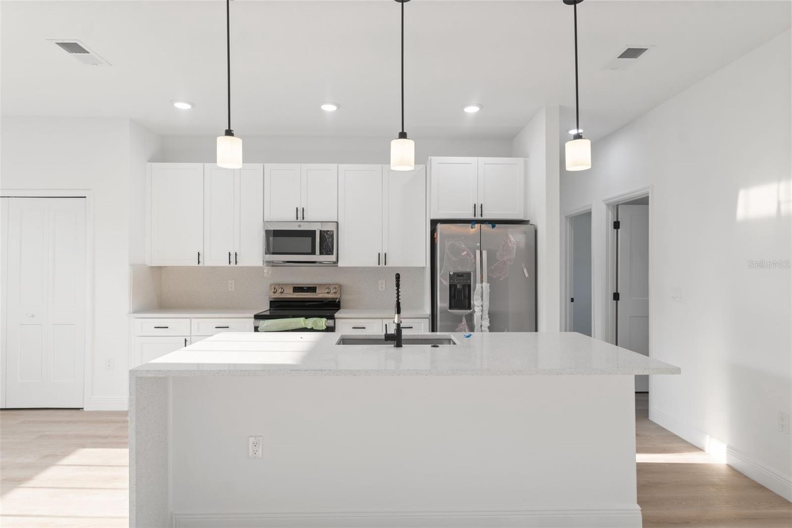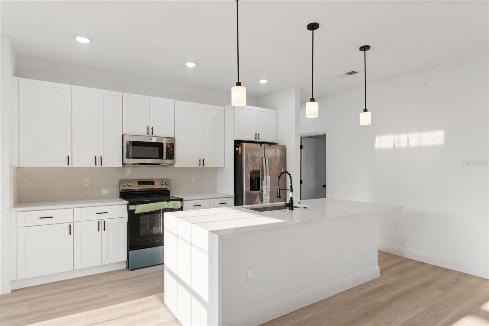 At the heart of the home is the charming kitchen, equipped with solid wood cabinets, stone countertops, and modern appliances—all included. A space that combines style and functionality, whether for quick meals or entertaining.