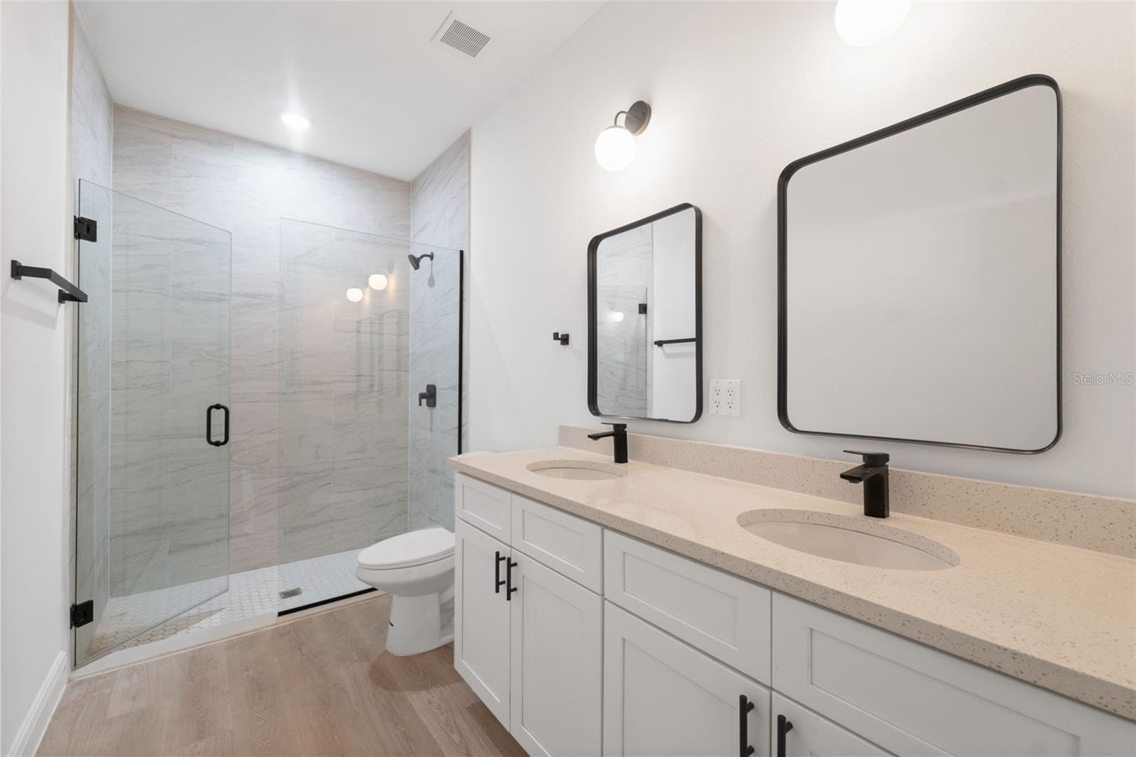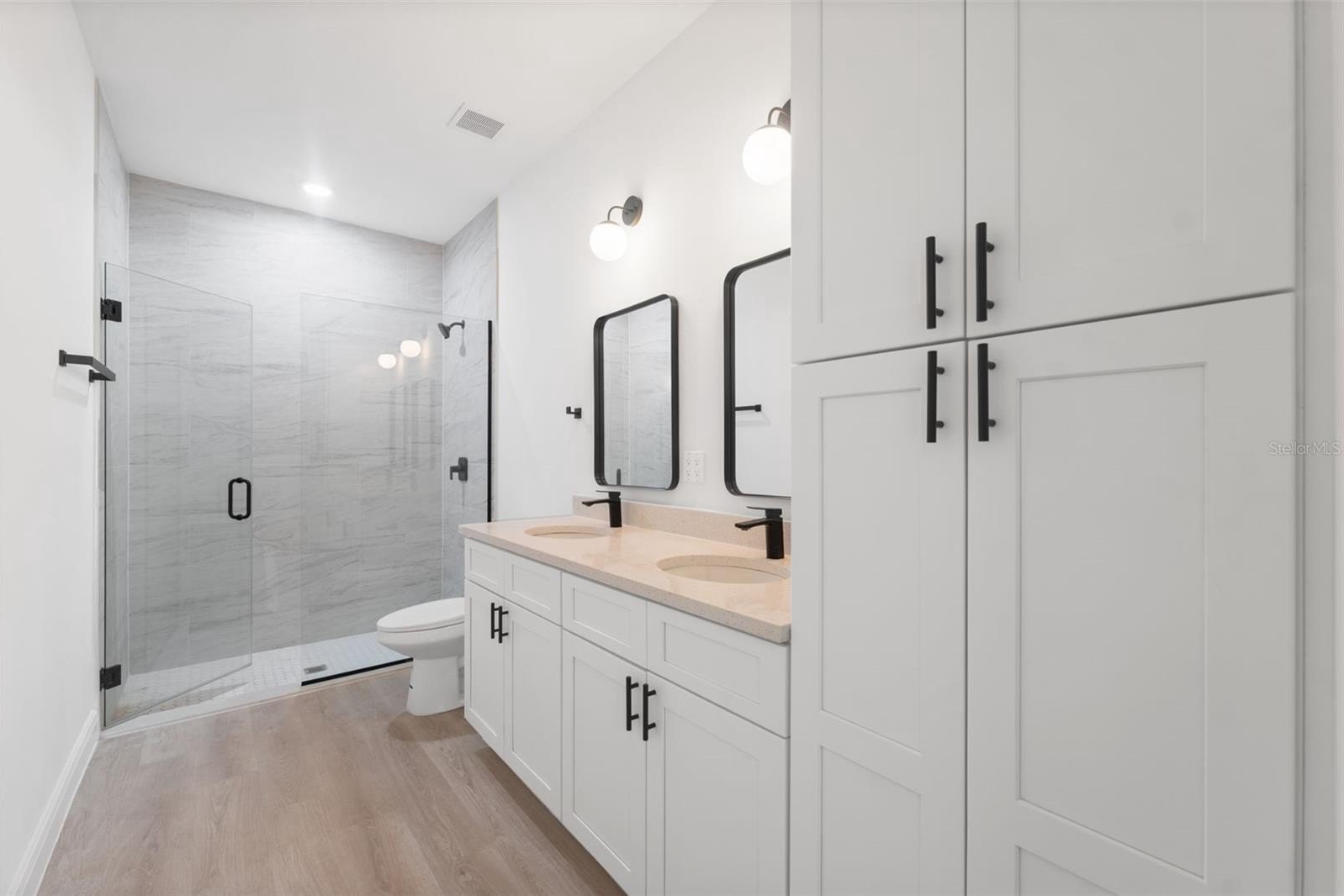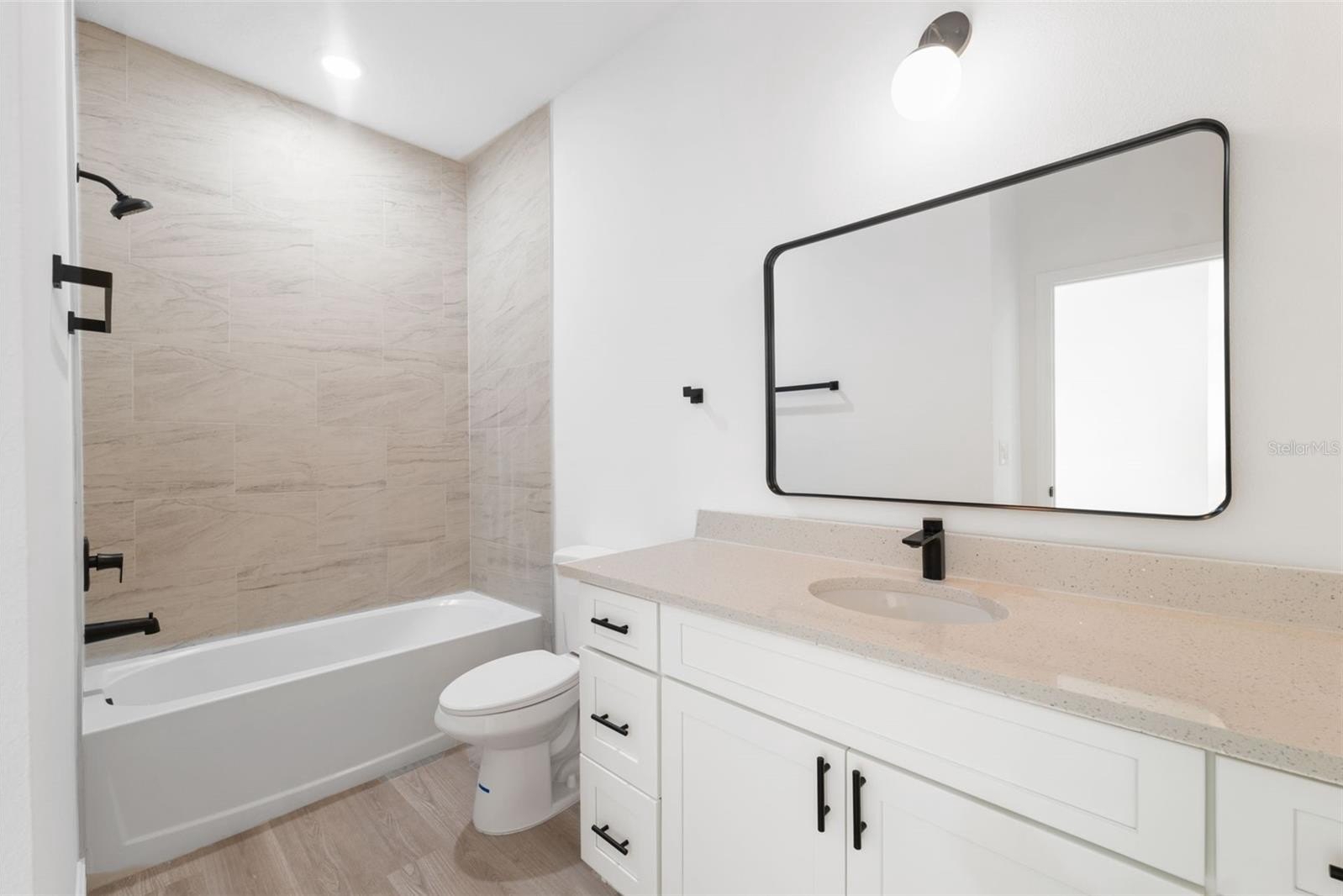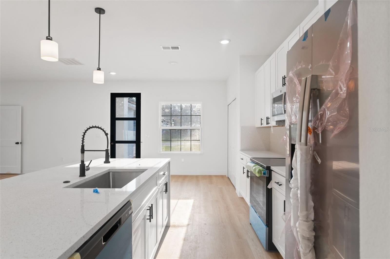 At the heart of the home is the charming kitchen, equipped with solid wood cabinets, stone countertops, and modern appliances—all included. A space that combines style and functionality, whether for quick meals or entertaining.