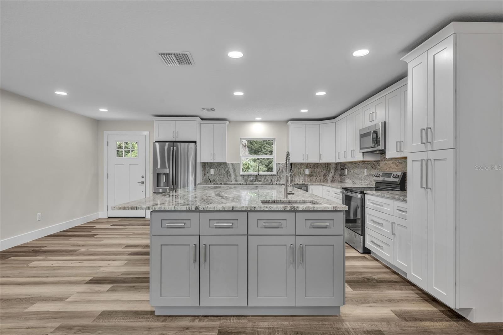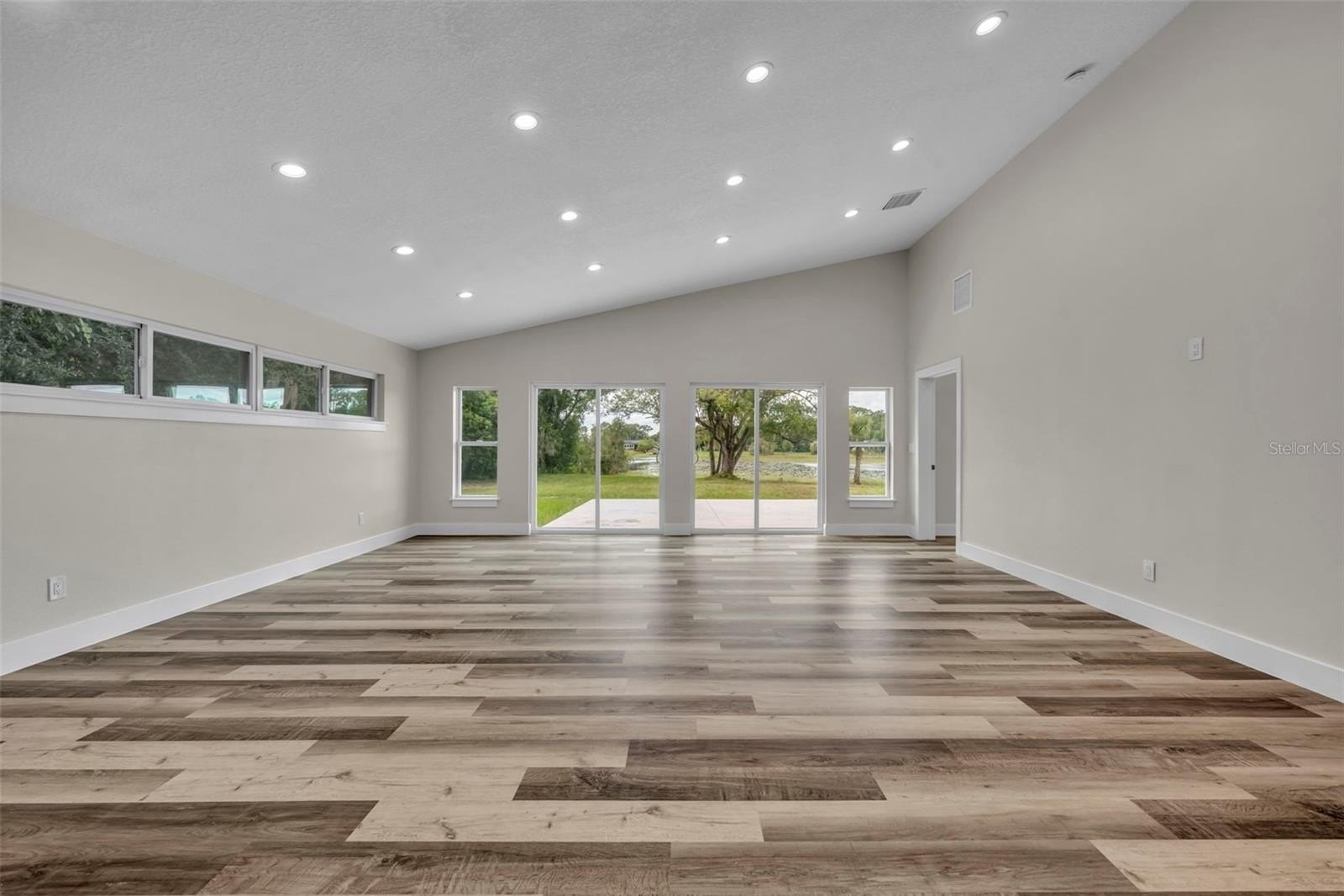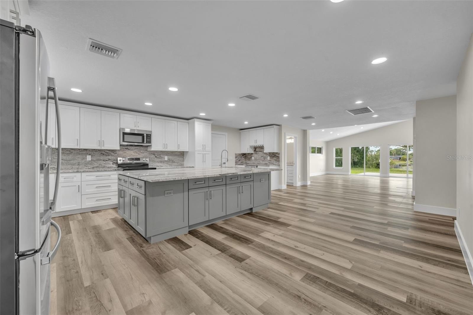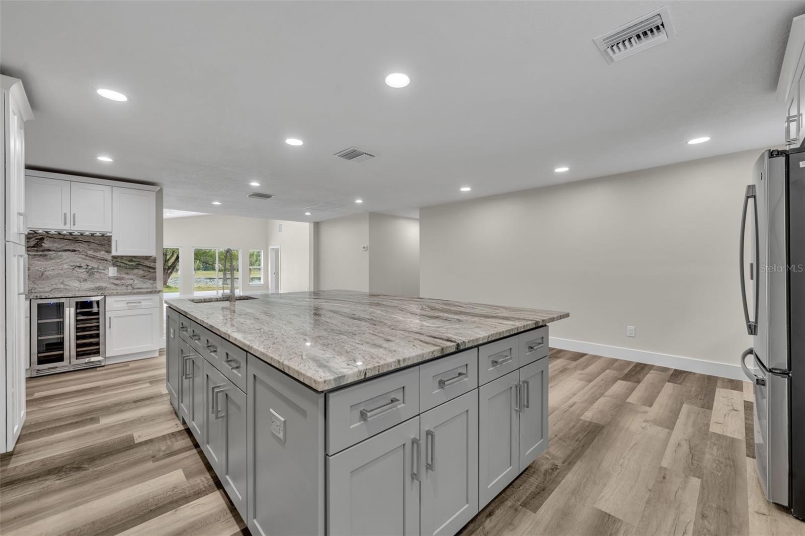 PRICE REDUCED! Experience elevated lakefront living with this exquisite 4-bedroom, 3-bath estate nestled on 3 private acres along the tranquil shores of Little Lake Georgia in Oviedo, Florida. Thoughtfully redesigned with luxury and lifestyle in mind, this exceptional home offers the perfect blend of sophistication, comfort, and space to entertain—indoors and out. At the heart of the home lies a true chef’s kitchen, featuring an oversized quartz island, sleek quartz backsplash, premium appliances, and a built-in wine fridge—ideal for hosting elegant gatherings or casual nights in. The open-concept design flows effortlessly into expansive living space, all accented by wide-plank LVP flooring and designer finishes.
