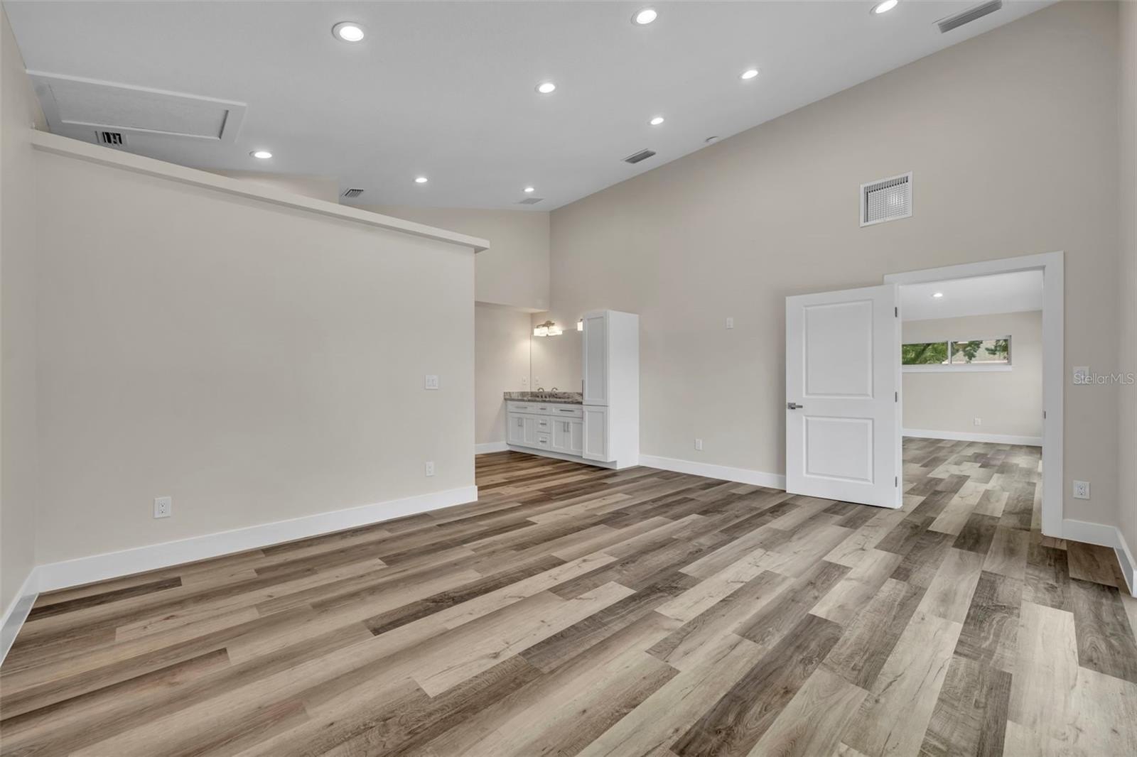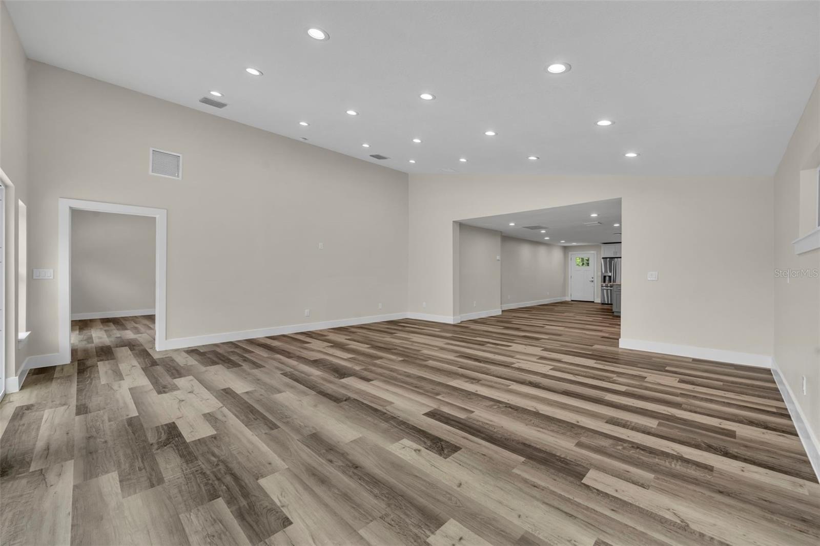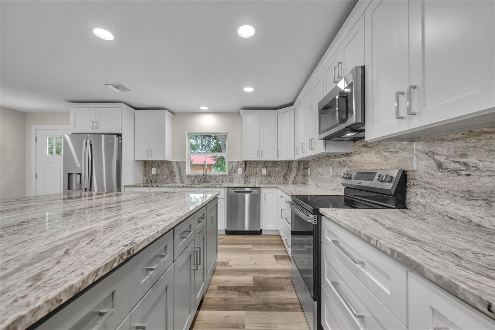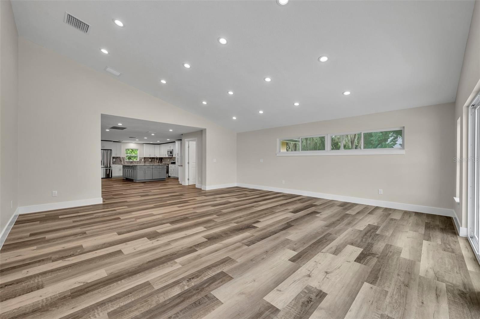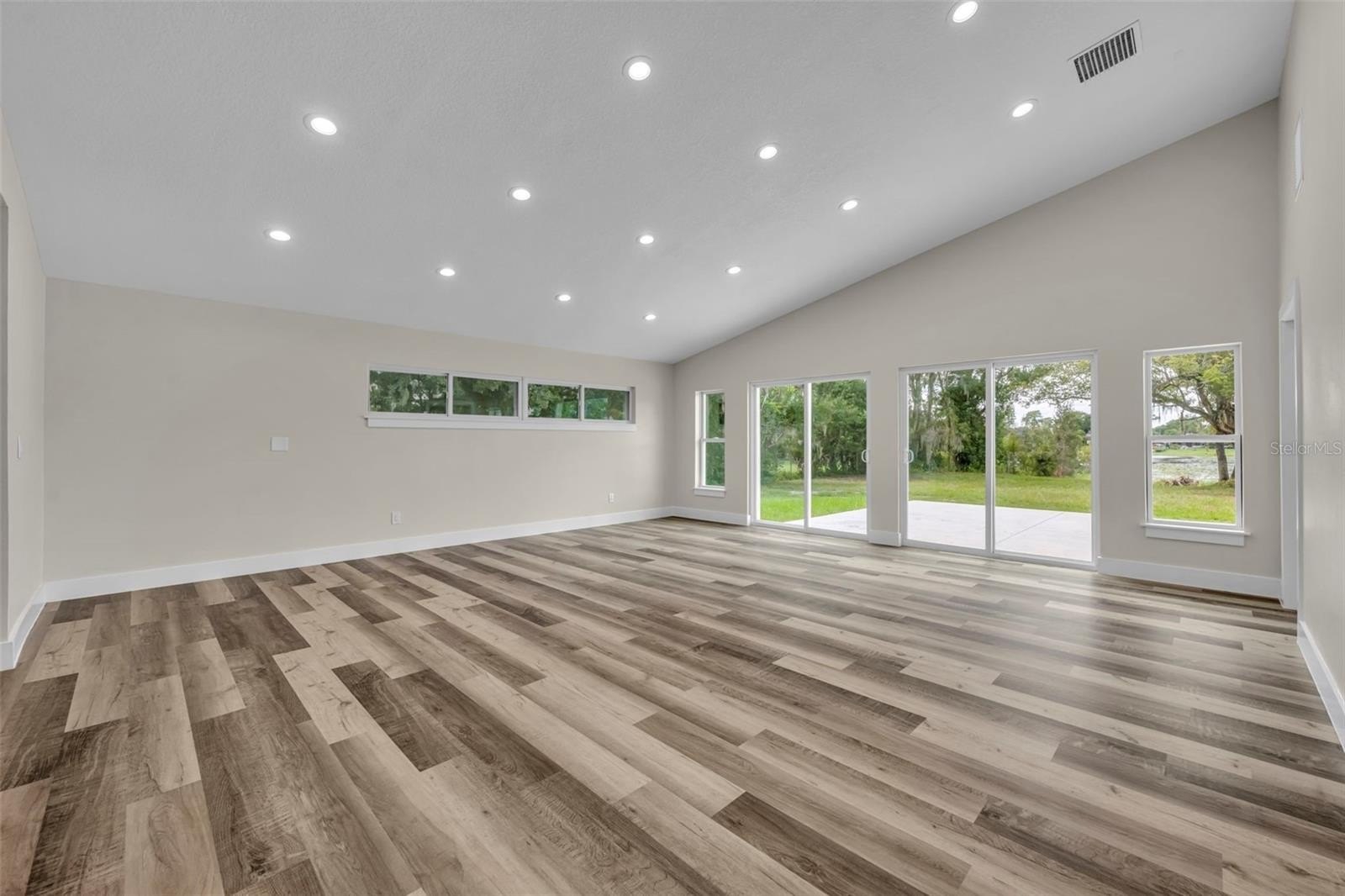 PRICE REDUCED! Experience elevated lakefront living with this exquisite 4-bedroom, 3-bath estate nestled on 3 private acres along the tranquil shores of Little Lake Georgia in Oviedo, Florida. Thoughtfully redesigned with luxury and lifestyle in mind, this exceptional home offers the perfect blend of sophistication, comfort, and space to entertain—indoors and out. At the heart of the home lies a true chef’s kitchen, featuring an oversized quartz island, sleek quartz backsplash, premium appliances, and a built-in wine fridge—ideal for hosting elegant gatherings or casual nights in. The open-concept design flows effortlessly into expansive living space, all accented by wide-plank LVP flooring and designer finishes.