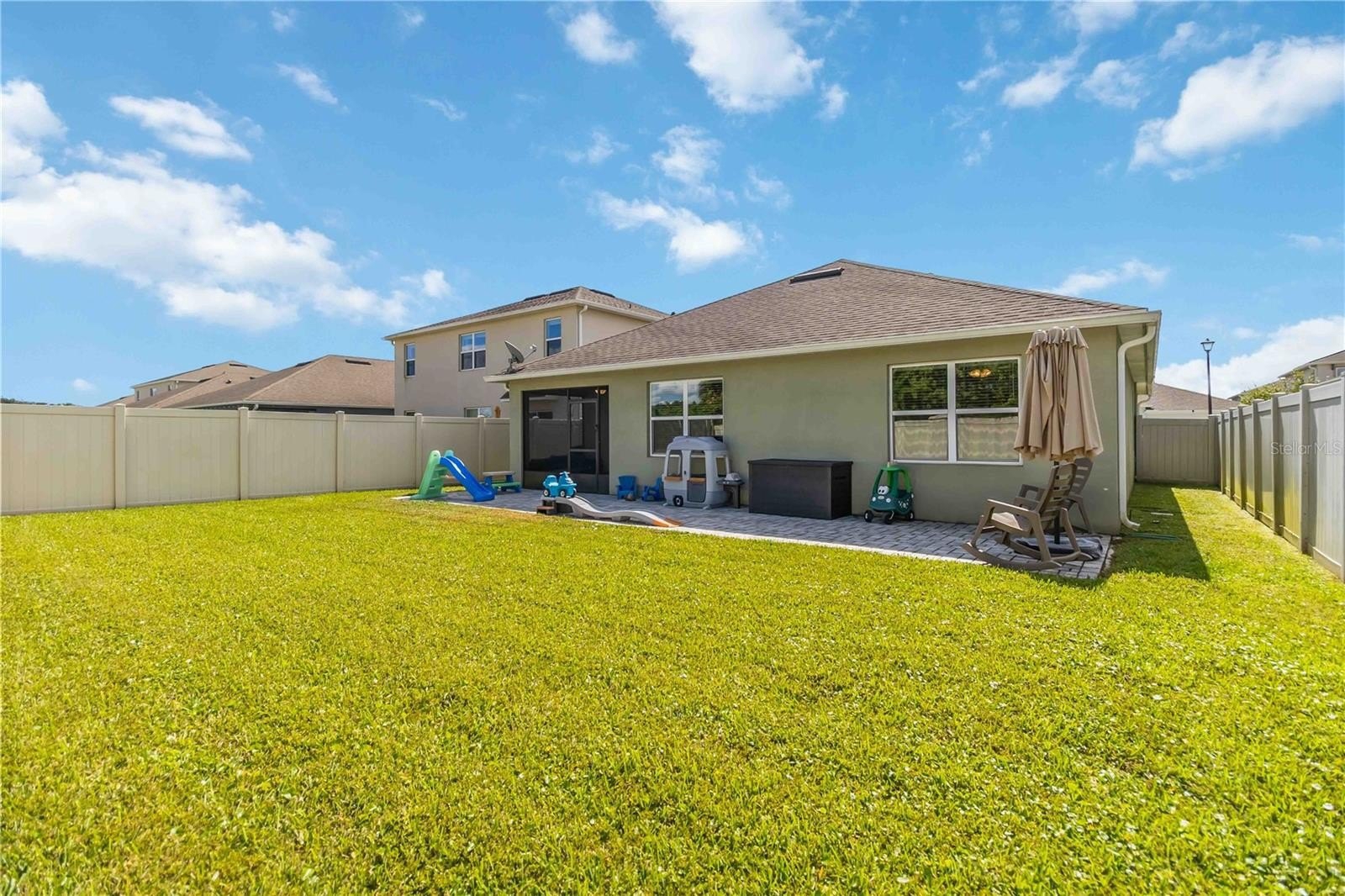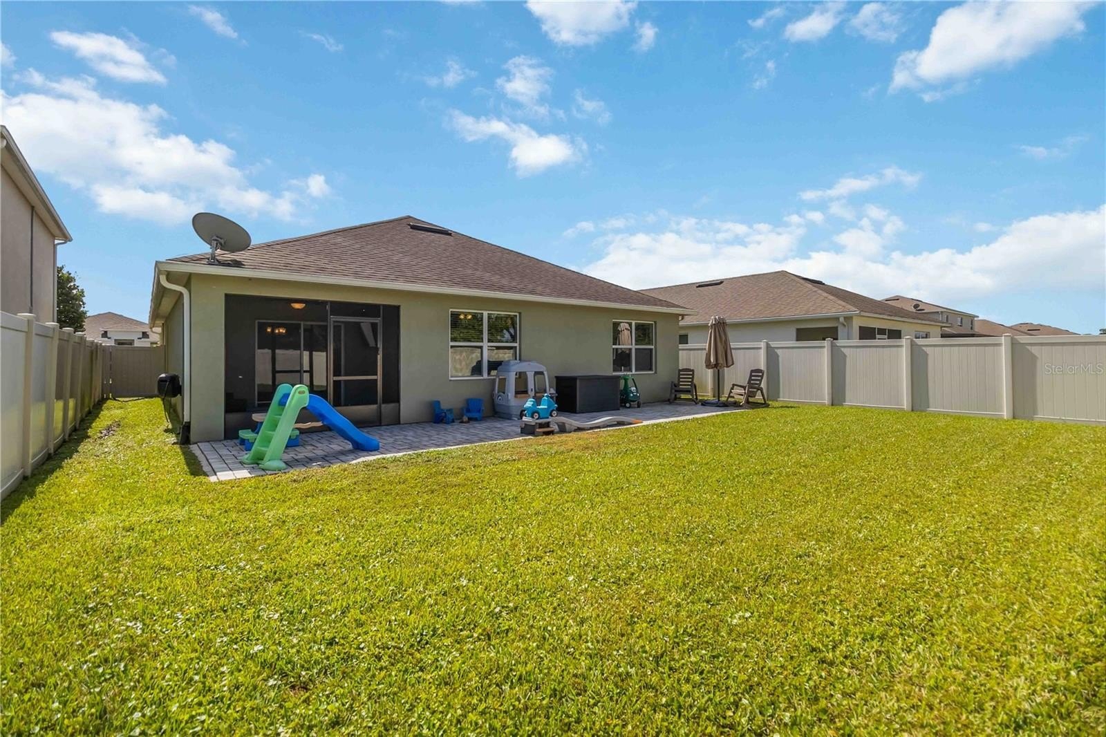 Outside, enjoy a covered lanai, extended paver patio, and a fully fenced backyard—perfect for pets, relaxing, or weekend BBQs.