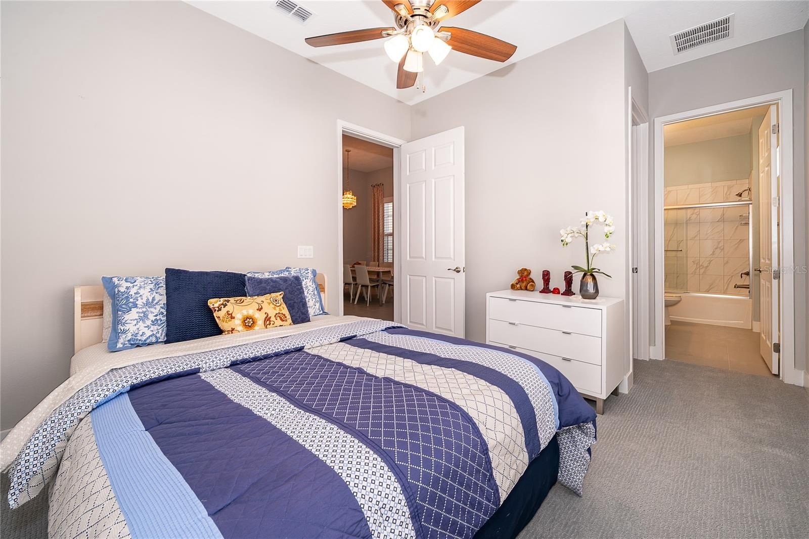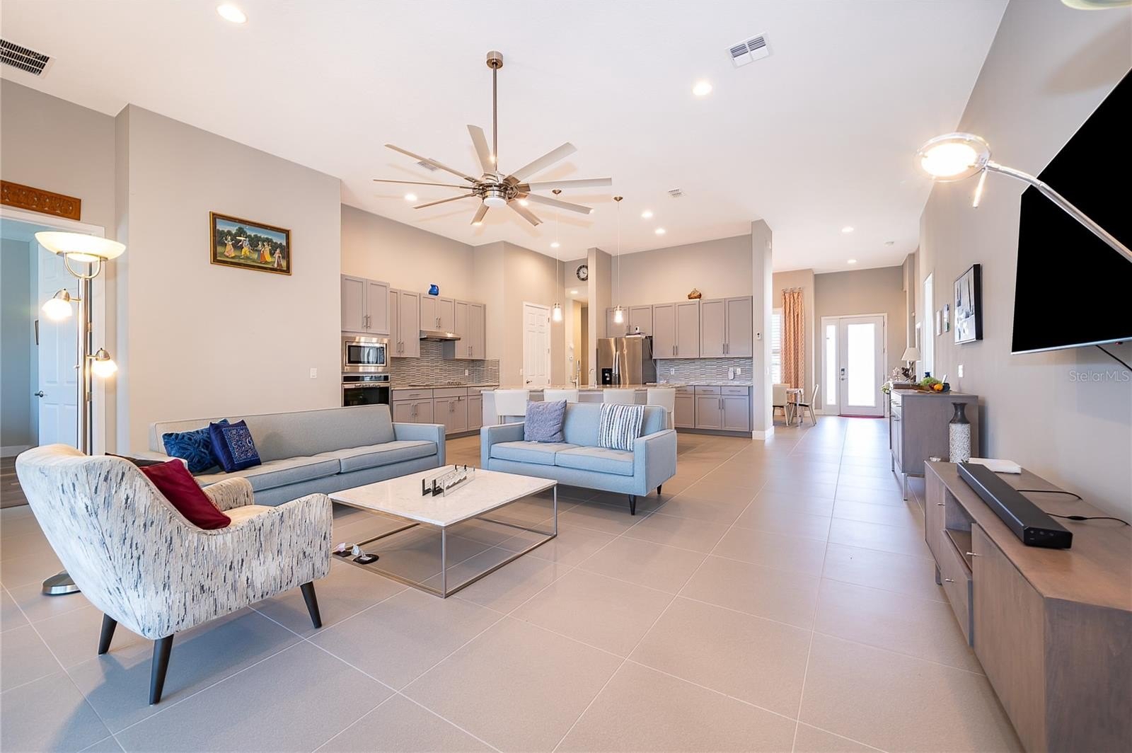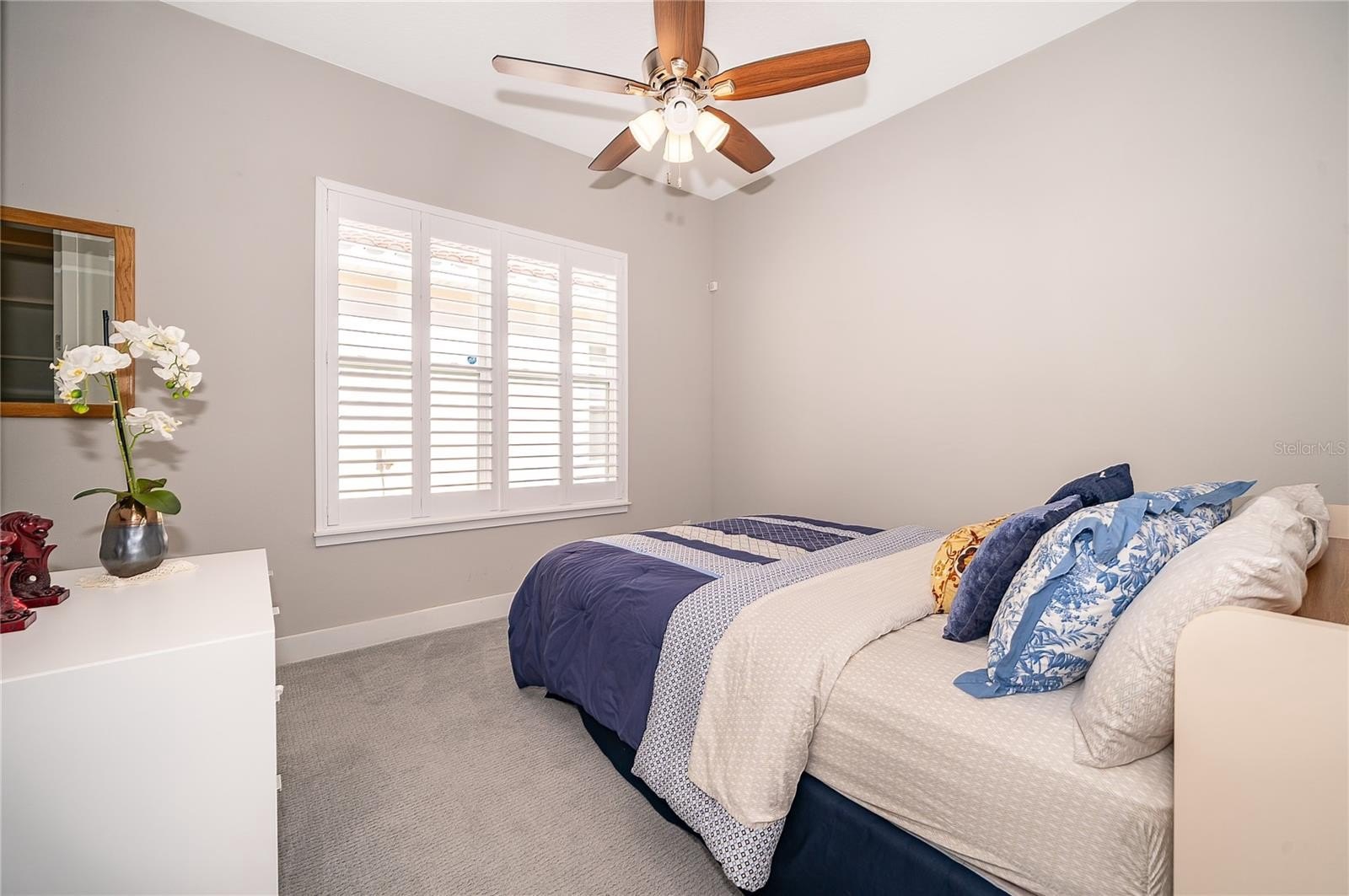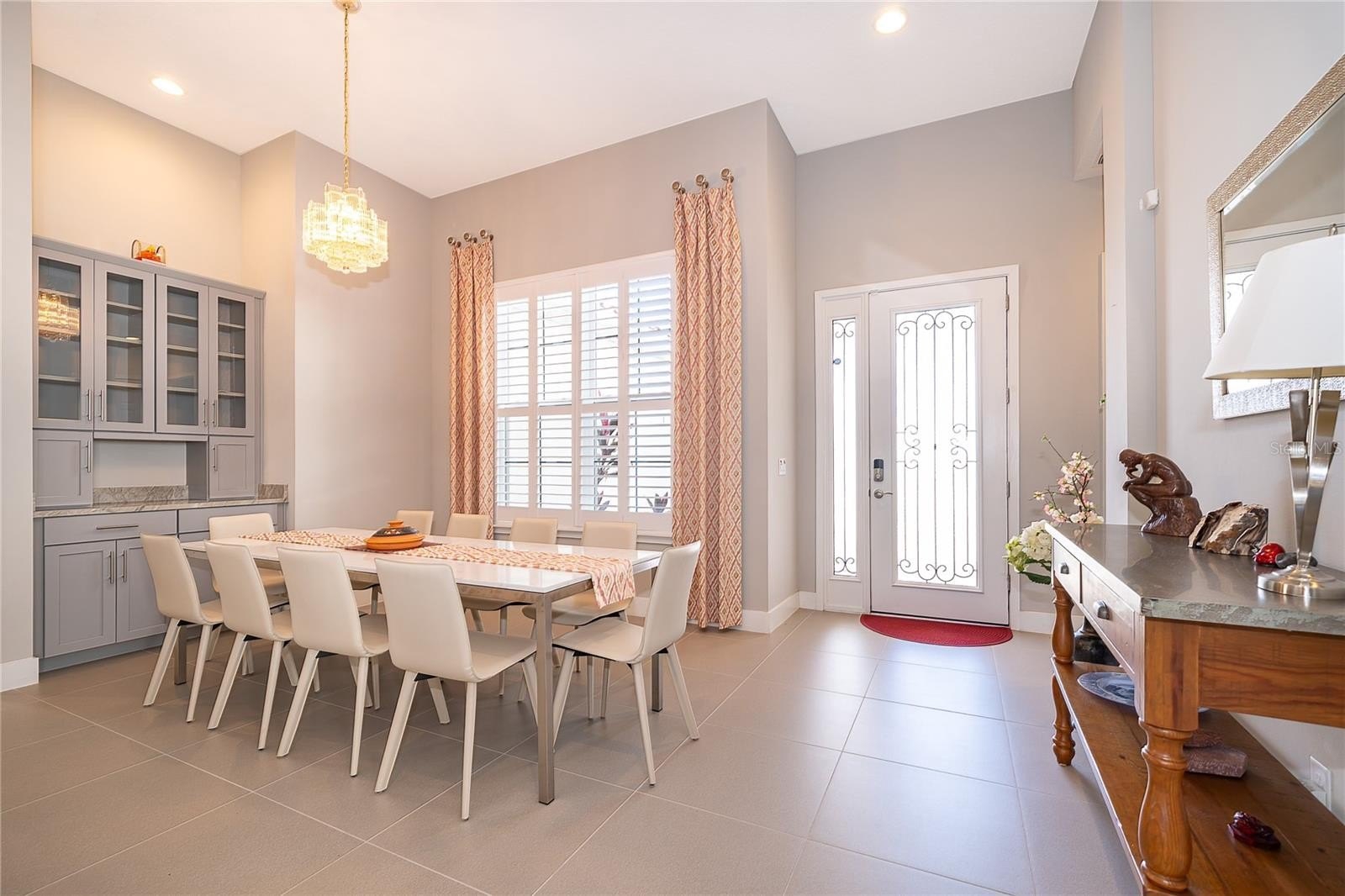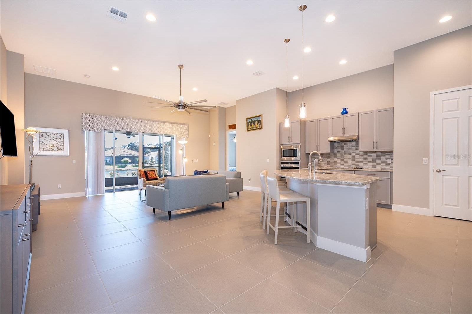 Location, Location, Location!!! You will not want to miss this outstanding opportunity to be an owner in this amazing 55+ Luxury Active Adult Gated Community of Serenity Reserve! This elegant one-story residence features 3 spacious bedrooms, each with its own private full bath and walk-in closet, plus a bonus room. With 3.5 baths and a two-car garage, every detail of this semi-custom luxury home has been thoughtfully designed for comfort and convenience. Enjoy the premium water and fountain view lot from the comfort of your open-concept living space, enhanced by 12-foot ceilings, 8-foot doorways, and 12’ pocket sliding lanai doors that flood the home with natural light. The home showcases porcelain tile in all wet areas, rich wood flooring in the primary bedrooms, and granite countertops throughout the gourmet kitchen and bathrooms. The kitchen has an oversized central prep island, modish backsplash, 42” cabinets, and stainless steel Whirlpool appliances. Additional upgrades include:-Two master suites with custom closets, Wider paver driveway, Utility sink in the laundry room, Custom shades, Whole-home water purification system.