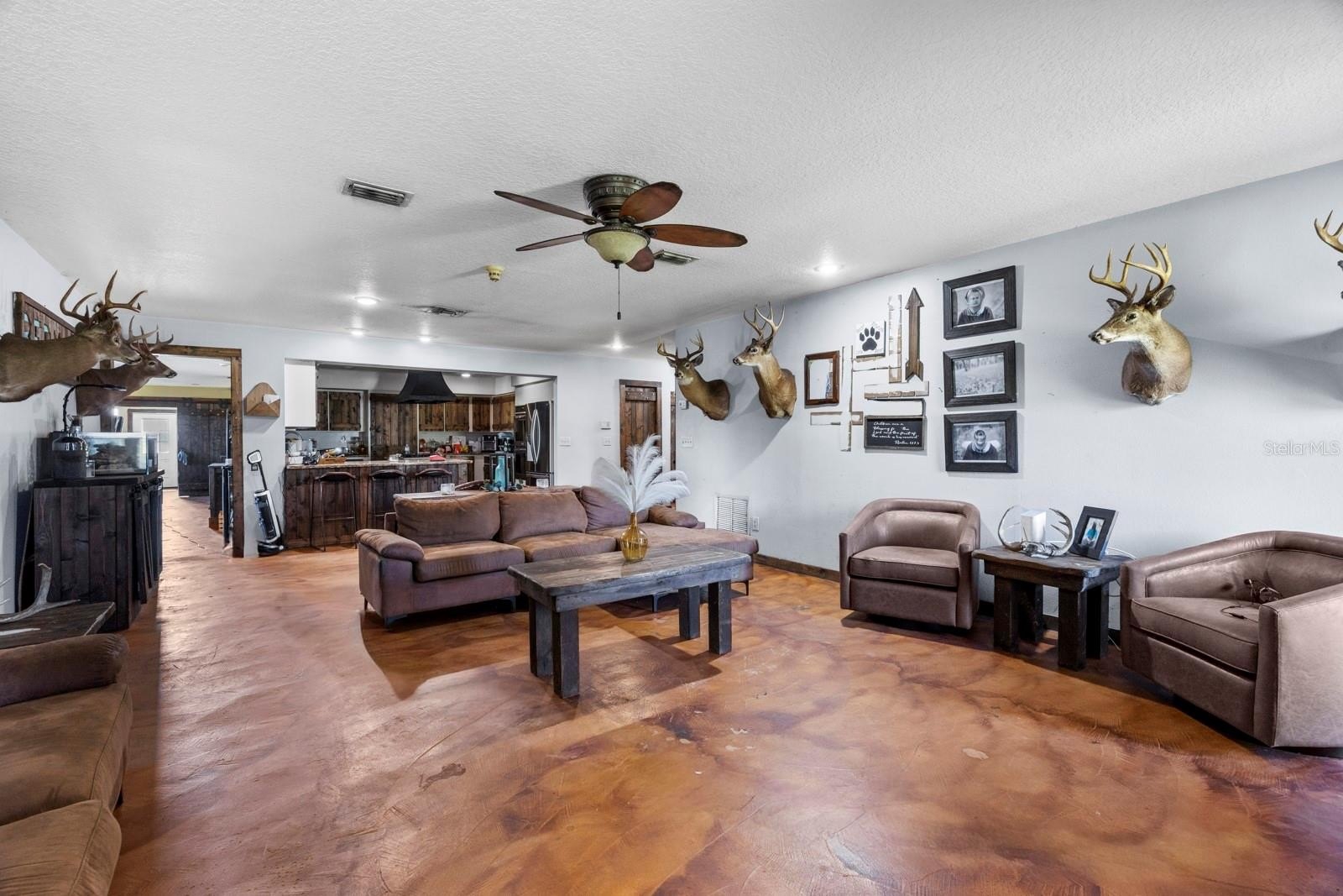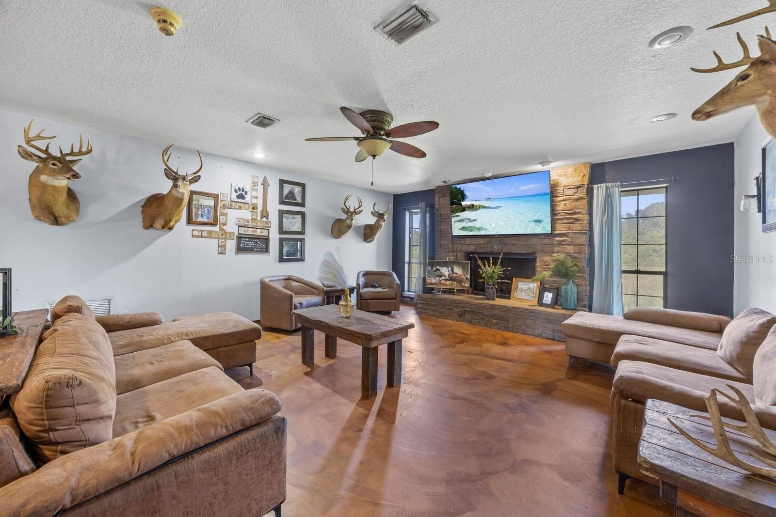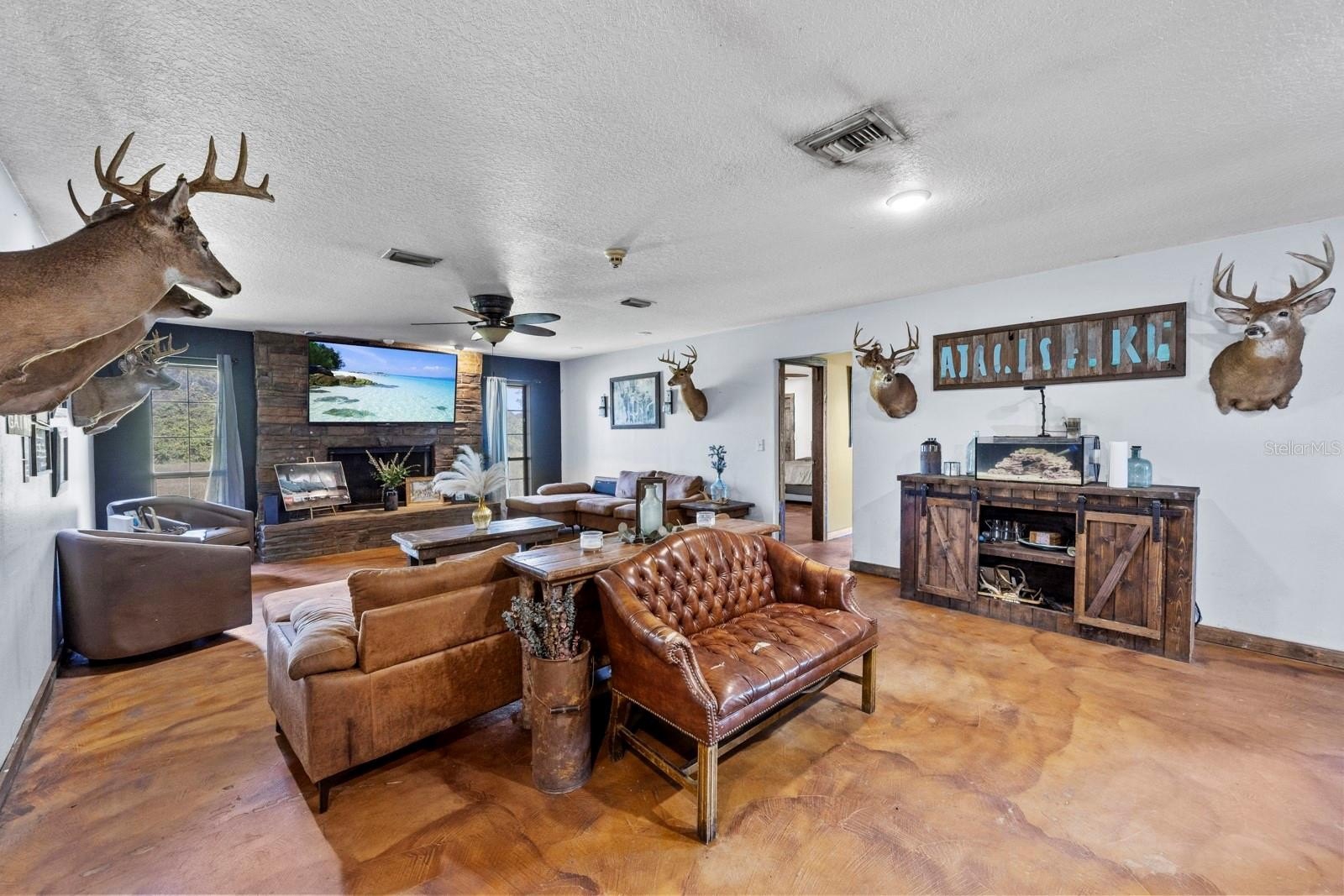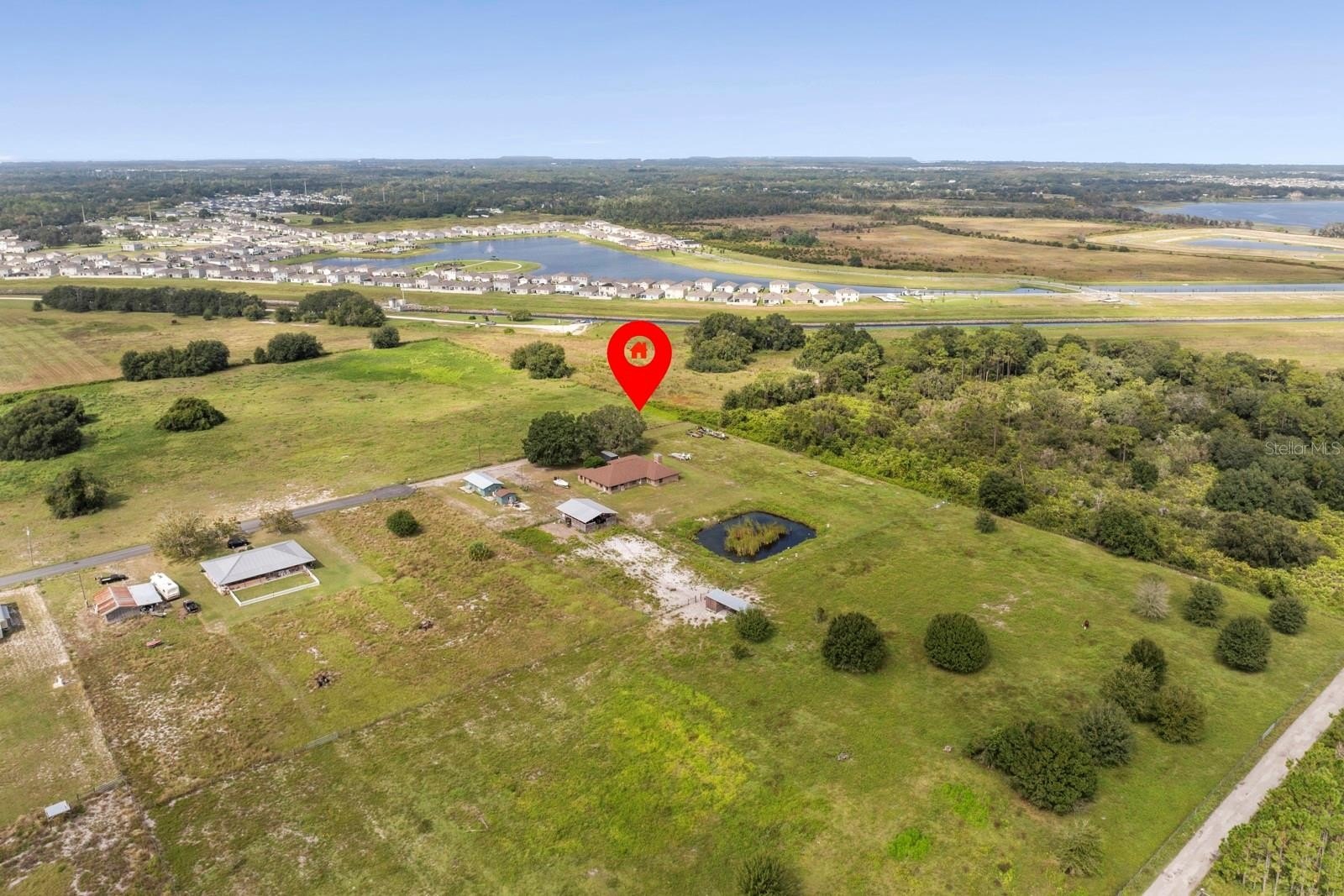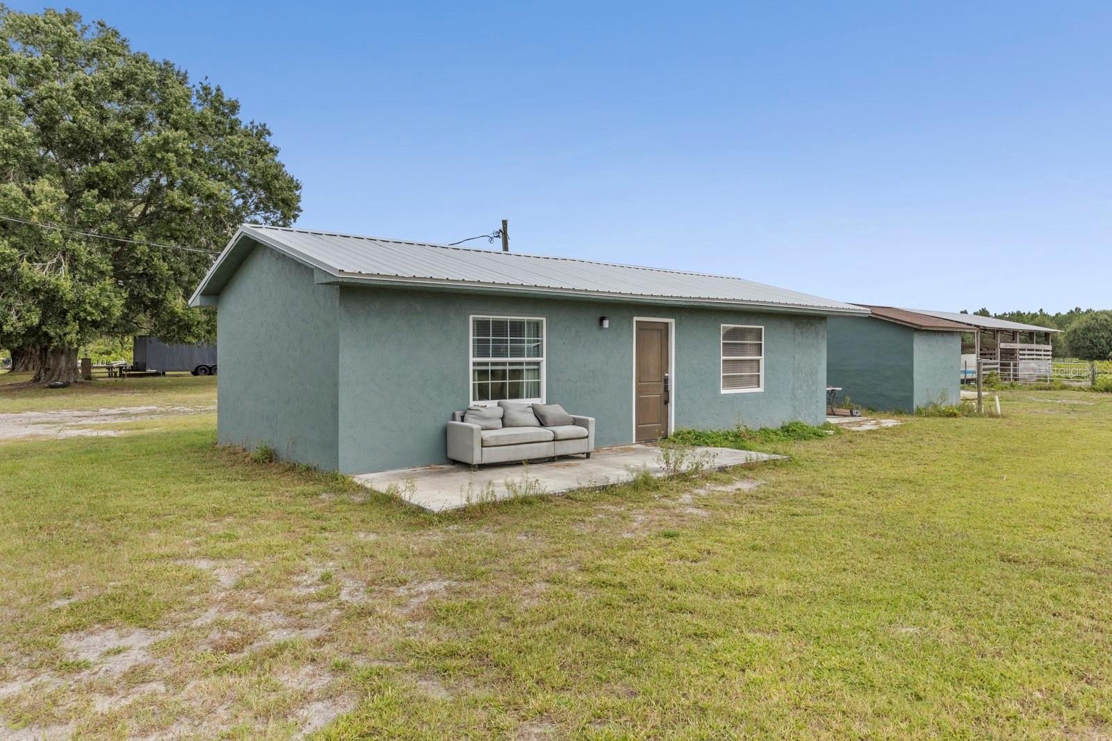 Welcome to your private slice of Florida living—this unique property offers two homes, a barn, storage building, and fenced acreage surrounded by upcoming growth. The main home (4 bed, 3 bath, 3,088 sqft) features beautifully stained concrete floors, updated kitchen and baths (2017), and a new roof (2022). The guest home (1 bed, 1 bath) has its own utilities, making it perfect for multigenerational living or rental income.