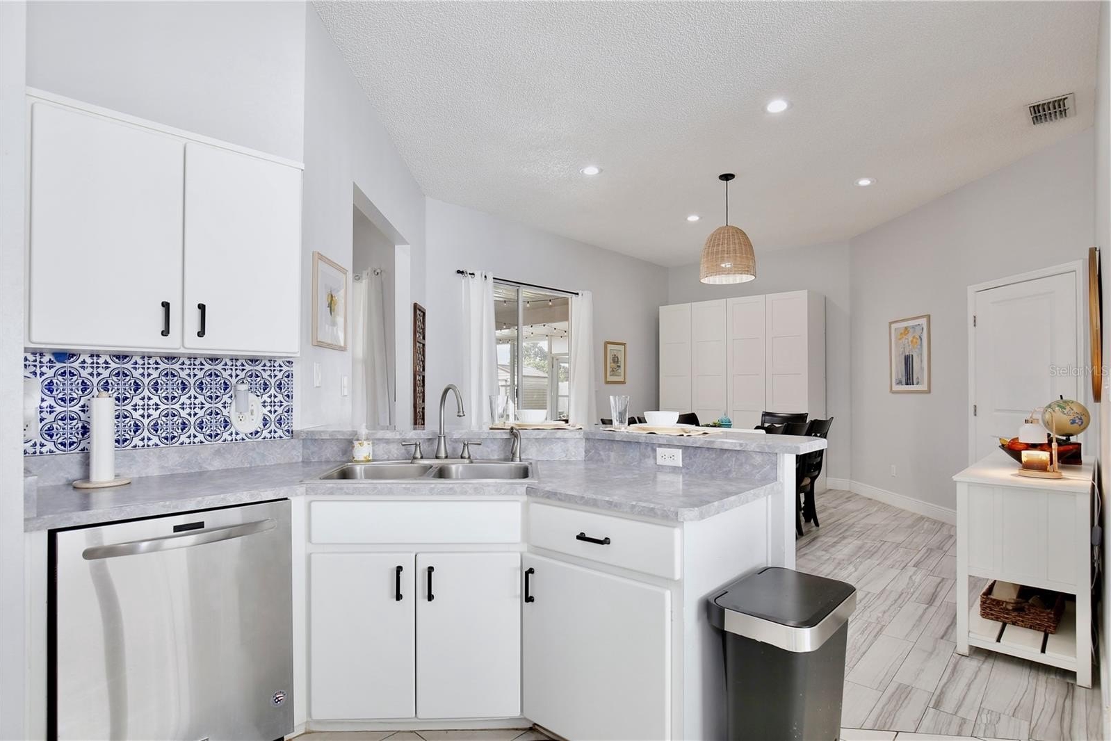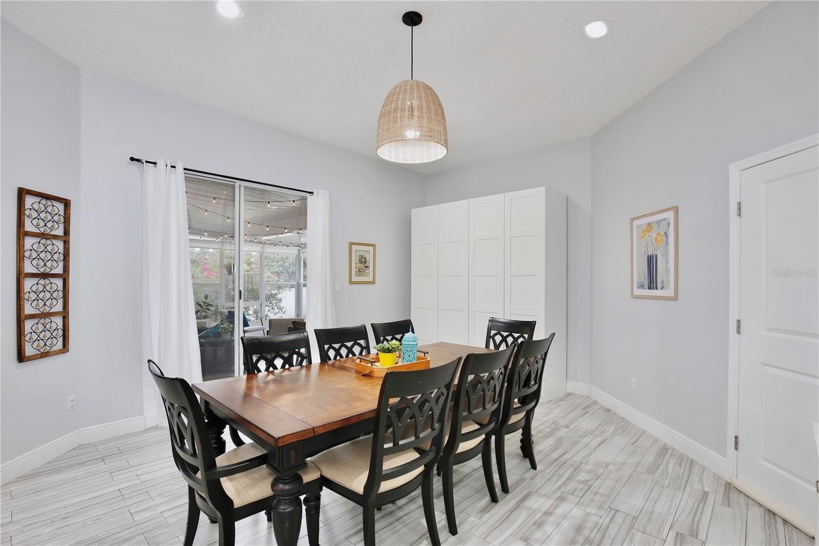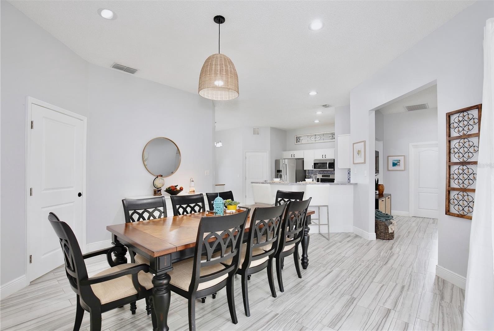 Welcome home to the heart of Clermont! This four bedroom, two bathroom house has curb appeal with a manicured lawn and two car garage. Step inside and be greeted by a foyer with a rustic chandelier and a split floor plan with neutral tones and natural light. The bright and airy living room features recessed lights and stylish wood vinyl floors. Seamlessly transition to the home office through elegant double doors, where a sunlit bonus room awaits with a large window and chic wallpaper accent wall—a perfect space for productivity or creativity. Try out a new recipe in the gorgeous kitchen, equipped with stainless steel appliances, decorative backsplash, and bar top seating. Tile floors lead you to the delightful breakfast nook featuring a coffee bar, making morning routines a breeze. Adjacent to the kitchen, you'll find the convenience of a dedicated laundry room. Entertain guests in the dining room illuminated by a wicker light fixture, with sliding glass doors that open to a sunroom. The primary suite is a true oasis, complete with sunroom access, a generous walk in closet, and an en suite bath boasting dual sinks, a glass block window over the bathtub, and a glass door shower. Two additional bedrooms provide comfort for family and friends, complemented by a guest bath with patio access. Outside, the fenced backyard is an outdoor sanctuary complete with a cozy fire pit, storage shed, and lush landscaping with flowers and palm trees. Located in a vibrant community close by East Ridge High School, Lake Sumter State College, and Clermont Landing’s shops and dining, this home is an unparalleled retreat. Walk down to the amenities of Greater Pines to enjoy the community’s swimming pool, pickleball courts, and playground. Don’t miss the opportunity to make this home yours, schedule a showing today!