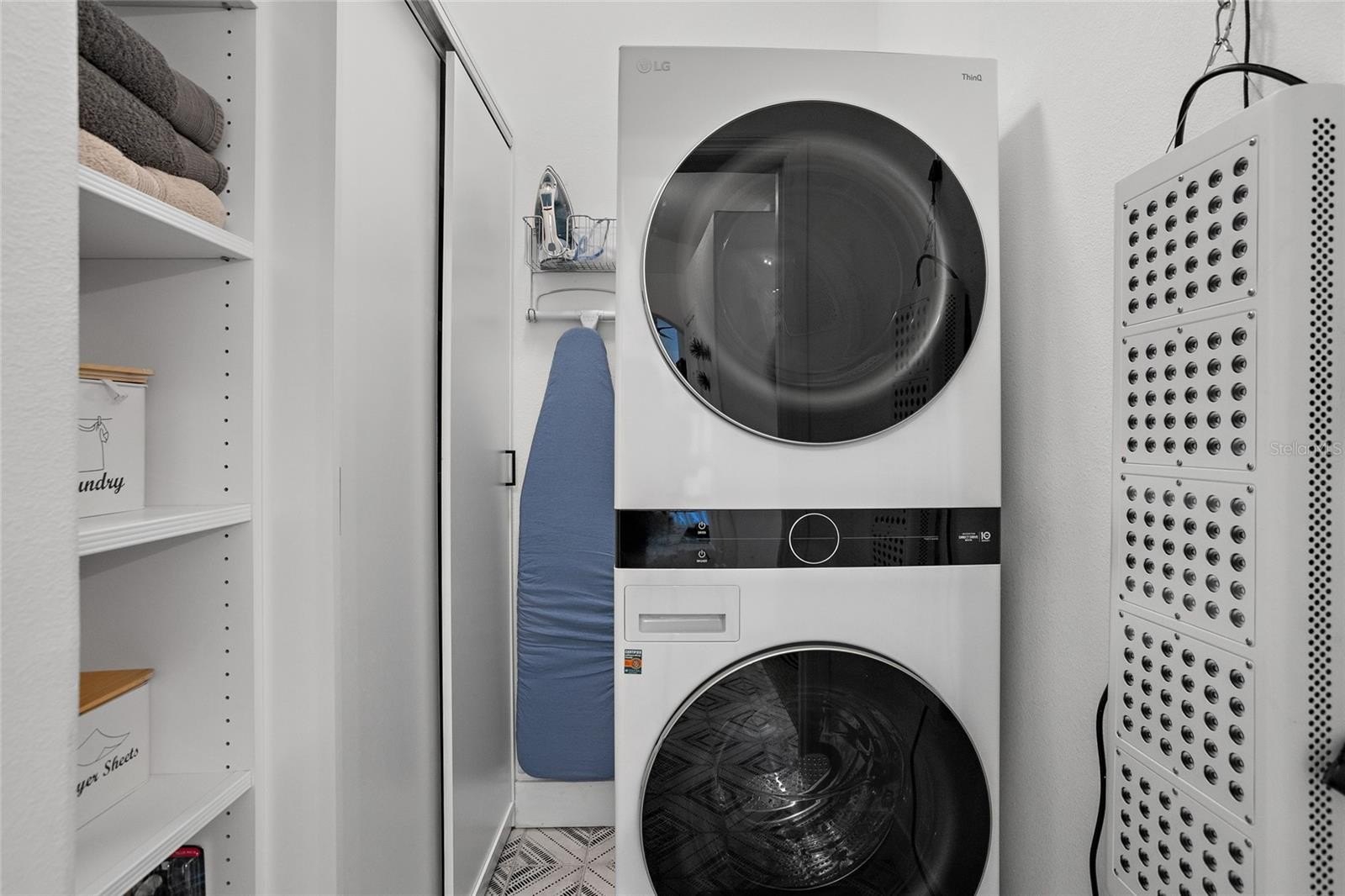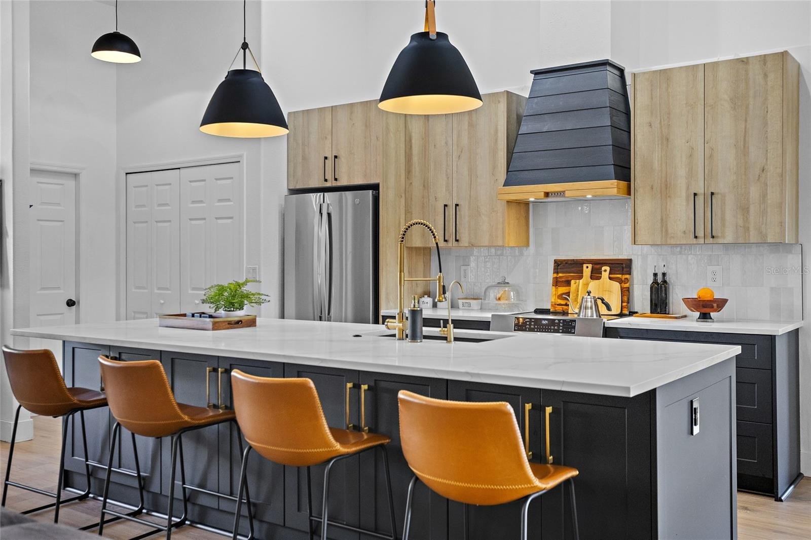 From the moment you enter, you’ll be greeted by bright, open living spaces that flow effortlessly from room to room. The designer kitchen is a showstopper, featuring quartz countertops, custom soft-close cabinetry, an induction stovetop, a convection and air fryer oven, a statement hood vent, and brand-new stainless-steel appliances. Whether you’re cooking for two or entertaining a crowd, this space was made to impress.