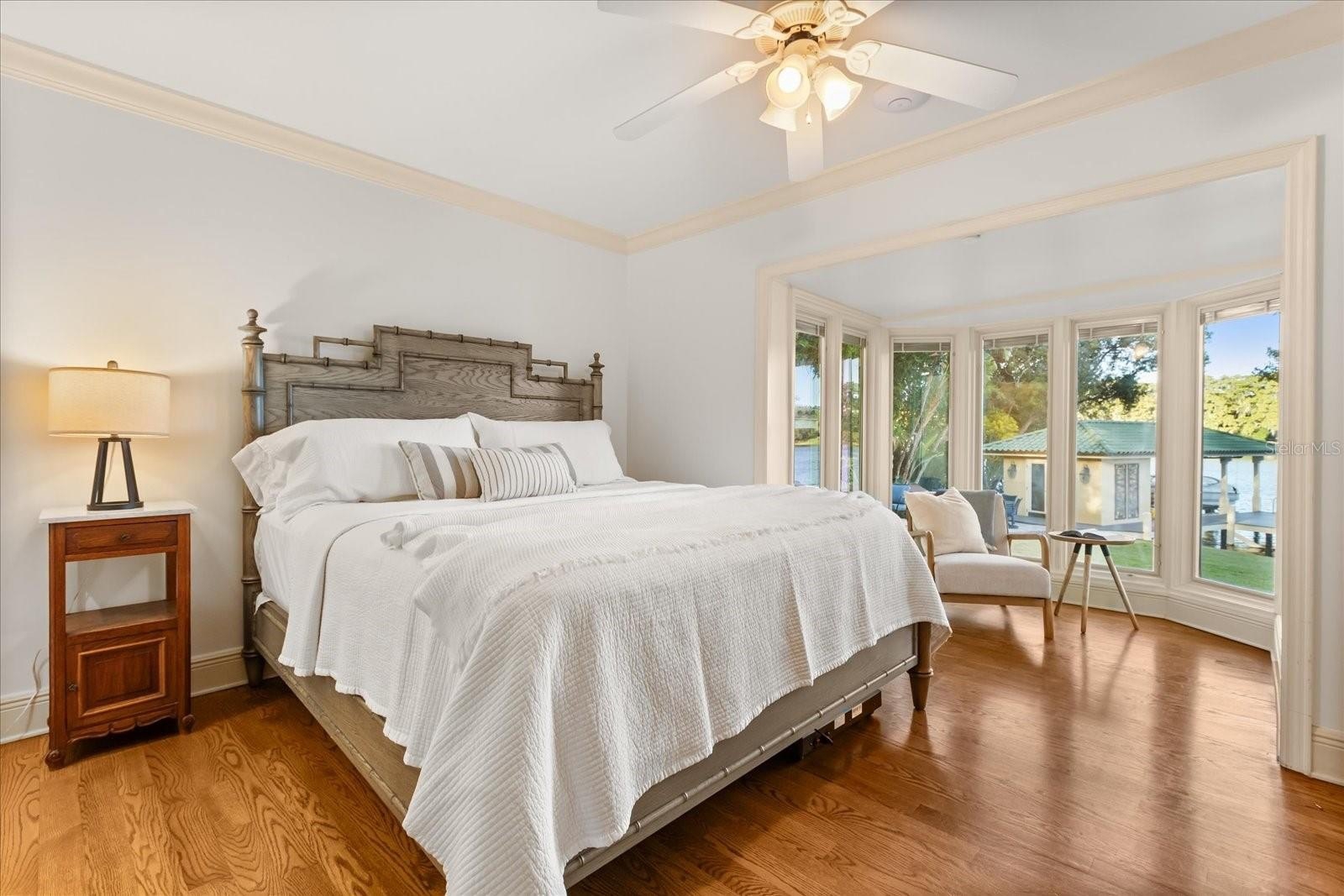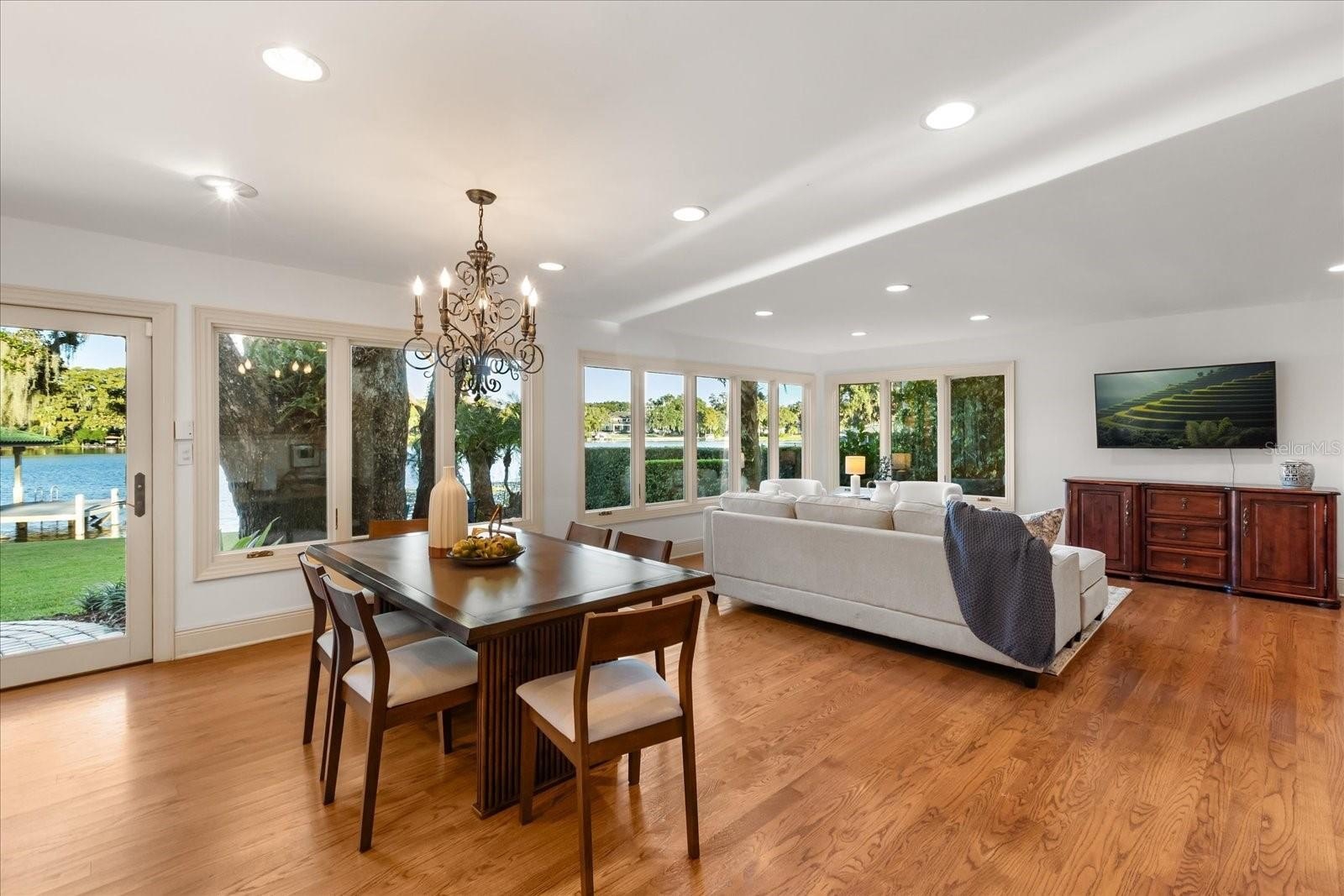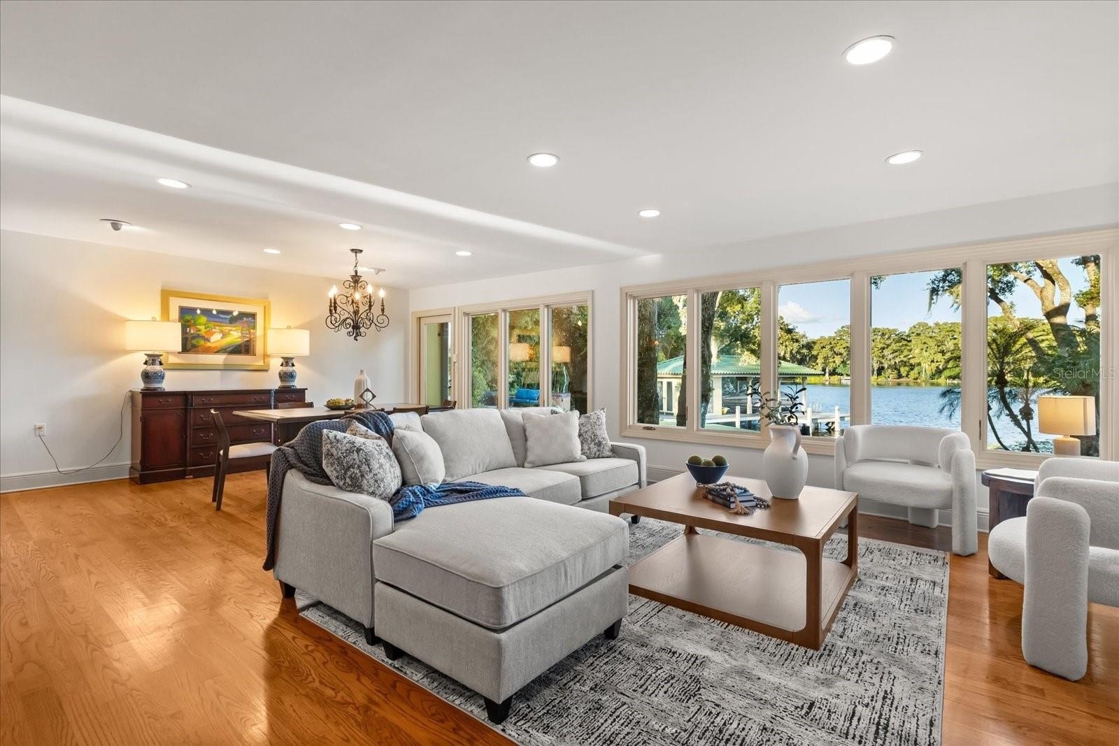 This beautiful Mediterranean style home offers a rare opportunity for prime waterfront living on Lake Mizell, part of the highly sought out after Winter Park Chain of Lakes. Situated on a 1.32 acre lot, the property is just a short walk or drive to Park Avenue’s restaurants, boutiques, and local attractions. The main home features three bedrooms and five bathrooms, each bedroom offering its own en suite bathroom. A separate guest house (ADU) provides an additional 932 square feet with two bedrooms, one bathroom, newly refinished original hardwood floors, fresh paint and a wood burning fireplace perfect for guests or extended family. Inside the main residence, you’ll find solid wood and travertine flooring throughout the first floor, surround sound speakers, a wood burning fireplace and freshly painted interiors. The living room features large windows overlooking the lake, with an open floor plan that flows seamlessly into the dining room and kitchen. The gourmet kitchen showcases a beamed ceiling, Busby custom three tone cabinetry with granite countertops, a six burner gas cooktop, and a built in ice maker. The dining area offers easy access to the outdoor entertaining spaces, perfect for enjoying lakeside gatherings. The primary suite occupies the entire second level, offering dual bathrooms, individual walk in closets, and a private balcony with unobstructed lake views. Additional features include an inviting office/den with french doors and custom built ins, as well as a spacious laundry room with ample cabinetry, a 120 bottle wine fridge, and a secondary refrigerator for added convenience. An expansive paver driveway leads to covered parking that accommodates up to three vehicles. Traditional gas lanterns and built in landscape lighting enhance the home’s Mediterranean charm and highlight its mature, manicured grounds. Outdoor living is the centerpiece of this property, featuring durable composite board decking, a summer kitchen with an infrared grill, and a hot tub for relaxing and entertaining. Enjoy multiple inviting seating areas with stunning east facing lake views. The private boat dock includes a storage closet, boat lift, and the boat itself is included. This home offers relaxed luxury and timeless lakefront living in one of Winter Park’s most desirable neighborhoods.