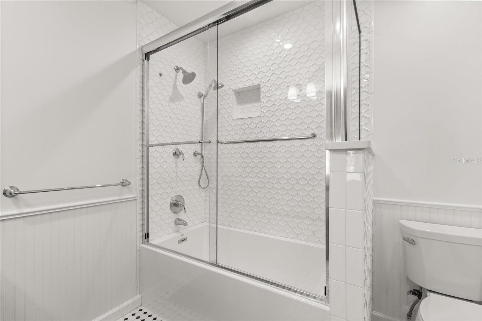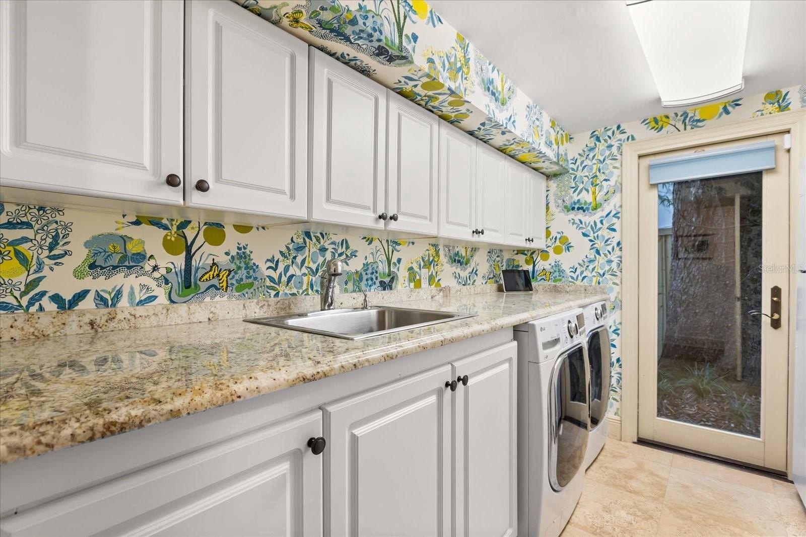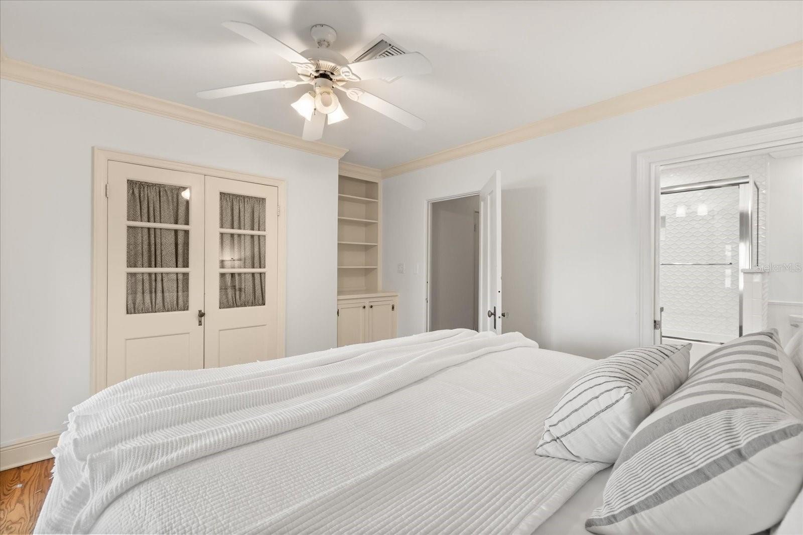 This beautiful Mediterranean style home offers a rare opportunity for prime waterfront living on Lake Mizell, part of the highly sought out after Winter Park Chain of Lakes. Situated on a 1.32 acre lot, the property is just a short walk or drive to Park Avenue’s restaurants, boutiques, and local attractions. The main home features three bedrooms and five bathrooms, each bedroom offering its own en suite bathroom. A separate guest house (ADU) provides an additional 932 square feet with two bedrooms, one bathroom, newly refinished original hardwood floors, fresh paint and a wood burning fireplace perfect for guests or extended family. Inside the main residence, you’ll find solid wood and travertine flooring throughout the first floor, surround sound speakers, a wood burning fireplace and freshly painted interiors. The living room features large windows overlooking the lake, with an open floor plan that flows seamlessly into the dining room and kitchen. The gourmet kitchen showcases a beamed ceiling, Busby custom three tone cabinetry with granite countertops, a six burner gas cooktop, and a built in ice maker. The dining area offers easy access to the outdoor entertaining spaces, perfect for enjoying lakeside gatherings. The primary suite occupies the entire second level, offering dual bathrooms, individual walk in closets, and a private balcony with unobstructed lake views. Additional features include an inviting office/den with french doors and custom built ins, as well as a spacious laundry room with ample cabinetry, a 120 bottle wine fridge, and a secondary refrigerator for added convenience. An expansive paver driveway leads to covered parking that accommodates up to three vehicles. Traditional gas lanterns and built in landscape lighting enhance the home’s Mediterranean charm and highlight its mature, manicured grounds. Outdoor living is the centerpiece of this property, featuring durable composite board decking, a summer kitchen with an infrared grill, and a hot tub for relaxing and entertaining. Enjoy multiple inviting seating areas with stunning east facing lake views. The private boat dock includes a storage closet, boat lift, and the boat itself is included. This home offers relaxed luxury and timeless lakefront living in one of Winter Park’s most desirable neighborhoods.