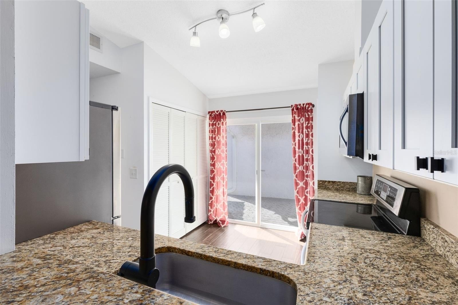 One or more photo(s) has been virtually staged. Don’t miss out on this beautifully maintained, 2 bed, 2 bath, single story townhome in the sought after Winter Park Pines with a LOW HOA! As you make your way towards the entrance you have 2 private, fenced-in courtyard areas for sitting out for a morning coffee, home gardening, or just getting out to enjoy the weather. As you enter the home you see nicely updated kitchen with granite countertops, stainless steel appliances, and white cabinets. The great room is exactly that, with large vaulted ceilings and plenty of natural light. The spacious Owner’s Suite is complete with a gorgeous, recently renovated bathroom and walk-in closet!