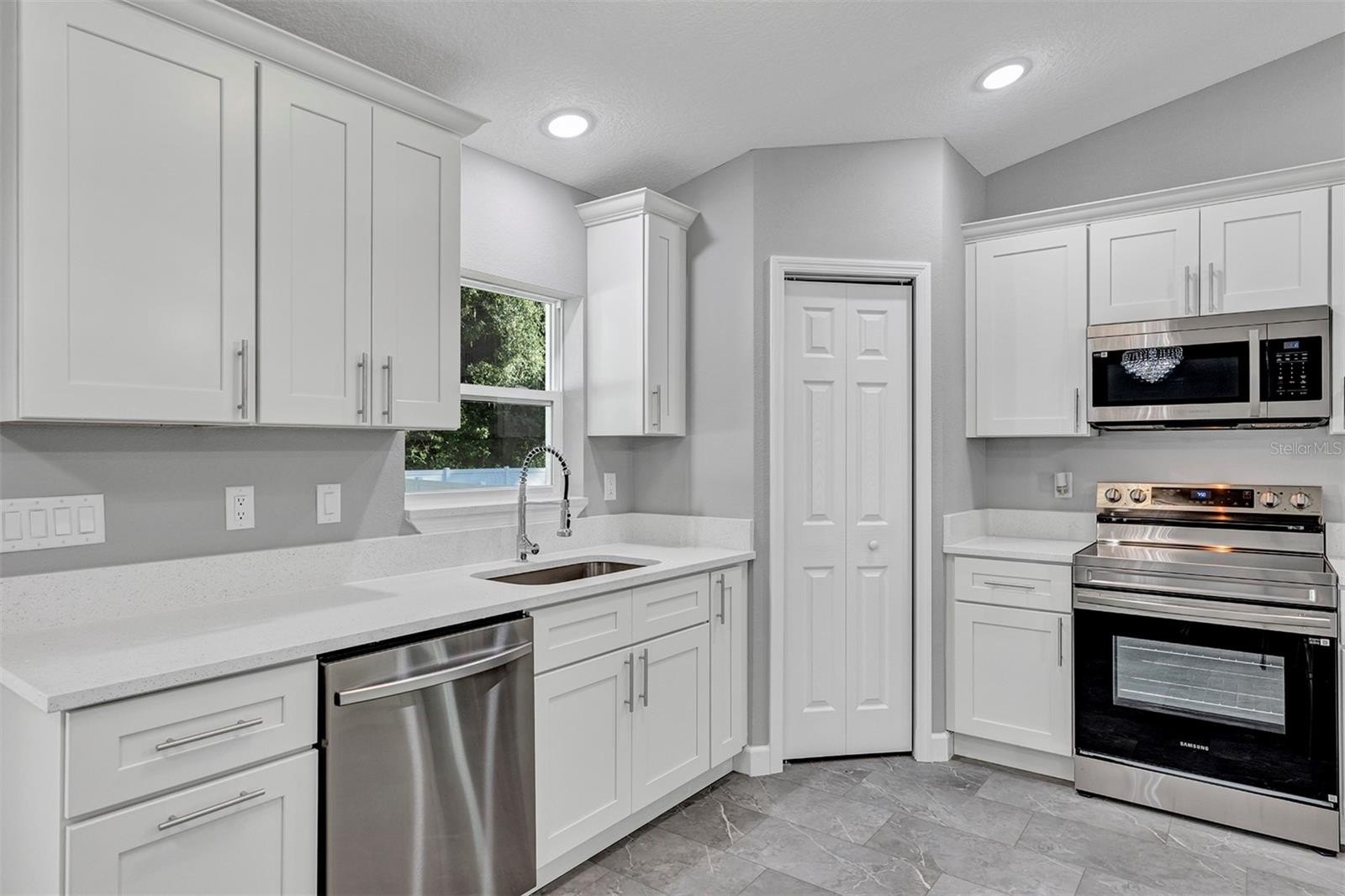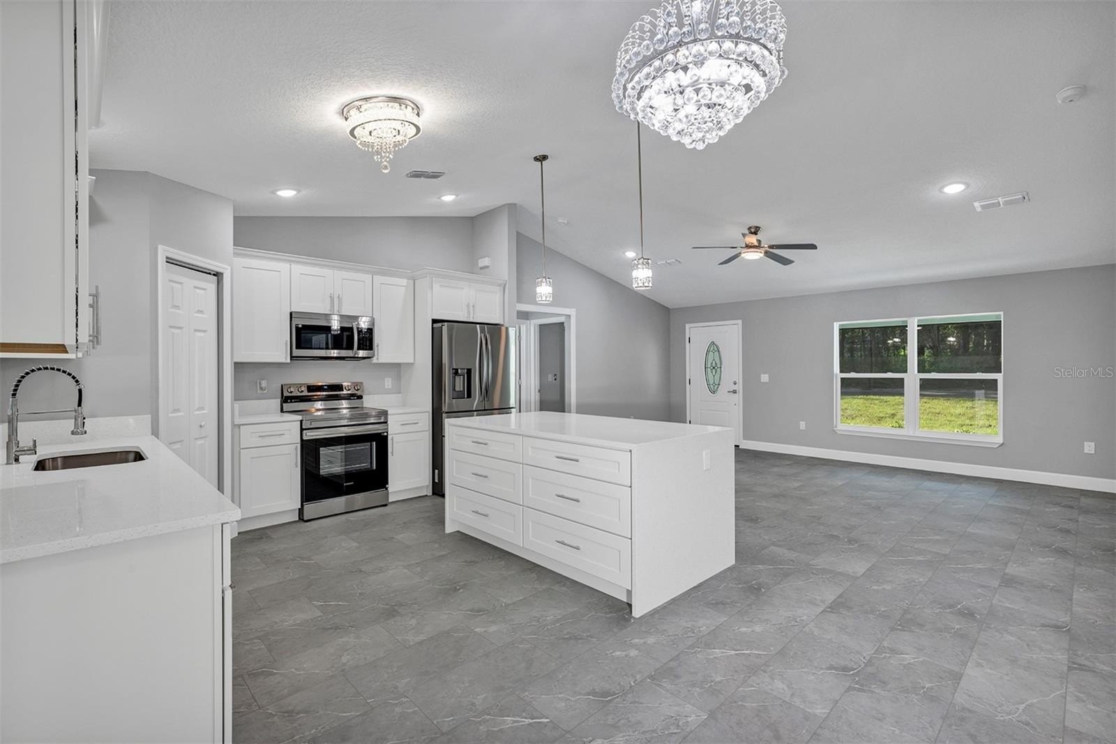 New construction, Move in Ready!! *Builder is offering up to $8,000 in closing cost assistance* This Beautiful 3 bedroom, 2 bath, 2 car garage home was built to the highest of standards to include luxury vinyl plank flooring, Gourmet kitchen equipped with top-of-the-line Samsung appliances, top soft-close cabinets with crown molding, quartz counter tops and a sleek waterfall island, perfect for food preparation and entertaining, ceiling fans and inside laundry. This home has Modern light fixtures, quartz counters in all bathrooms, double sink in master with beautiful tile not to mention additional soft close drawers in master bath. The front entry is stunning with a modern front door, screened porch, beautiful landscaping plus rain gutters. Enjoy the beautiful Florida weather on the covered and screened back porch overlooking the fully fenced backyard!! The garage is epoxy coated and a 20-foot wide driveway these are just another of the builder’s personal touches to make your home complete and ready for your family to move in. NO HOA, Great location nearby shopping, dining, medical centers, Full one year builder warranty with an extended 2-10 warranty provided at closing. Come see this one, we know you will be impressed and get your offer in as it will sell quickly.