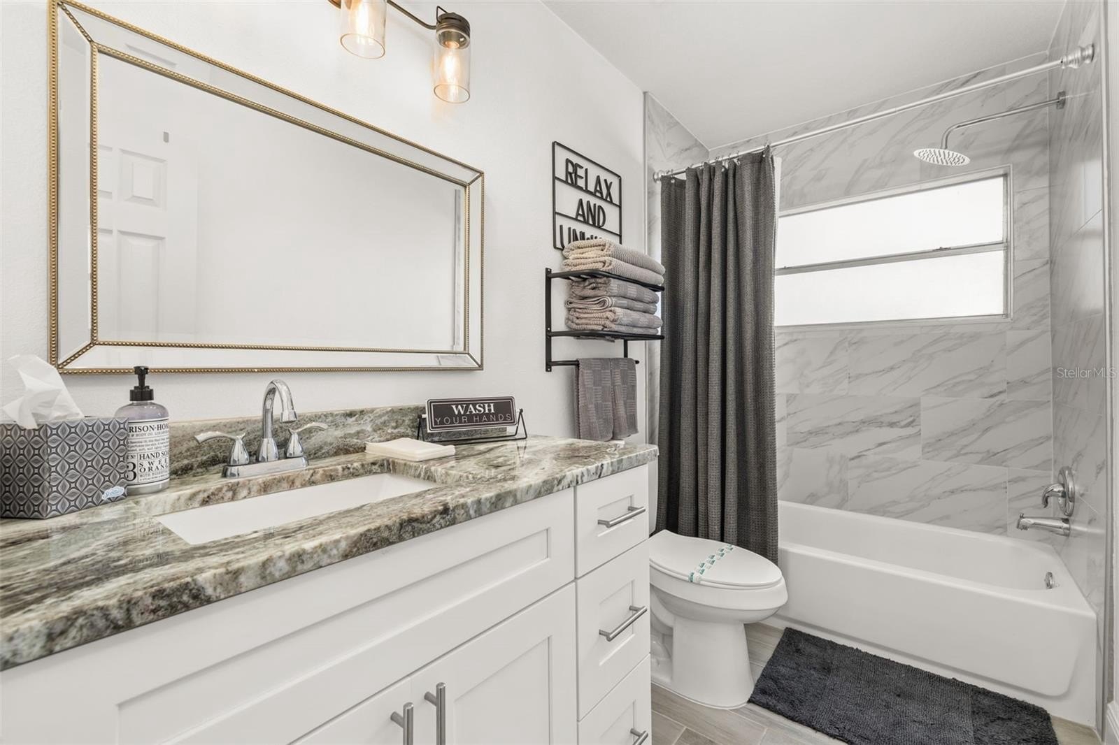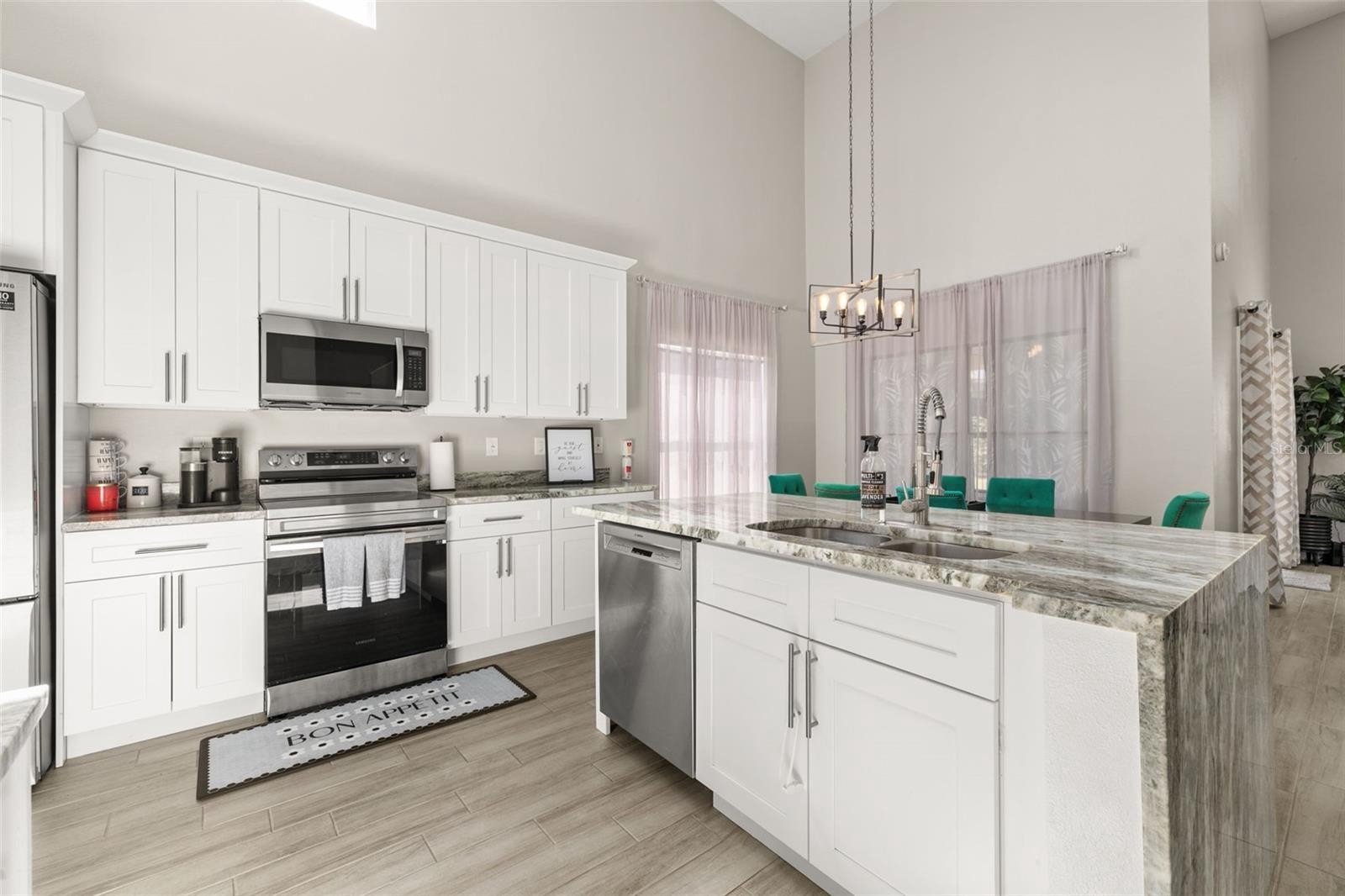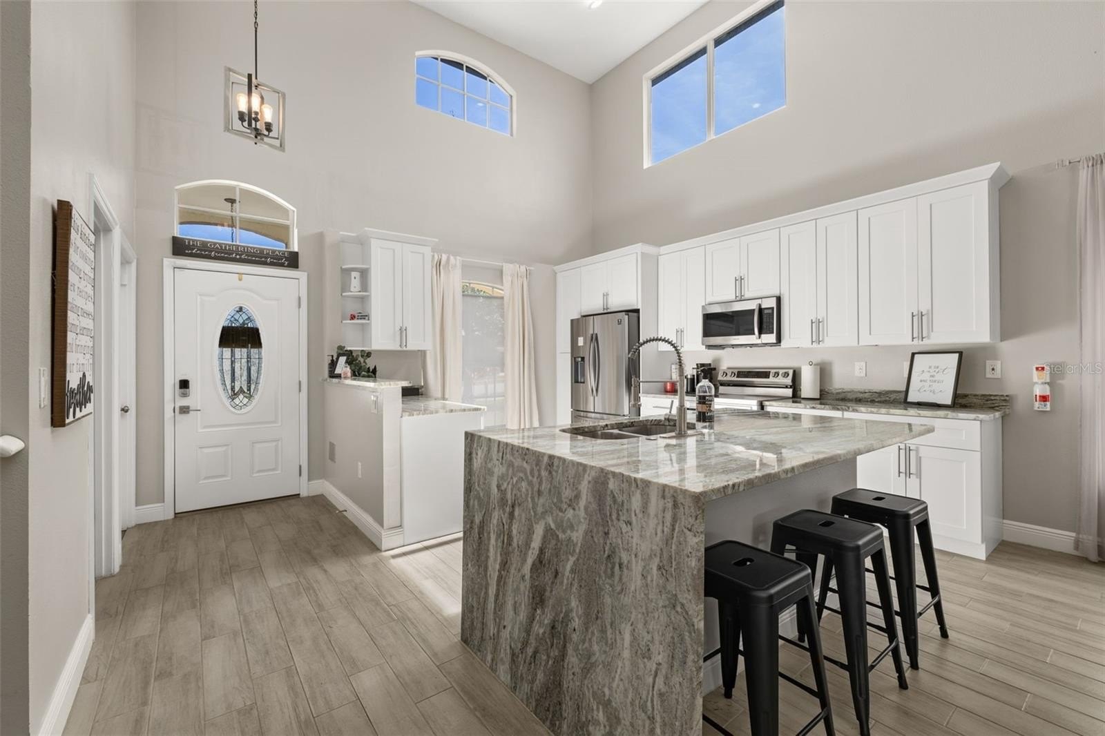 retreat. Recently upgraded, this home boasts an elegant kitchen featuring a waterfall island and granite countertops, creating an inviting space