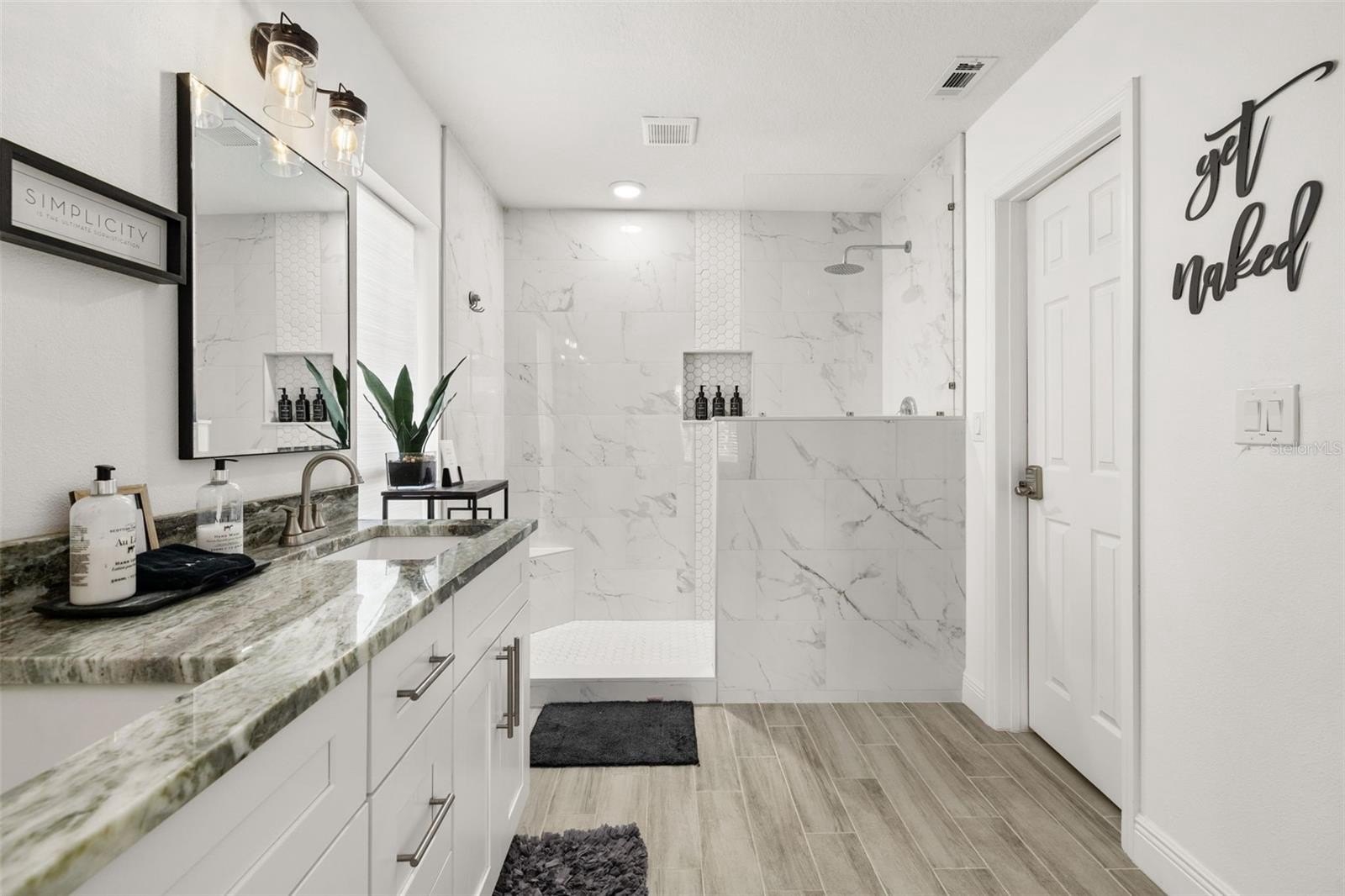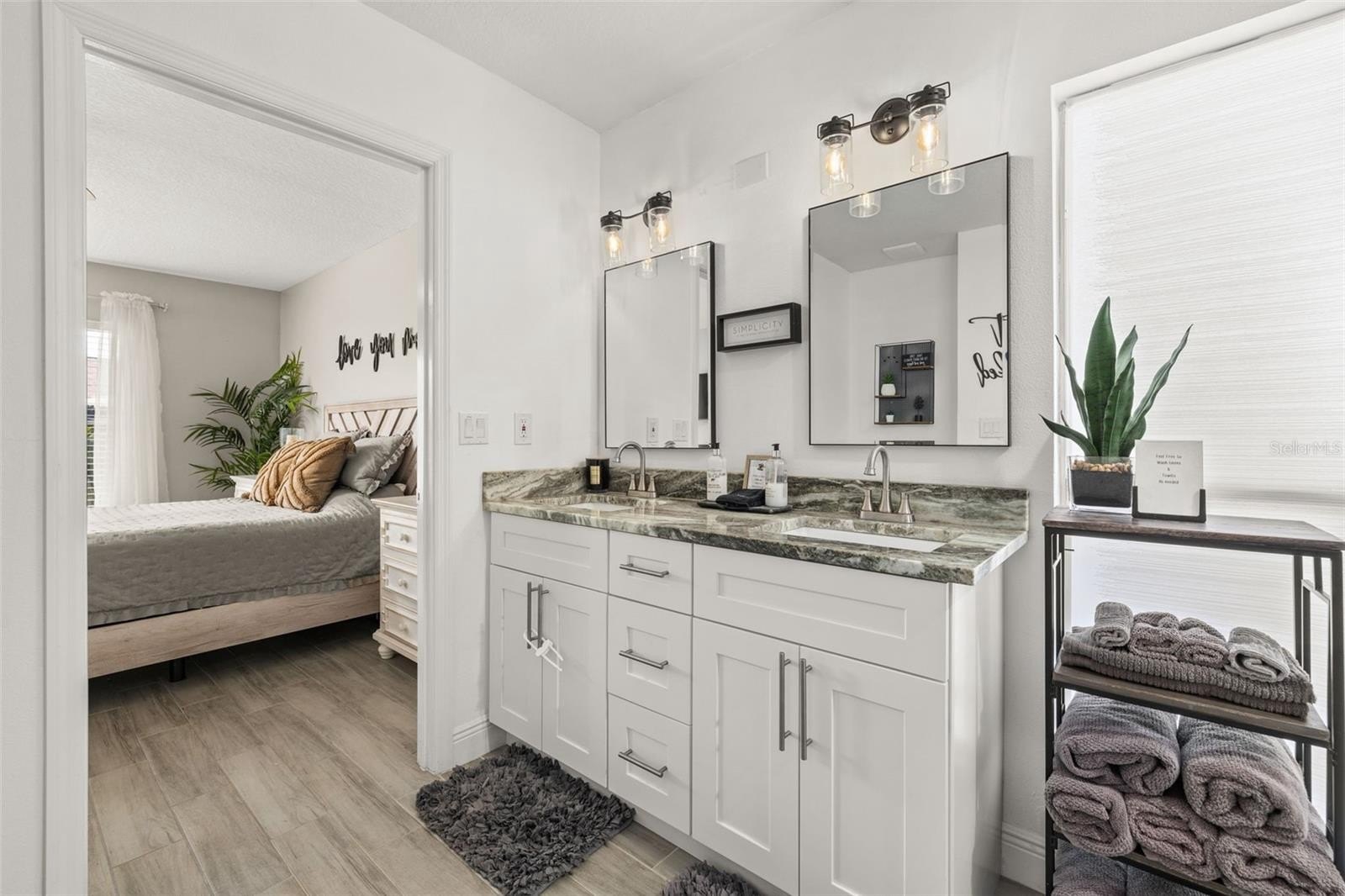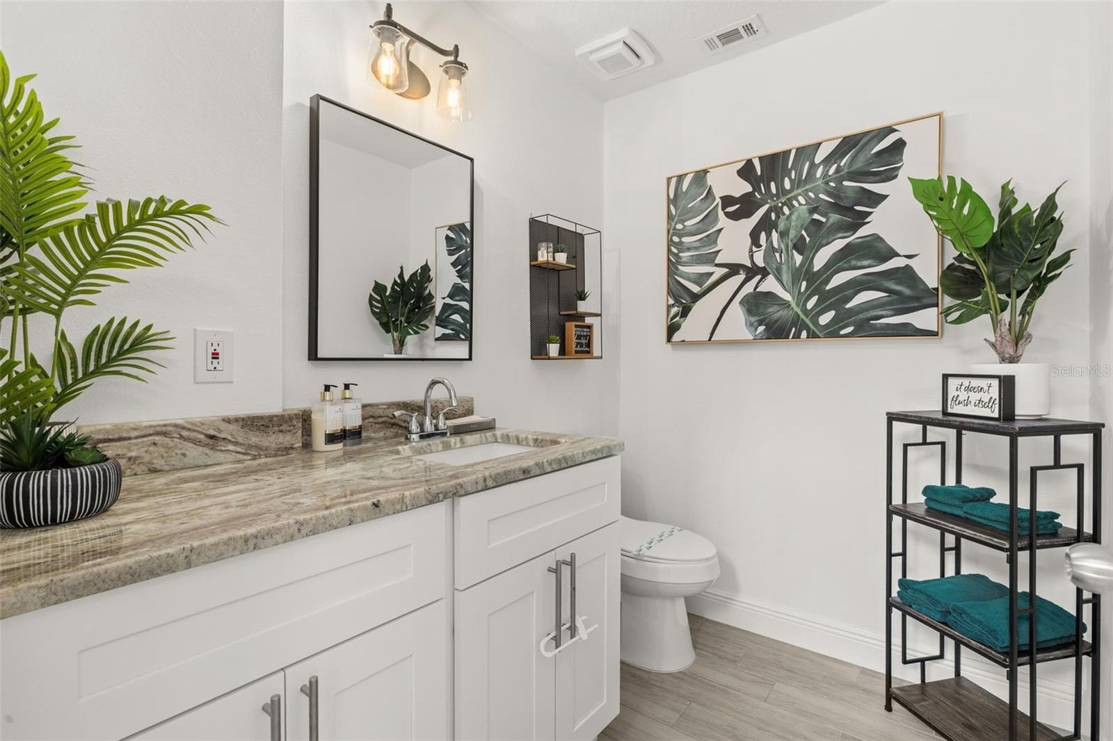 retreat. Recently upgraded, this home boasts an elegant kitchen featuring a waterfall island and granite countertops, creating an inviting space