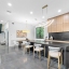 cabinetry,Italian terrazzo walls, and seamless porcelain flooring that give the juxtaposition of