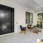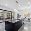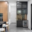 modern aesthetic with a palette of brown woods, black, and brass. Nine foot sliding doors