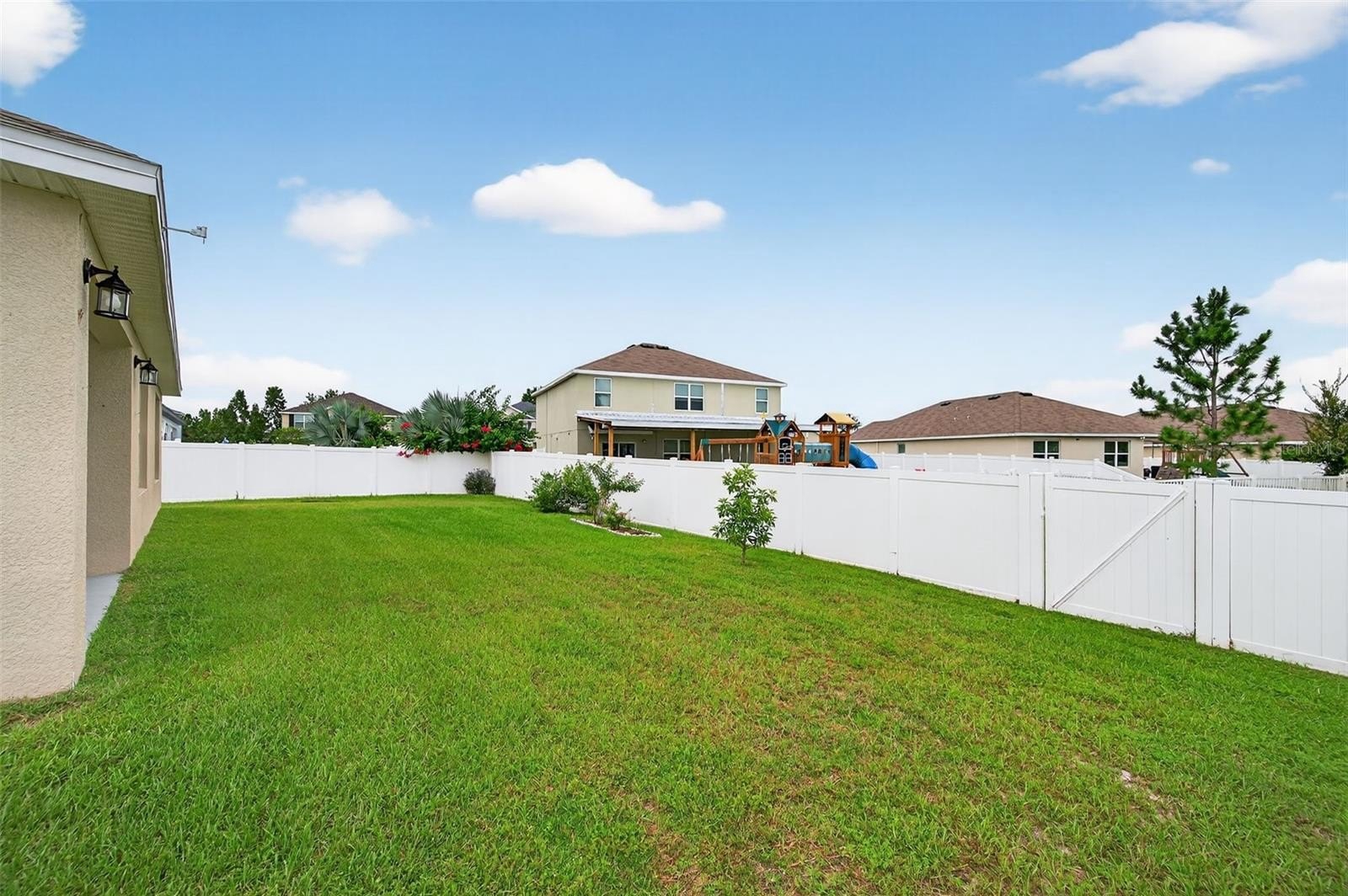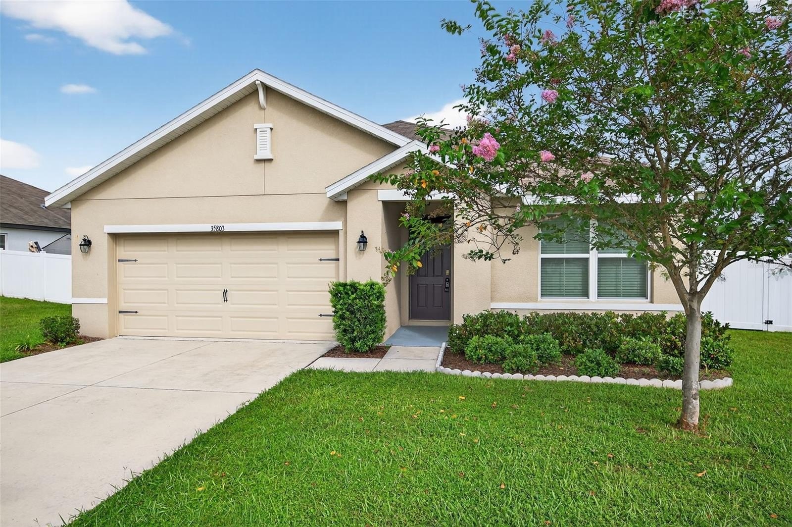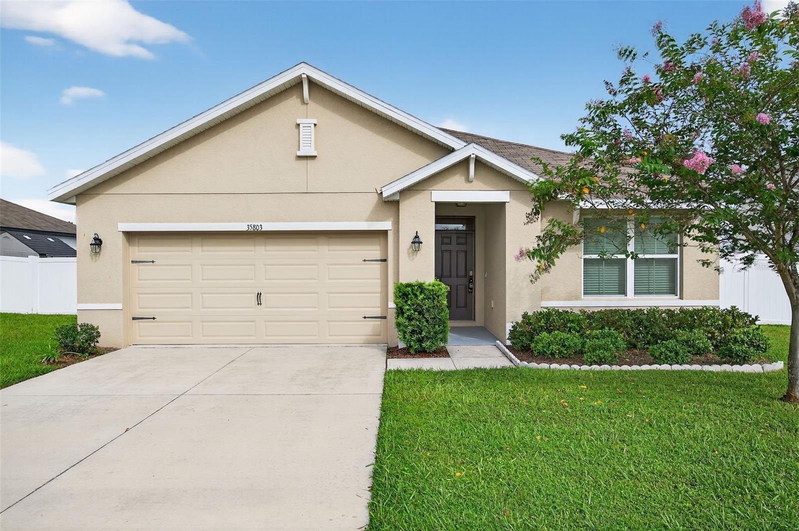 BACK ON THE MARKET!!! BUYER'S LOSS IS YOUR GAIN!! Absolutely GORGEOUS and TURN-KEY, this light and bright 3 bed, 2 bath SPACIOUS home is better than new! As you approach the home, you’ll immediately notice that it has received the best of care. Beautifully landscaped and IMMACULATELY KEPT inside and out, this TURN-KEY gem of a home may just be THE ONE. With almost 1,700 sq ft, an OPEN LAYOUT, TALL ceilings, and a SPLIT FLOOR PLAN, this home would be the PERFECT STARTER HOME or just right if you’re looking to downsize. With absolutely NO CARPET, you’ll love the easy maintenance of the updated 18-inch CERAMIC TILE flooring throughout. The WIDE ENTRYWAY leads past the secondary bedrooms and hall bath to the large living area, kitchen, and dining area. The kitchen is just STUNNING, offering a shining STAINLESS FRENCH-DOOR REFRIGERATOR, a LARGE PANTRY, range, microwave, and dishwasher. The primary suite boasts a generously-sized bedroom, DOUBLE CLOSETS including a WALK-IN CLOSET, double sinks, a water closet, and a large WALK-IN SHOWER. As you walk to the back of the home, you’ll appreciate the sliding glass door with its maintenance-free built-in blinds leading you to the COVERED BACK PORCH, complete with overhead light and ceiling fan. You’ll especially love the SPACIOUS BACK and SIDE YARDS which are COMPLETELY FENCED IN and include 2 lemon trees, an avocado tree, and space for a garden! The Zephyr Ridge Community has a LOW HOA of only $144 a year and offers a beautiful community pool and patio area! This home is ideally located – close to SR 56, I-75, Avalon Park, the Shoppes at Wiregrass, Restaurants, Dining, and more! Schedule your showing today!