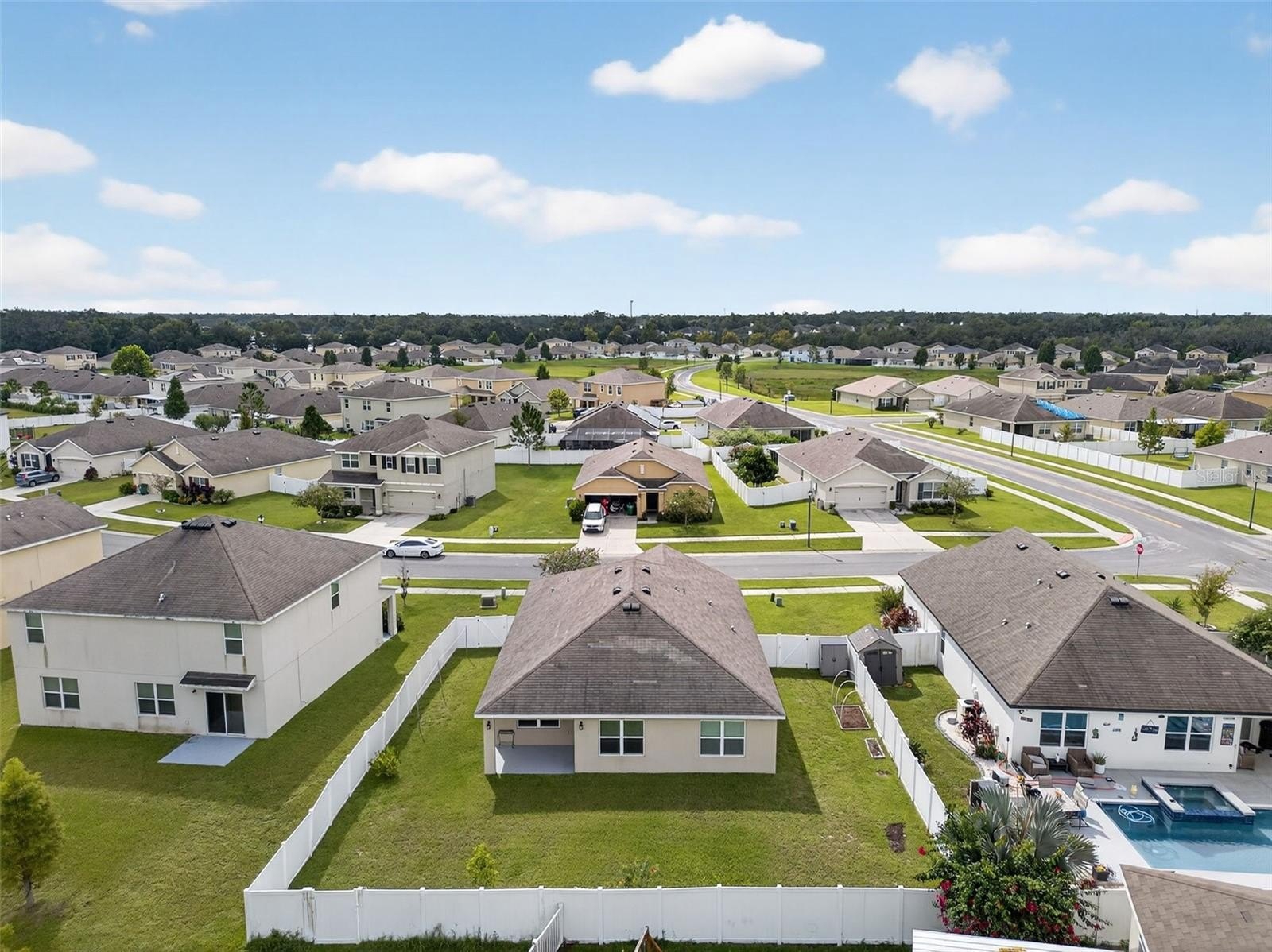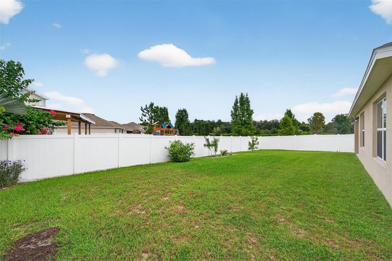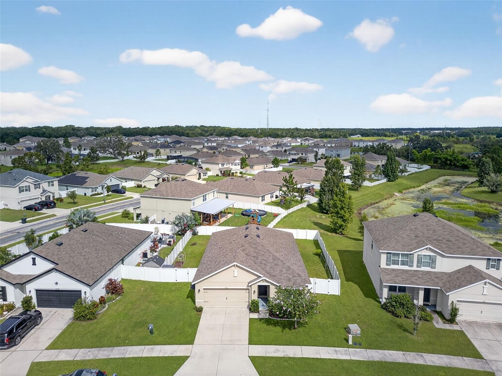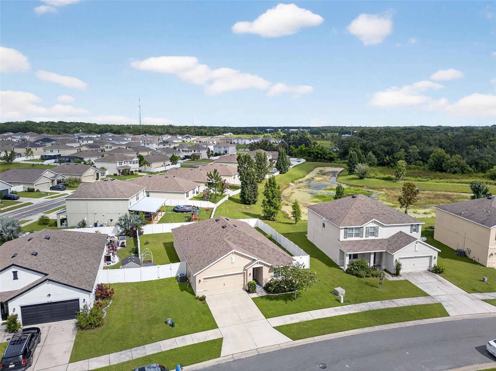 BACK ON THE MARKET!!! BUYER'S LOSS IS YOUR GAIN!! Absolutely GORGEOUS and TURN-KEY, this light and bright 3 bed, 2 bath SPACIOUS home is better than new! As you approach the home, you’ll immediately notice that it has received the best of care. Beautifully landscaped and IMMACULATELY KEPT inside and out, this TURN-KEY gem of a home may just be THE ONE. With almost 1,700 sq ft, an OPEN LAYOUT, TALL ceilings, and a SPLIT FLOOR PLAN, this home would be the PERFECT STARTER HOME or just right if you’re looking to downsize. With absolutely NO CARPET, you’ll love the easy maintenance of the updated 18-inch CERAMIC TILE flooring throughout. The WIDE ENTRYWAY leads past the secondary bedrooms and hall bath to the large living area, kitchen, and dining area. The kitchen is just STUNNING, offering a shining STAINLESS FRENCH-DOOR REFRIGERATOR, a LARGE PANTRY, range, microwave, and dishwasher. The primary suite boasts a generously-sized bedroom, DOUBLE CLOSETS including a WALK-IN CLOSET, double sinks, a water closet, and a large WALK-IN SHOWER. As you walk to the back of the home, you’ll appreciate the sliding glass door with its maintenance-free built-in blinds leading you to the COVERED BACK PORCH, complete with overhead light and ceiling fan. You’ll especially love the SPACIOUS BACK and SIDE YARDS which are COMPLETELY FENCED IN and include 2 lemon trees, an avocado tree, and space for a garden! The Zephyr Ridge Community has a LOW HOA of only $144 a year and offers a beautiful community pool and patio area! This home is ideally located – close to SR 56, I-75, Avalon Park, the Shoppes at Wiregrass, Restaurants, Dining, and more! Schedule your showing today!