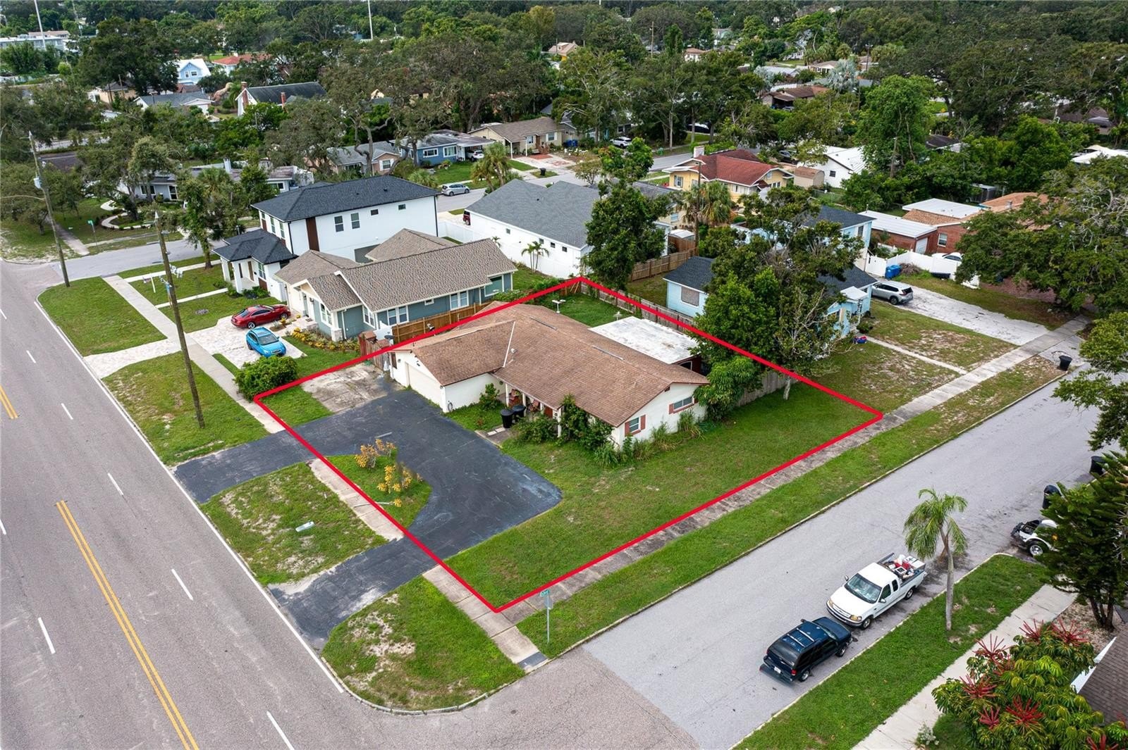 Unveil the possibilities at 1530 49th Street North in St. Petersburg, FL, a prime double lot positioned in a central locale between the city’s stunning beaches and dynamic downtown. Boasting over 50 feet above sea level, this property is not in a flood zone and is in a Non-Evacuation Zone, offering security and peace of mind. The expansive 10,000-square-foot lot, split into two 50ft x 100ft parcels, invites creative development. Imagine crafting two new homes, each potentially ranging from 1,700 to 2,500 square feet, amidst a neighborhood of inspiring new builds.?Currently, the lot houses a charming 1,701 square foot home featuring 2 bedrooms and 2 bathrooms. Additionally the house has an enclosed porch which could add 288sq ft to the home. We have included this in the heated sq ft because it is enclosed and has an AC unit for it. The attached garage, circle drive, and guest parking provide ample space for vehicles, while the private deck offers a perfect outdoor escape. This is an Investors Dream!! Located just minutes from the Tyrone Mall area, the serene beaches, and approximately 30 minutes from Tampa International Airport, this property delivers convenience and opportunity. Whether maintaining the current home or embarking on a new building adventure, 1530 49th Street North offers a harmonious blend of location, lifestyle, and limitless potential.
