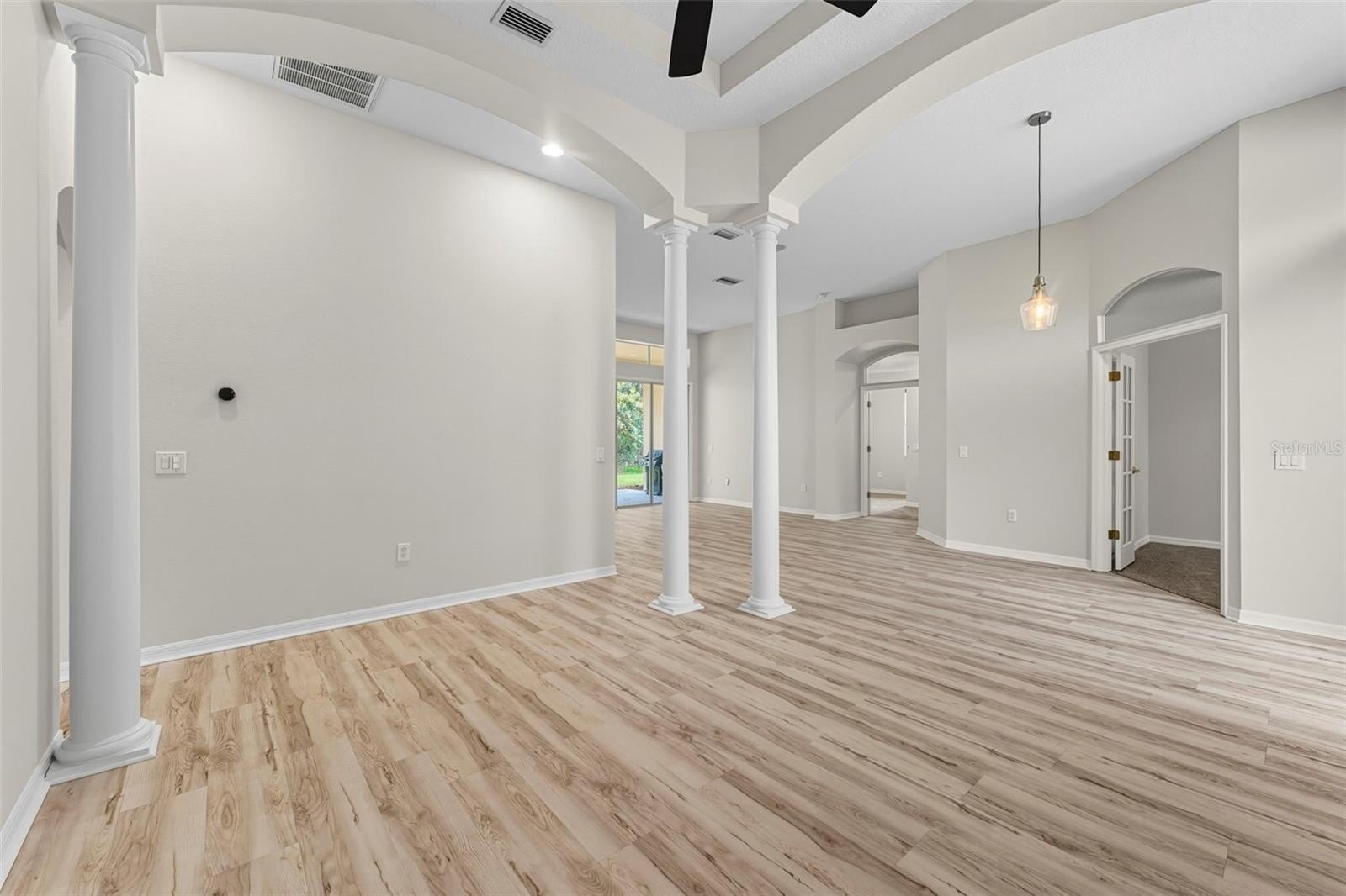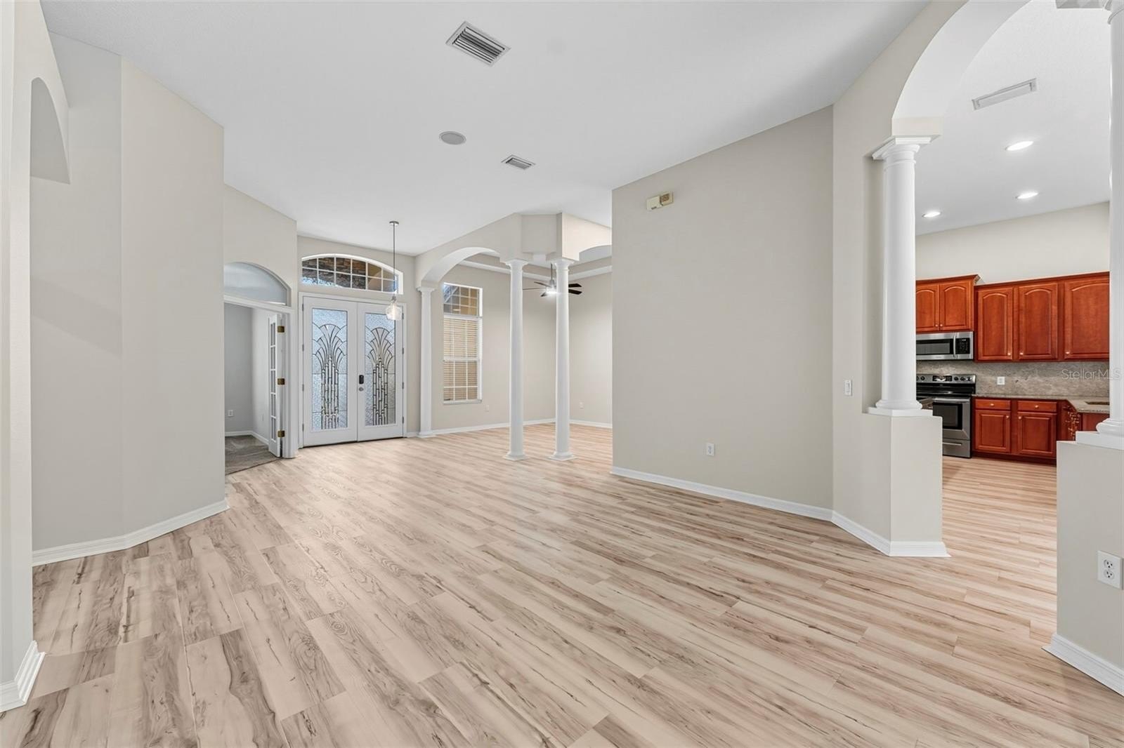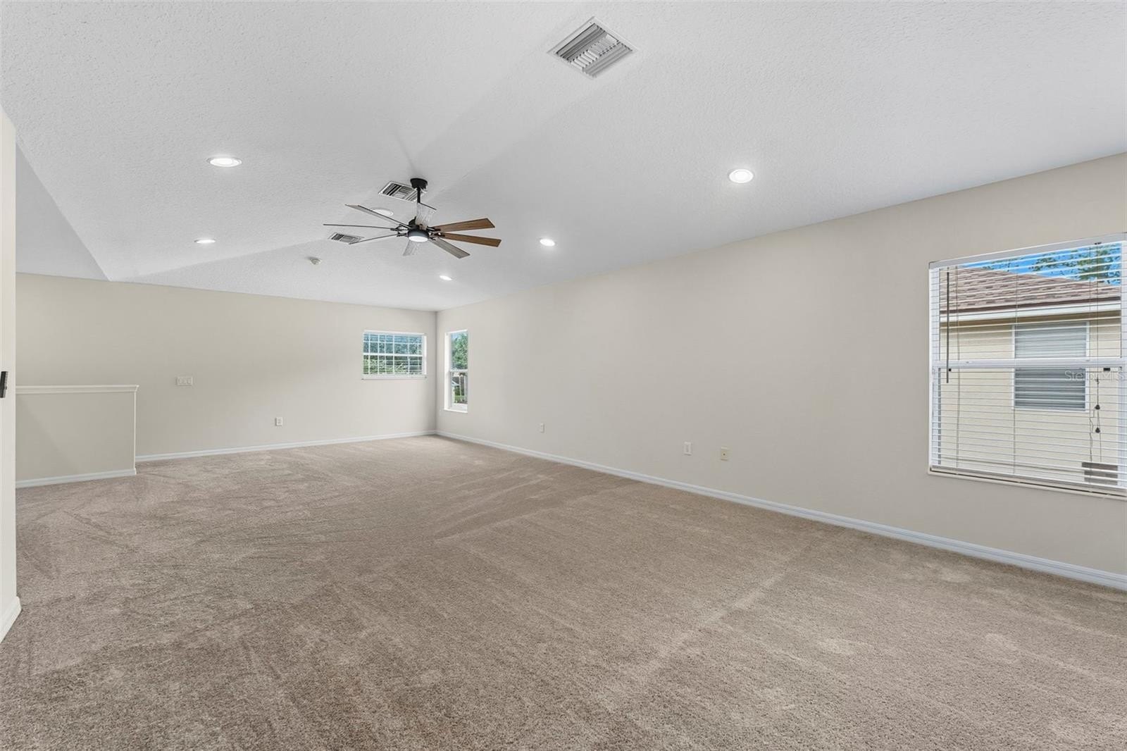 This incredible four bed, three bath, three car garage home offers all the space and updates that make it not only beautiful but also functional. As you arrive to the home take notice of the freshly painted exterior, upscale stone accents and lush tropical landscaping, all inviting you to come on home! Walk through the double entry front doors and the spacious foyer and formal living space featuring, soaring ceilings, updated lighting fixtures, a large slider with views to the gorgeous backyard and new luxury vinyl flooring. Directly to your right you will find the office with views out to the lush landscaping of the front yard and a double French door for privacy. Continuing onto the right and through double entry doors is the large and private owner’s suite. The owner’s suite provides the space you desire in a personal retreat as well as access to the forested backyard through a set of sliders. Features such as double trey ceilings, designer niche and new carpet add to the luxurious feel of the space. The owner’s retreat also features two large walk-in closets with shelving, a large walk-in shower, soaker tub, designated make-up space with cabinets and dual sinks with cabinets and drawers as well as a private water closet. The owner’s suite is truly a place to retreat and recharge in luxury. Step into the open family room and kitchen and find yourself in a space perfect for family activities and entertaining guests. This large space offers tons of large windows, including a slider to the backyard and new luxury vinyl flooring. The kitchen is a standout featuring beautiful solid wood 42” cabinets with crown, granite counter tops, tons of counter space including a large serving bar, granite backsplash, island with storage, walk-in pantry, designer pendant lighting as well as flush mount lighting, large stainless sink with restaurant style faucet and stainless appliances. This kitchen truly has it all! Just off of the large family room you will find a door leading to the lush backyard and a full bath with stand-up shower along with a large secondary bedroom and large closet. Towards the front of the home you find two more secondary bedrooms and a full bath giving everyone in the family their own private space. Just off the kitchen you find the large laundry room, this space has shelving for storage, a large mop sink and a HUGE storage closet! Follow the staircase up to the second-floor bonus room and let your mind wonder! This LARGE space can be just about anything you want it to be! Play room, craft room, gaming room, home schooling room, movie room, whatever your imagination can think of this space is the perfect place for you to make it happen! This INCREDIBLE home has been updated with new exterior and interior paint, new carpet and LVP, a new A/C unit upstairs AND A NEW ROOF! Enjoy the peace and quiet of this lovely neighborhood as well as all the upgrades this beautiful home has to offer. Located off Bell Shoals road and within a short distance of shopping, medical offices, schools, restaurants and so much more. This is the dream home you don’t want to miss out on.