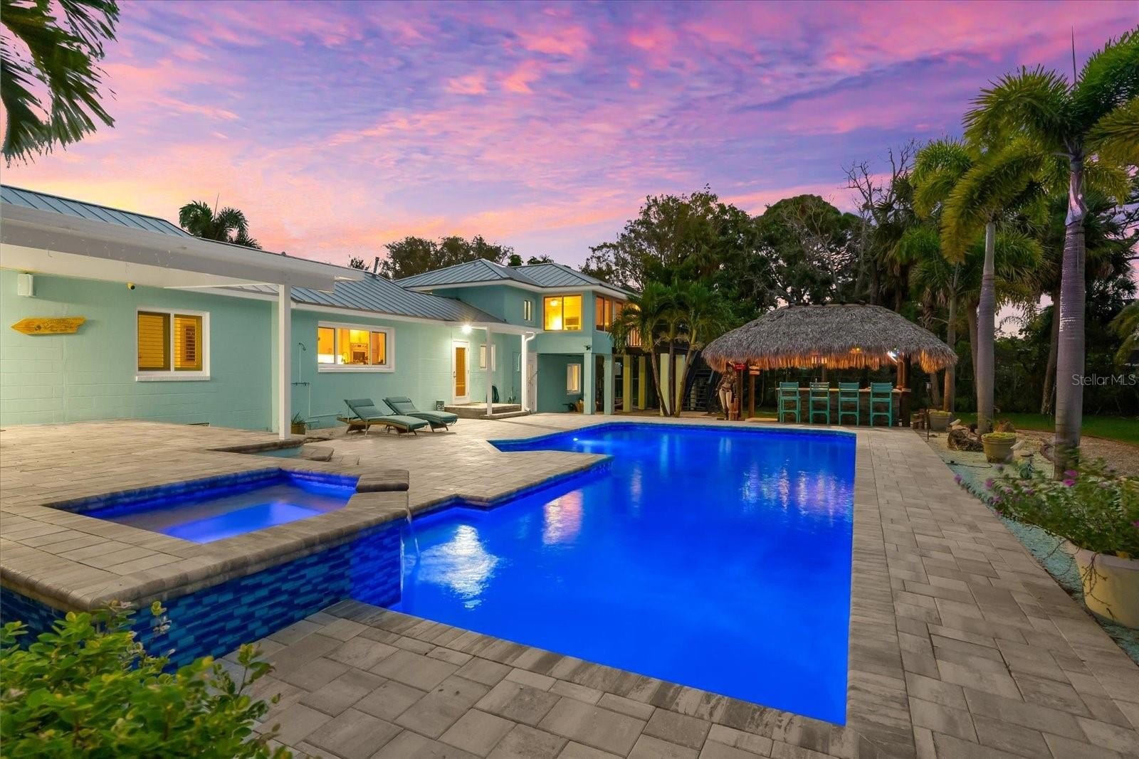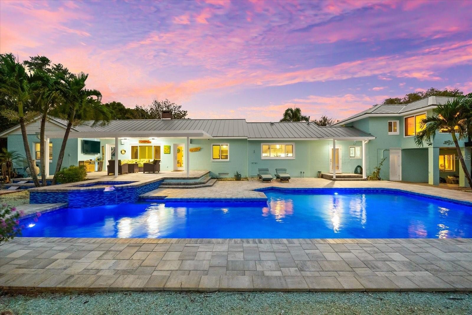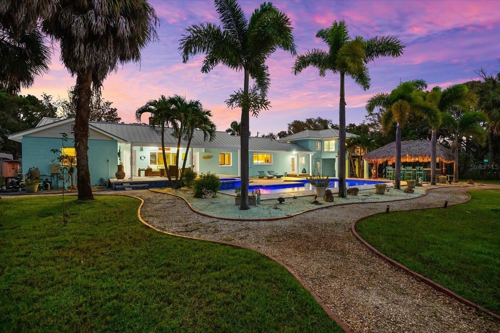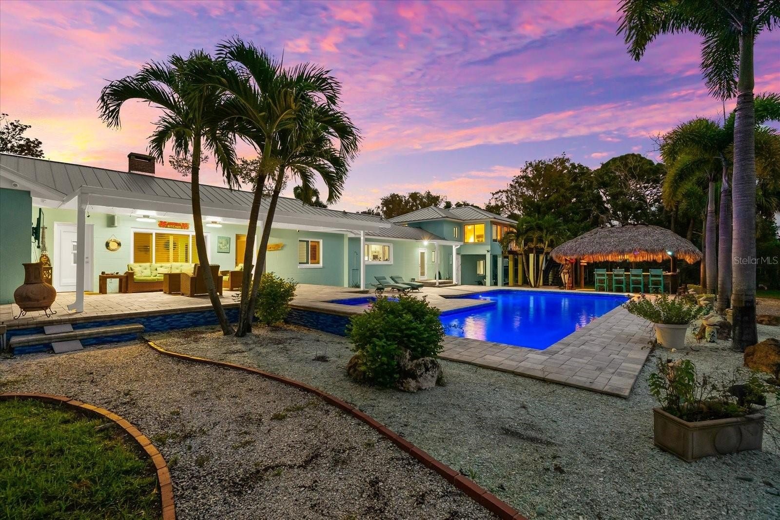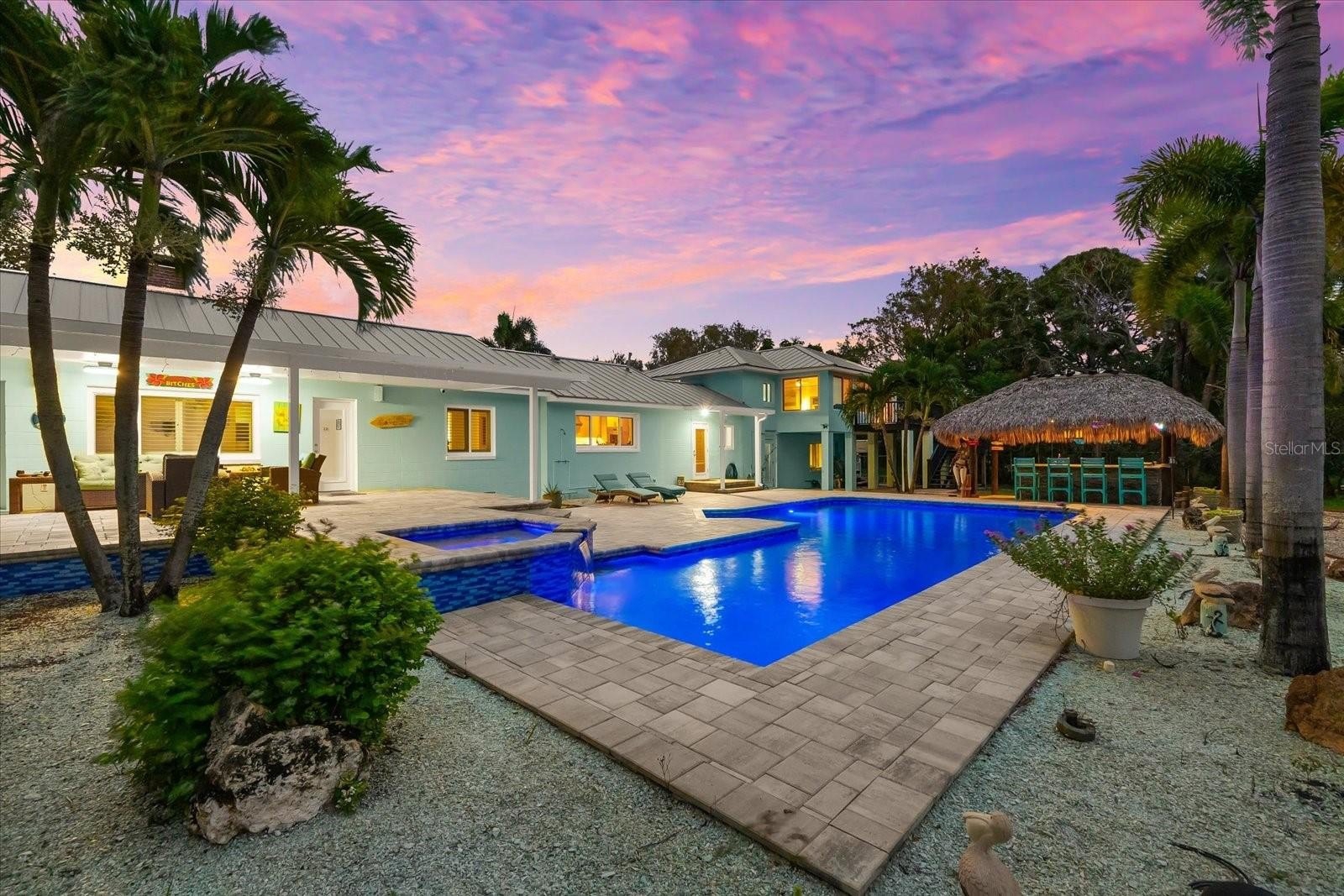 We are pleased to present this waterfront estate in one of America’s best small towns. This home sprawls over .62 of an acre and offers wonderful privacy. It also offers direct access to the Gulf of America and a situated on Sunset Lagoon through Kreamer Bayou. You will first notice the expensive front yard complete with circular driveway for easy access and entertaining. The covered front porch speaks of old Florida as it stages you towards the entrance. Step through the front door into the open foyer and dining room combination. You greeted by a large table and the original brick fireplace built in 1947. The openness of the space allows your guests to instantly enjoy the resort style backyard and pool and then out to the waterfront. Just a few steps ahead, you will experience the openness which flows the family room, kitchen, and eat-in space all as one. Plus the wall full of windows draws that Coastal vibe into your every day living. The seller spared no expense when renovating the kitchen with all custom cabinetry topped with a beautiful level six granite. Additional enhancements include subzero refrigerator, Dual zone Wine Fridge, commercial grade gas range complete with grill/griddle, double oven and under counter microwave. This open space is also just adjacent to an open den or office. It would also be a terrific secondary family/play room should you have the need. The floor plan of the four bedrooms is a magnificent split to where there’s exceptional privacy for everyone. Downstairs overlooking the backyard is a secondary master suite great for a multigenerational situation or older family members that don’t wanna navigate the stairs. However, up those stairs is the true exceptional master suite. Elevated and overlooking the backyard, pool and water is truly special. Complete with wet bar, outdoor balcony for watching the sunsets and huge floor space with plenty of room to use as sitting area, office space, exercise, equipment, and more. This is the only upstairs bedroom and is the ultimate and privacy. Additional improvements to the home include 7 inch baseboards, new tile floor, spray foam insulation, epoxy, garage floor, new garage doors, whole house, generator, and so much more. We look forward to offering you a private tour today.