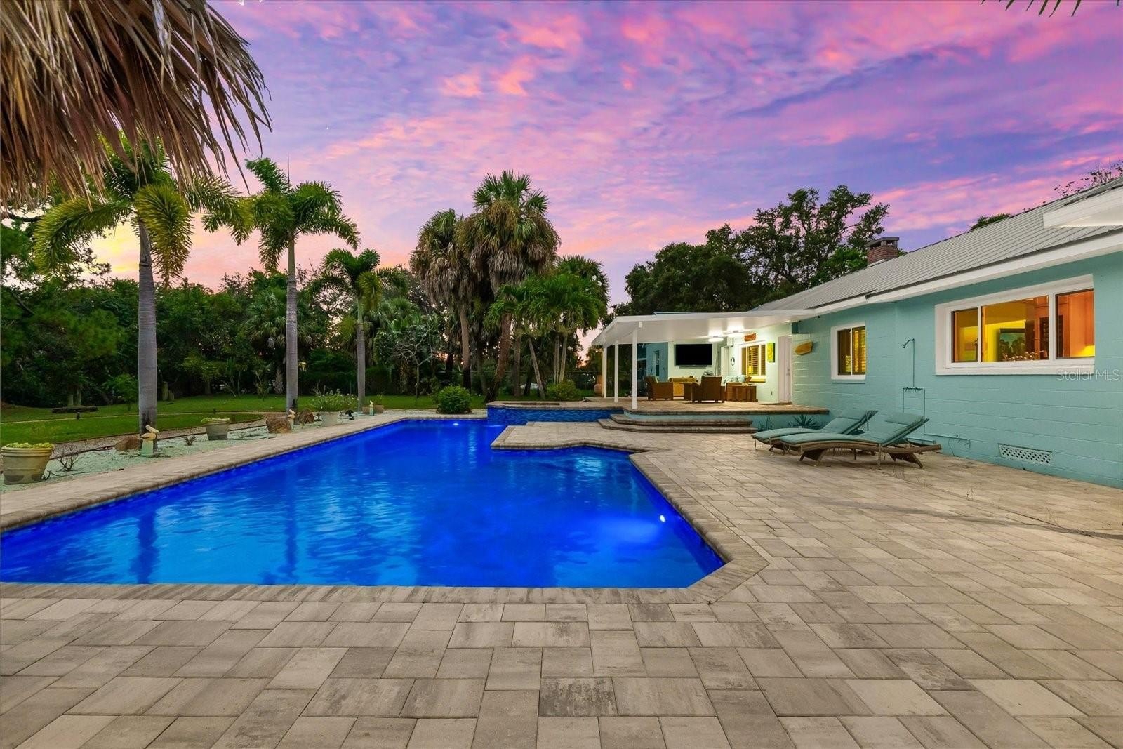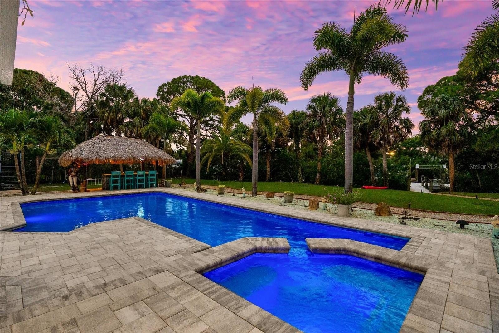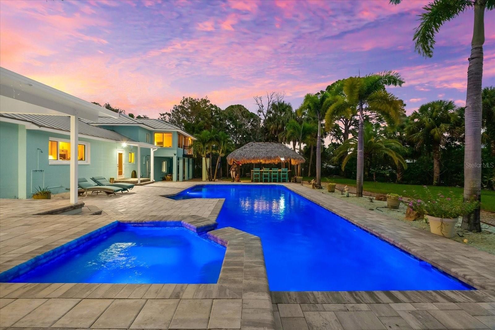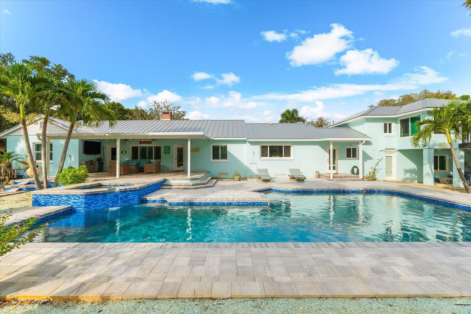 We are pleased to present this waterfront estate in one of America’s best small towns. This home sprawls over .62 of an acre and offers wonderful privacy. It also offers direct access to the Gulf of America and a situated on Sunset Lagoon through Kreamer Bayou. You will first notice the expensive front yard complete with circular driveway for easy access and entertaining. The covered front porch speaks of old Florida as it stages you towards the entrance. Step through the front door into the open foyer and dining room combination. You greeted by a large table and the original brick fireplace built in 1947. The openness of the space allows your guests to instantly enjoy the resort style backyard and pool and then out to the waterfront. Just a few steps ahead, you will experience the openness which flows the family room, kitchen, and eat-in space all as one. Plus the wall full of windows draws that Coastal vibe into your every day living. The seller spared no expense when renovating the kitchen with all custom cabinetry topped with a beautiful level six granite. Additional enhancements include subzero refrigerator, Dual zone Wine Fridge, commercial grade gas range complete with grill/griddle, double oven and under counter microwave. This open space is also just adjacent to an open den or office. It would also be a terrific secondary family/play room should you have the need. The floor plan of the four bedrooms is a magnificent split to where there’s exceptional privacy for everyone. Downstairs overlooking the backyard is a secondary master suite great for a multigenerational situation or older family members that don’t wanna navigate the stairs. However, up those stairs is the true exceptional master suite. Elevated and overlooking the backyard, pool and water is truly special. Complete with wet bar, outdoor balcony for watching the sunsets and huge floor space with plenty of room to use as sitting area, office space, exercise, equipment, and more. This is the only upstairs bedroom and is the ultimate and privacy. Additional improvements to the home include 7 inch baseboards, new tile floor, spray foam insulation, epoxy, garage floor, new garage doors, whole house, generator, and so much more. We look forward to offering you a private tour today.