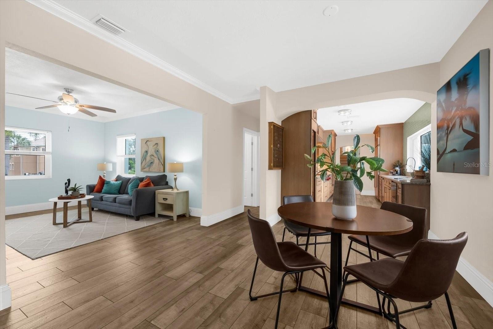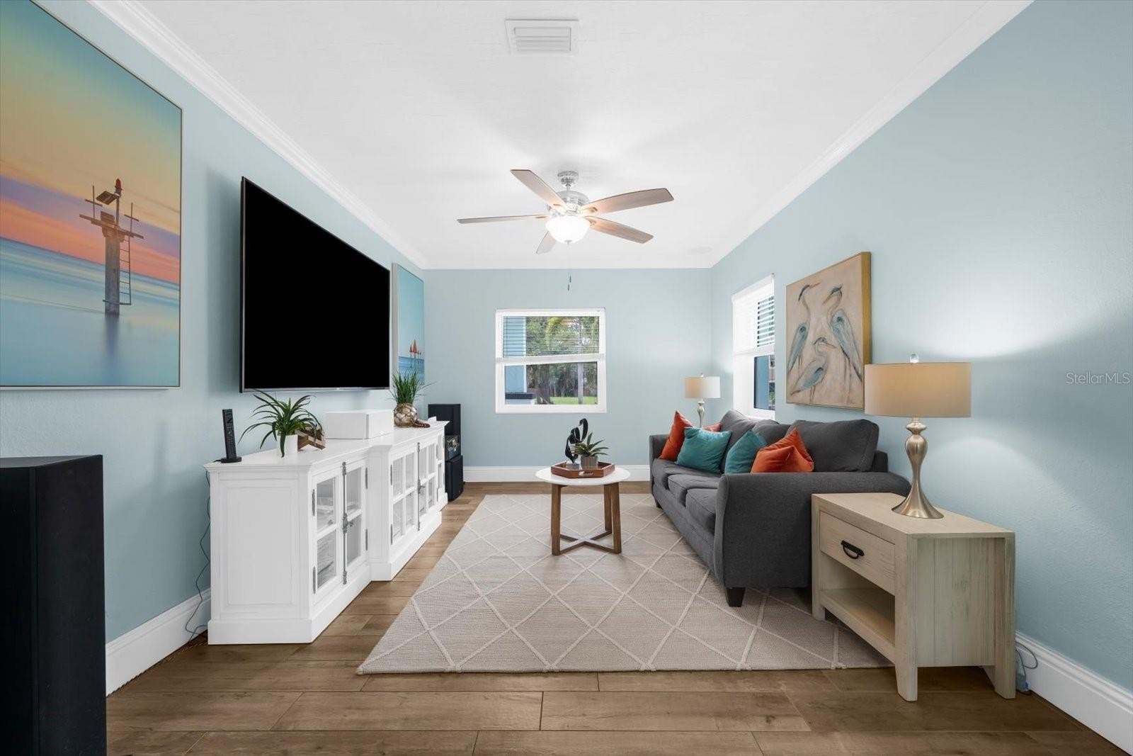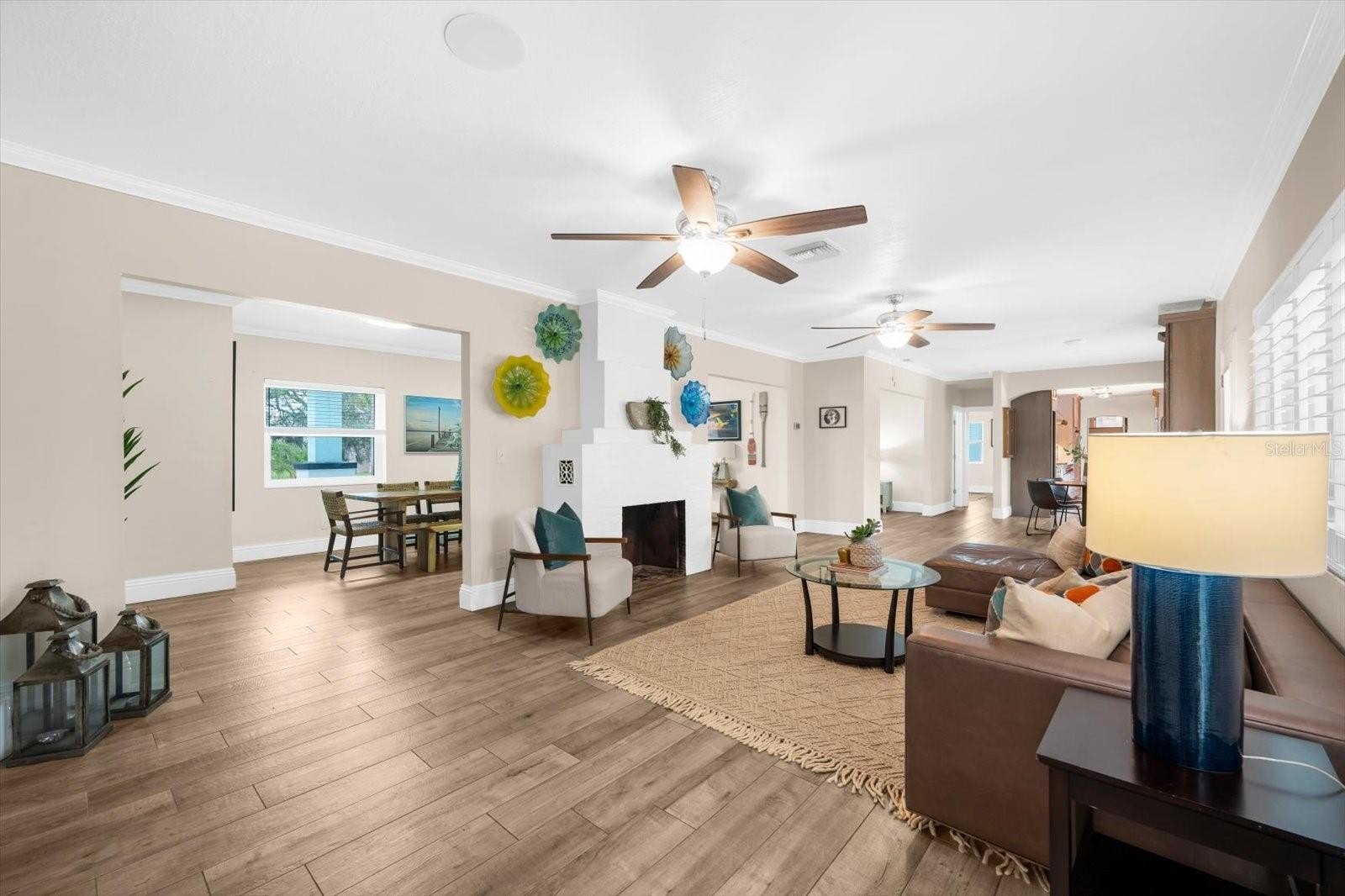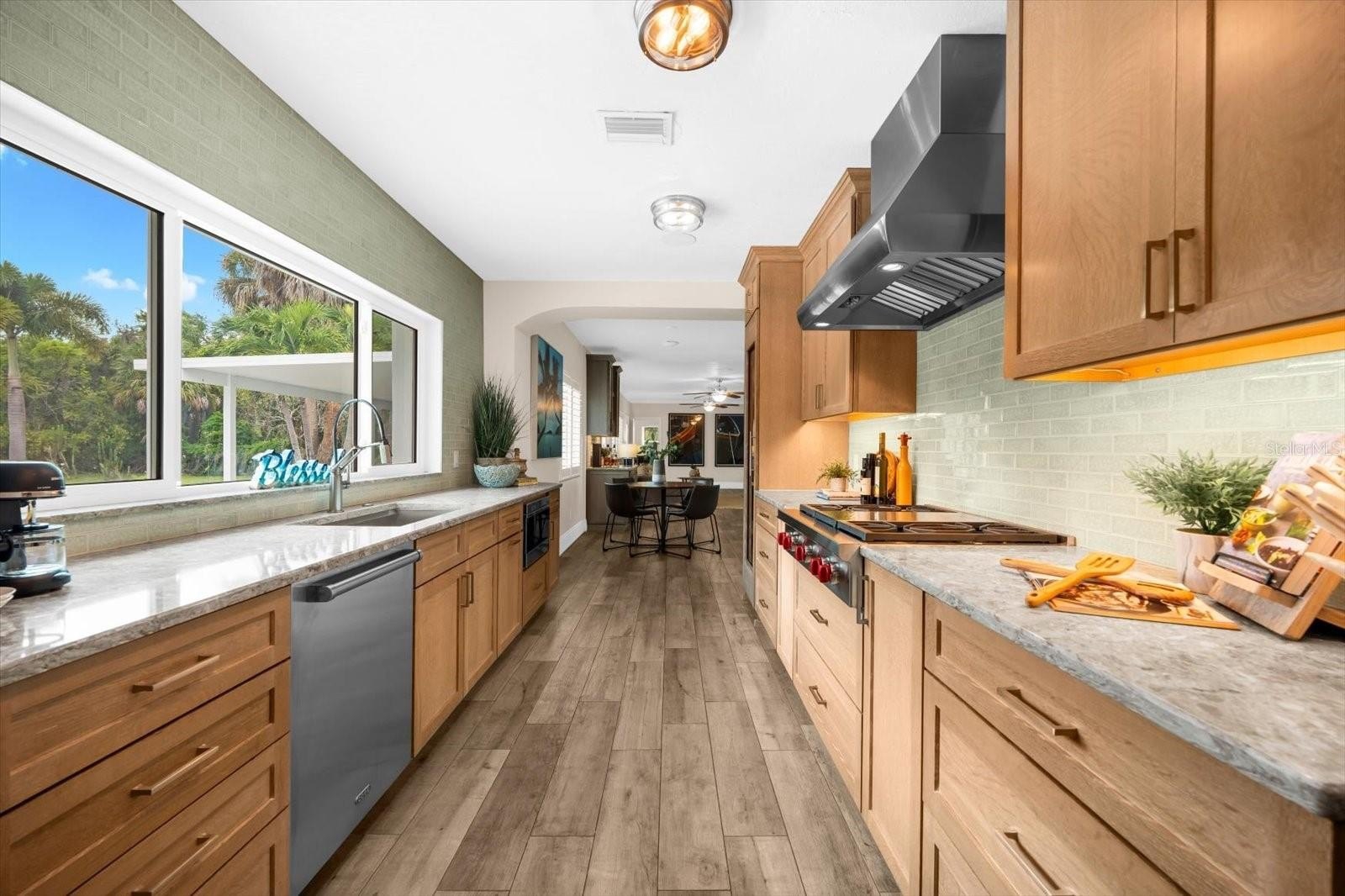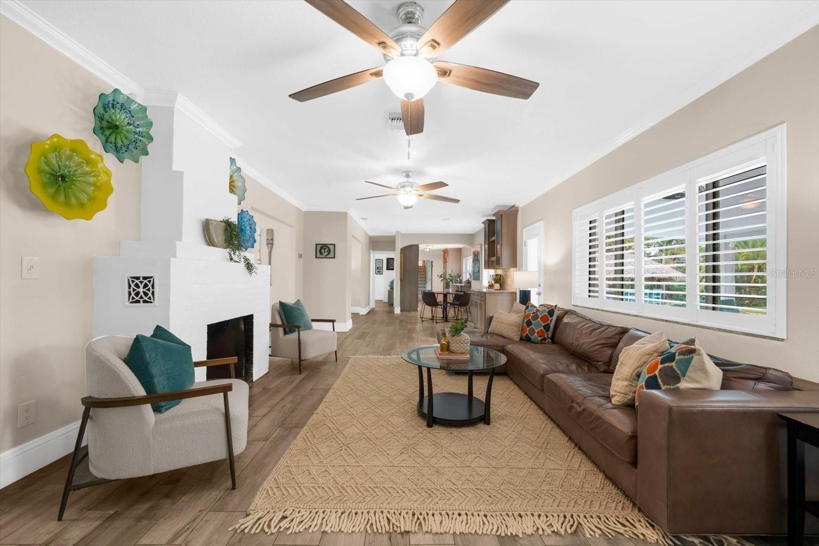 We are pleased to present this waterfront estate in one of America’s best small towns. This home sprawls over .62 of an acre and offers wonderful privacy. It also offers direct access to the Gulf of America and a situated on Sunset Lagoon through Kreamer Bayou. You will first notice the expensive front yard complete with circular driveway for easy access and entertaining. The covered front porch speaks of old Florida as it stages you towards the entrance. Step through the front door into the open foyer and dining room combination. You greeted by a large table and the original brick fireplace built in 1947. The openness of the space allows your guests to instantly enjoy the resort style backyard and pool and then out to the waterfront. Just a few steps ahead, you will experience the openness which flows the family room, kitchen, and eat-in space all as one. Plus the wall full of windows draws that Coastal vibe into your every day living. The seller spared no expense when renovating the kitchen with all custom cabinetry topped with a beautiful level six granite. Additional enhancements include subzero refrigerator, Dual zone Wine Fridge, commercial grade gas range complete with grill/griddle, double oven and under counter microwave. This open space is also just adjacent to an open den or office. It would also be a terrific secondary family/play room should you have the need. The floor plan of the four bedrooms is a magnificent split to where there’s exceptional privacy for everyone. Downstairs overlooking the backyard is a secondary master suite great for a multigenerational situation or older family members that don’t wanna navigate the stairs. However, up those stairs is the true exceptional master suite. Elevated and overlooking the backyard, pool and water is truly special. Complete with wet bar, outdoor balcony for watching the sunsets and huge floor space with plenty of room to use as sitting area, office space, exercise, equipment, and more. This is the only upstairs bedroom and is the ultimate and privacy. Additional improvements to the home include 7 inch baseboards, new tile floor, spray foam insulation, epoxy, garage floor, new garage doors, whole house, generator, and so much more. We look forward to offering you a private tour today.