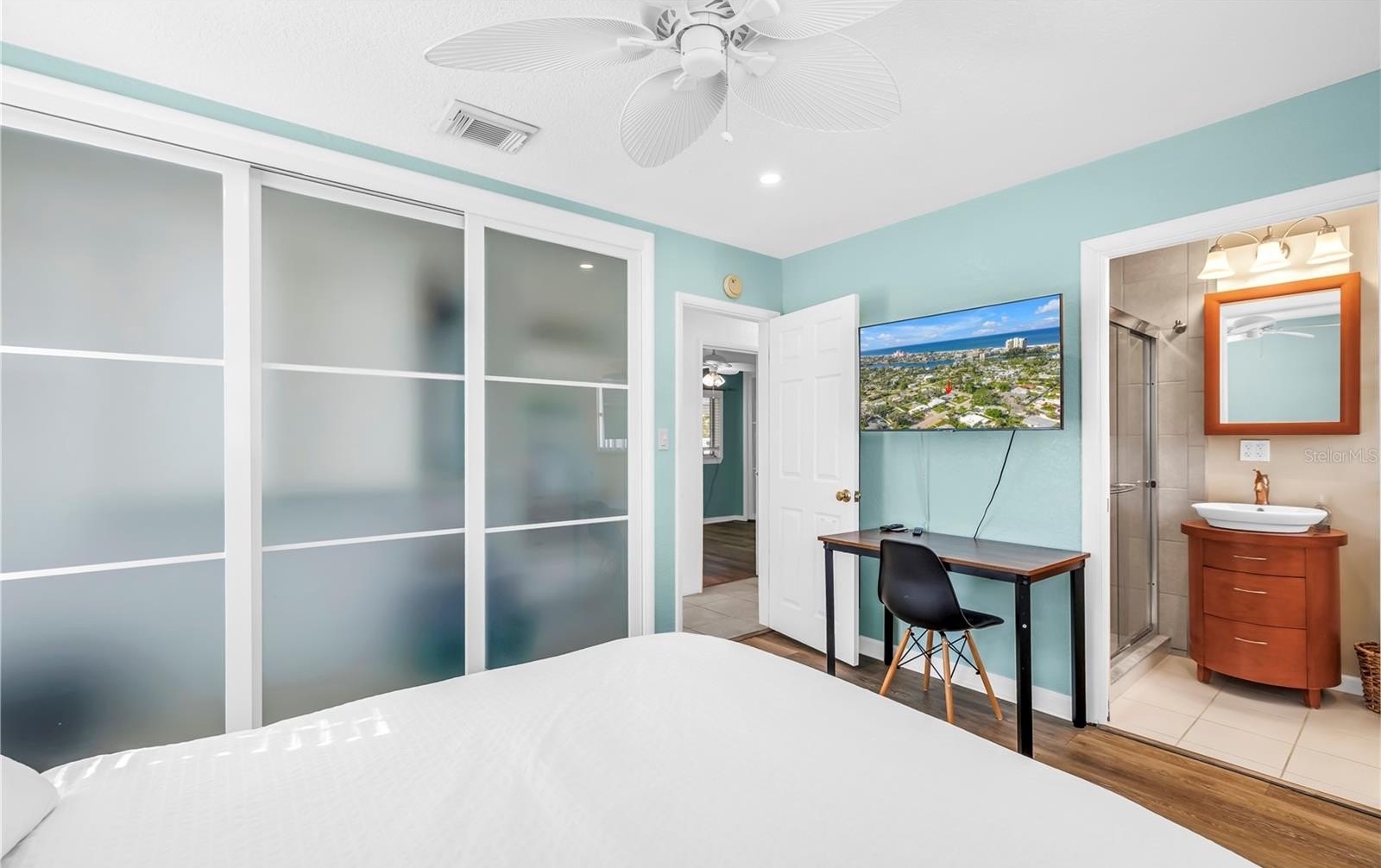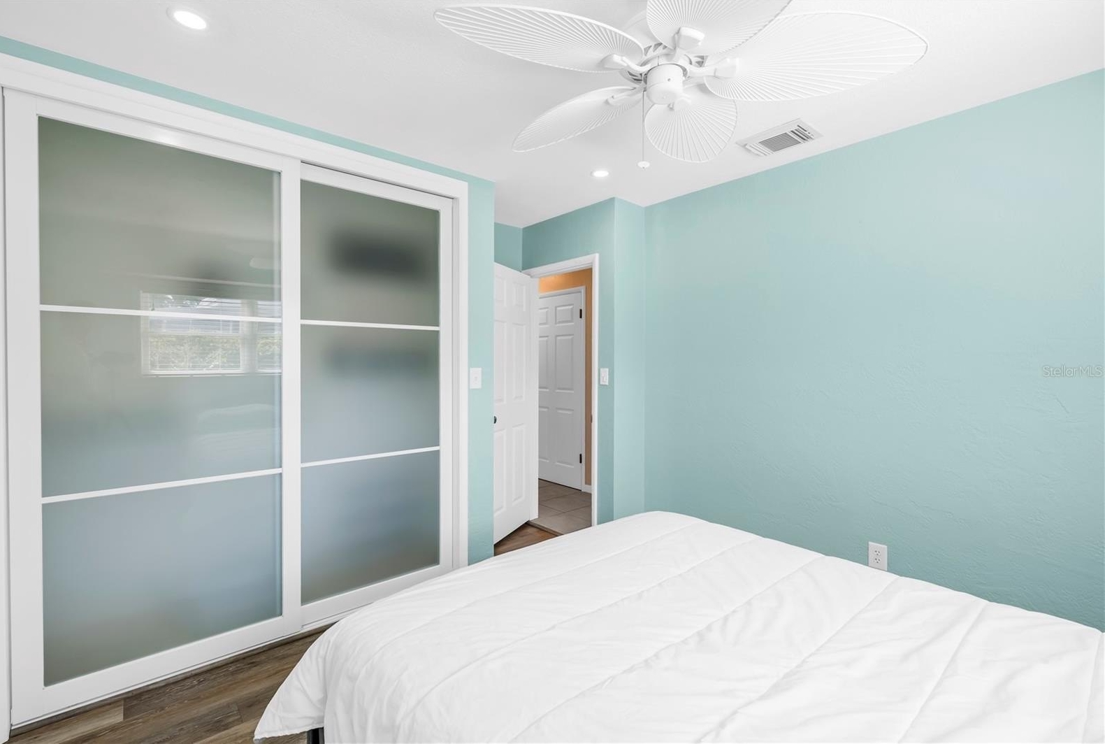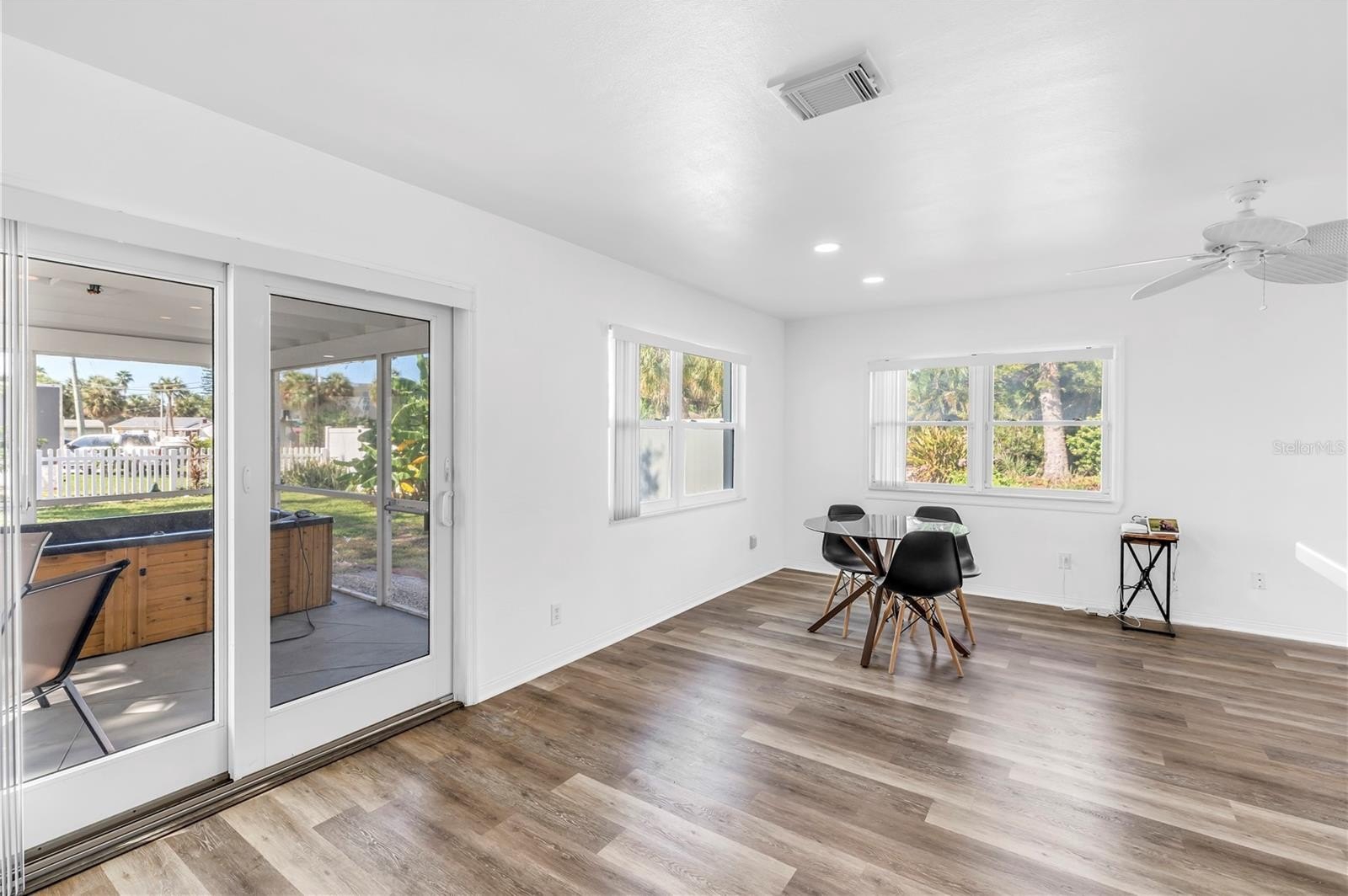 All three bedrooms, including a private primary suite, include built-in closets. Open the sliding glass doors to a screened lanai with a covered lounge area and a newer hot tub (installed in 2019), all overlooking backyard oasis with a brand new fence.