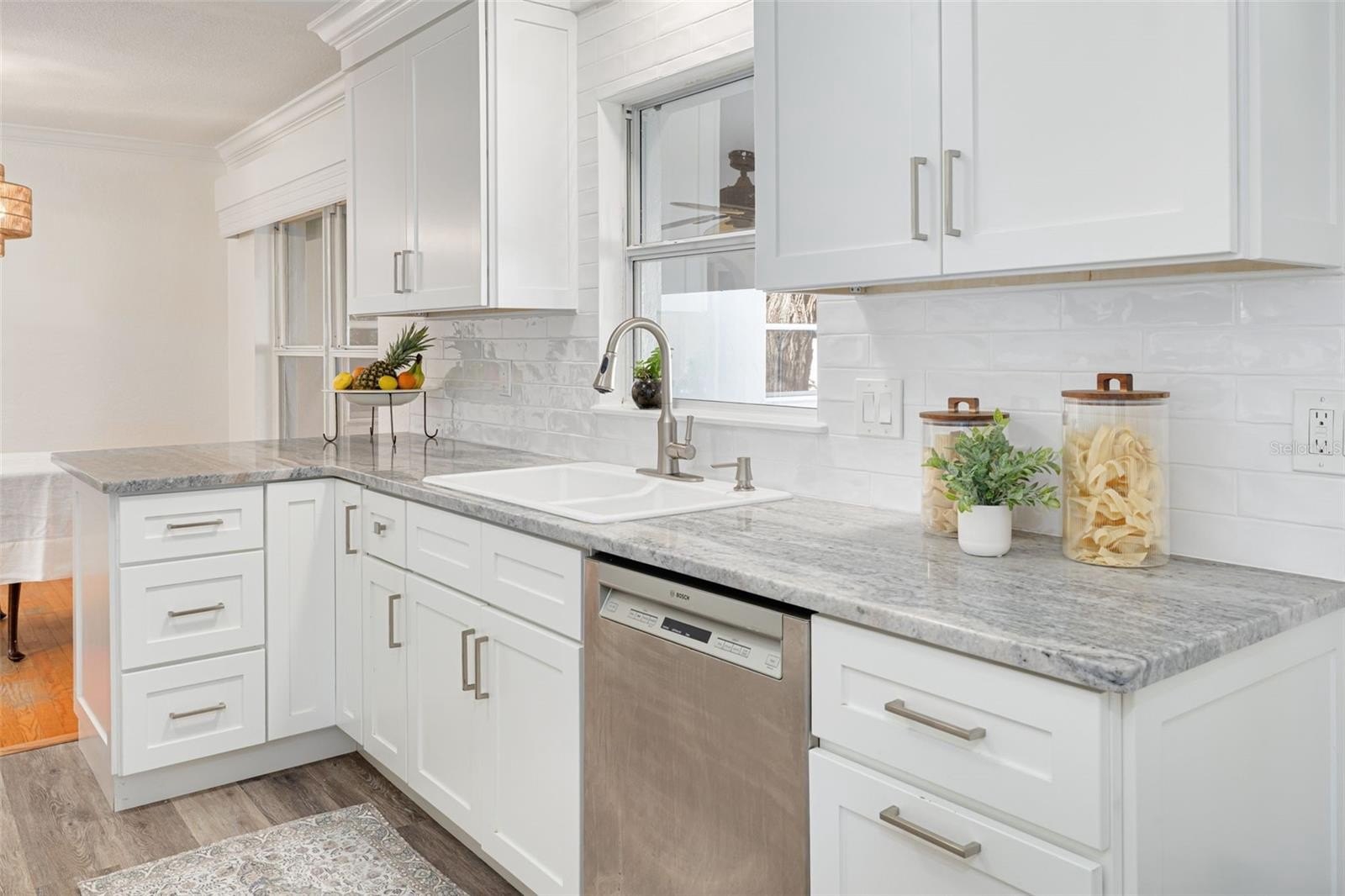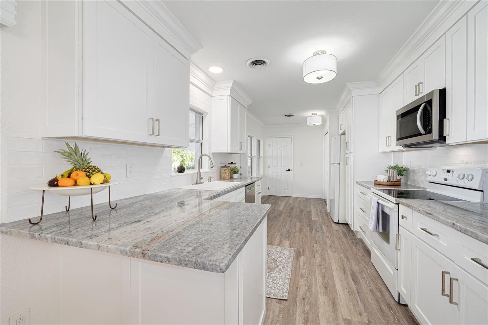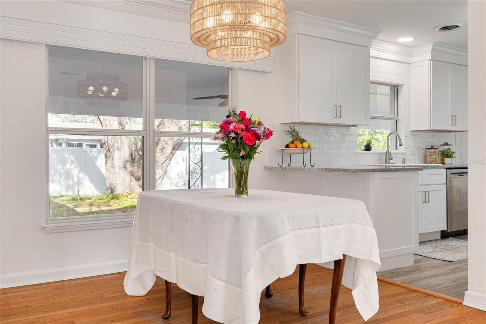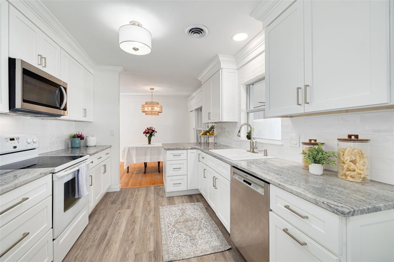 Welcome to 414 Baker Street, an impeccably maintained residence that seamlessly combines historic character with modern enhancements. This quarter acre property boasts three spacious bedrooms, two full bathrooms, and a versatile bonus room in the primary suite suitable for a home office, dressing room, or nursery, providing adaptable spaces to suit contemporary needs. The interior showcases many recently updated features, and beautiful hardwood flooring throughout the main living areas and bedrooms. The newly renovated kitchen is equipped with upgraded appliances, granite countertops, a subway tile backsplash, and LVT flooring. Additional amenities include a dedicated dining room and a convenient interior laundry area. Outdoor spaces feature a generous fenced backyard, ideal for entertaining, gardening, or accommodating pets, complemented by a sizable two-car garage offering ample storage and workspace. The exterior recent improvements include new sod, updated columns, custom shutters, and shake shingles, enhancing both charm and curb appeal. Major upgrades have been completed, including a new roof (2020), updated electrical panel (2023), a brand-new water heater, new air conditioning system with ducts (2019), as well as new fans and light fixtures (2025), delivering peace of mind and improved energy efficiency. Situated in close proximity to the highly regarded Clearwater Fundamental, this home provides exceptional comfort and convenience for all.