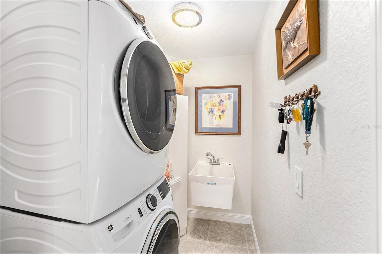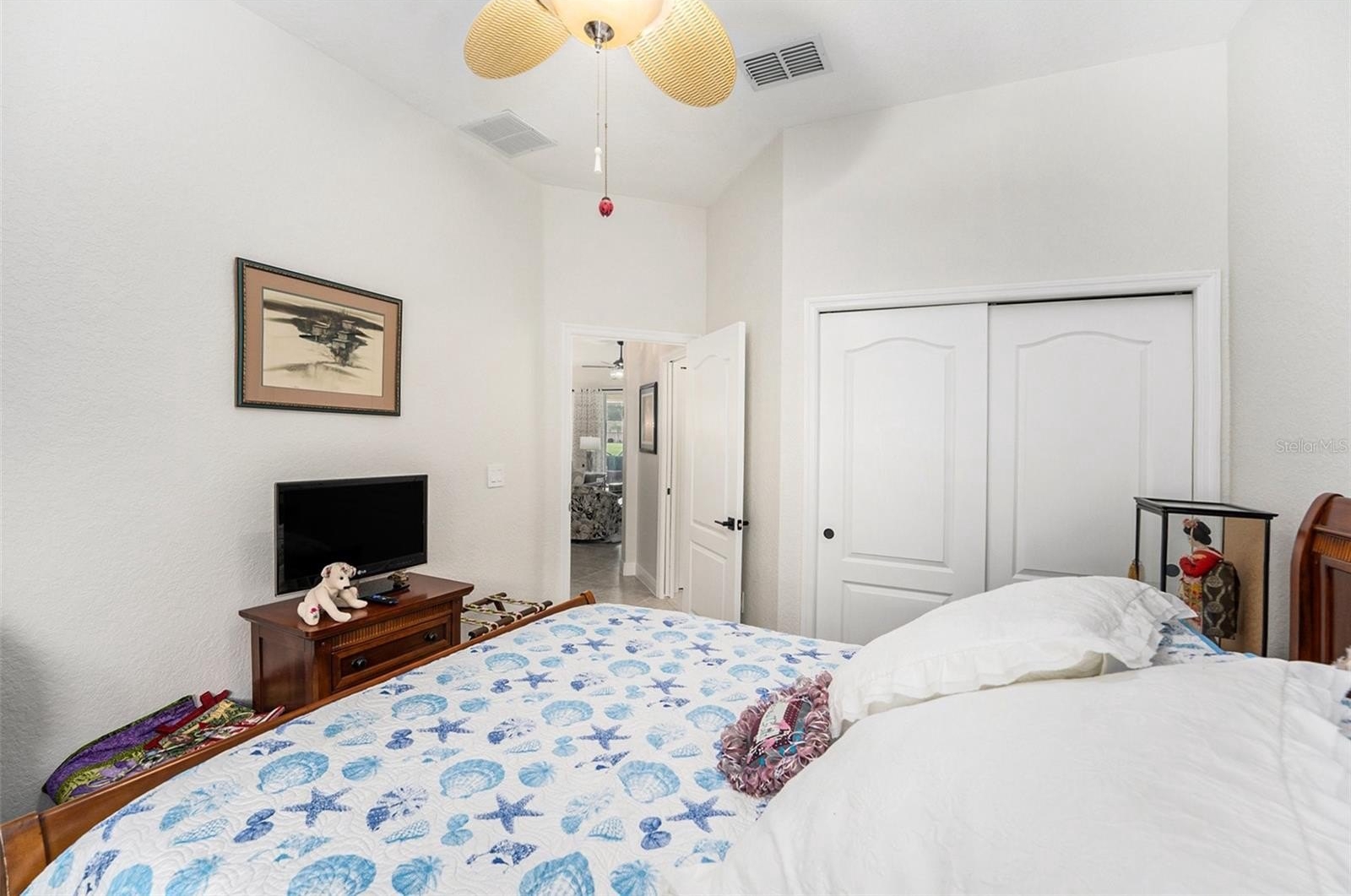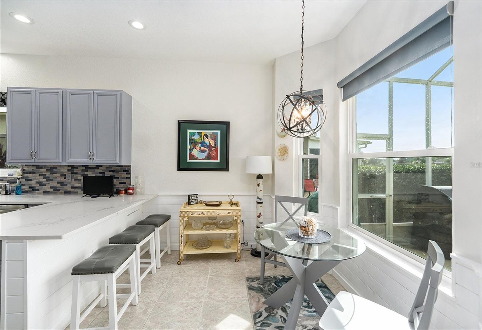 Beautiful Golf Course & Pond Views. Located in the sought-after 55+ community of Tampa Bay Golf and Country Club, this 3-bedroom home combines modern updates with stunning outdoor scenery. Step inside through a decorative glass front door into a spacious great room with 9.5-foot ceilings. Two sets of tinted sliding glass doors open to an oversized screened lanai with panoramic views of the pond and 10th hole. The kitchen has been recently remodeled with stainless steel appliances, quartz countertops, glass-tile backsplash, abundant cabinetry, pantry, and a dine-in area. The primary bedroom suite offers two closets, including an extra-large walk-in, plus a tiled shower with frameless glass enclosure and a relaxing whirlpool tub. The guest bathroom features a striking glass bowl sink with matching vanity cabinet. Updated light fixtures and ceiling fans add a modern touch throughout. Common rooms and wet areas have tile floors while bedrooms all have a matching luxury vinyl that complements the tile. The laundry room off the kitchen offers a stacked washer/dryer, utility sink, and broom closet for added convenience. Major updates include a new roof (2021), A/C (2019), and a tankless water heater for instant hot water. Enjoy access to resort-style amenities including two golf courses, swimming pools, fitness center, pickleball and tennis courts, and an on-site restaurant. HOA Fees include Cable, Internet, and Lawn Care. This home offers a low-maintenance, amenity-rich lifestyle with one of the best views in the community.