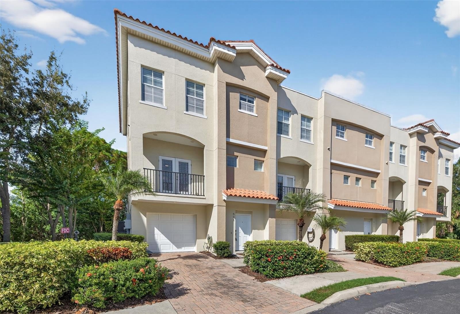 Welcome to this stunning 3 bedroom, 3.5 bath Mediterranean style end unit 3 story townhome in the private gated Gandy Townhomes community. Offering 1,680 sqft of living space across three levels, this home blends comfort, style, and convenience. The private entryway leads to a linen closet and attached 1-car garage. On the first floor, a spacious bedroom with an ensuite bath opens to a wood deck with peaceful conservation views. The expansive living level features a half bath and French doors opening to a balcony where morning sunlight streams as well as hardwood bamboo flooring with recessed lighting for a modern touch. The well appointed kitchen boasts granite countertops, a breakfast bar, newer stainless steel appliances, and ample storage, along with an eat in dining nook. The top level includes a laundry closet, secondary bedroom with ensuite bath, and the inviting primary suite, which offers abundant natural light, a walk-in closet, a tiled shower with glass enclosure. Additional highlights include a new HVAC and Hot Water Heater that were both replaced in 2024 and HOA services that cover water, sewer, trash, exterior maintenance, landscaping, gated security, and access to the sparkling community pool. Located just steps from the vibrant 4th Street and Gandy Blvd corridors, you’ll enjoy easy access to shops, restaurants, and more. Just a quick 15-20 min drive to downtown St. Petersburg, Tampa International Airport, South Tampa, and the Gulf Beach Beaches. Don't wait on this one. Schedule your private showing today!