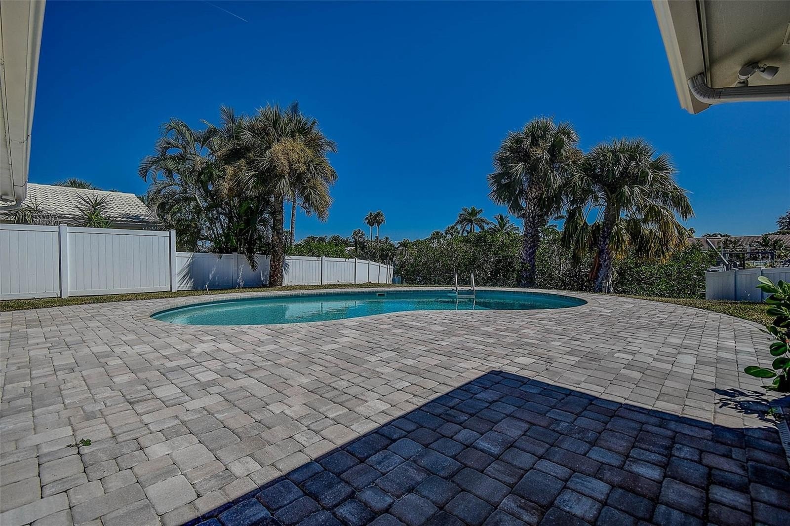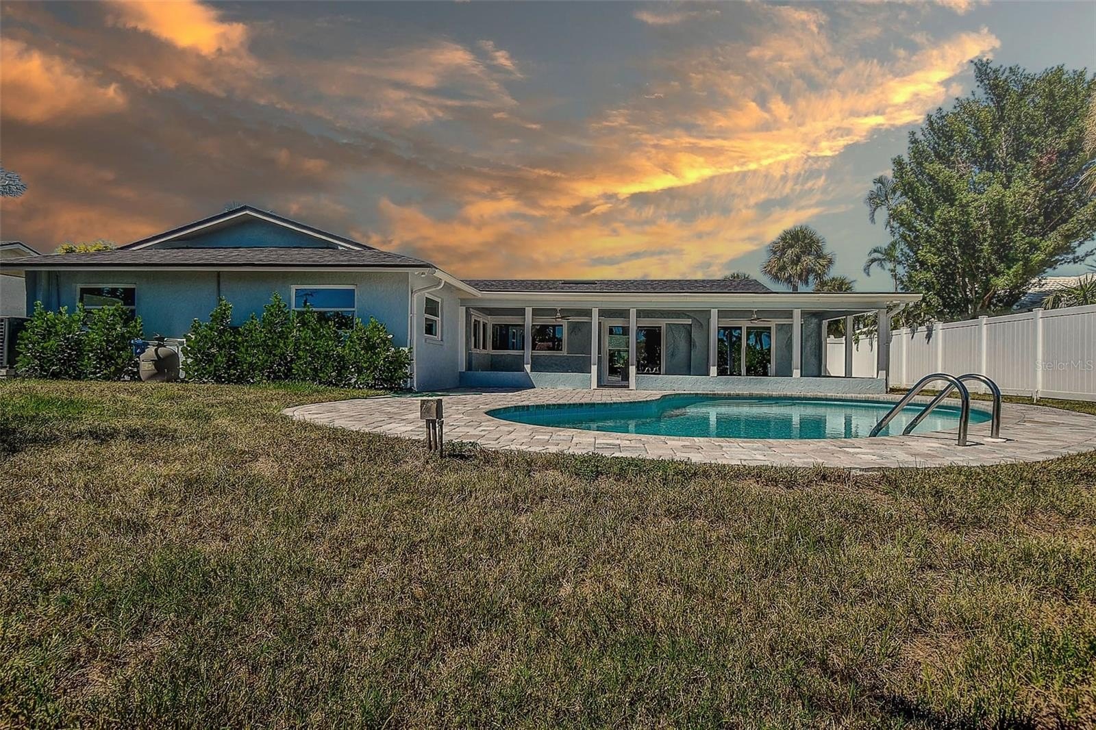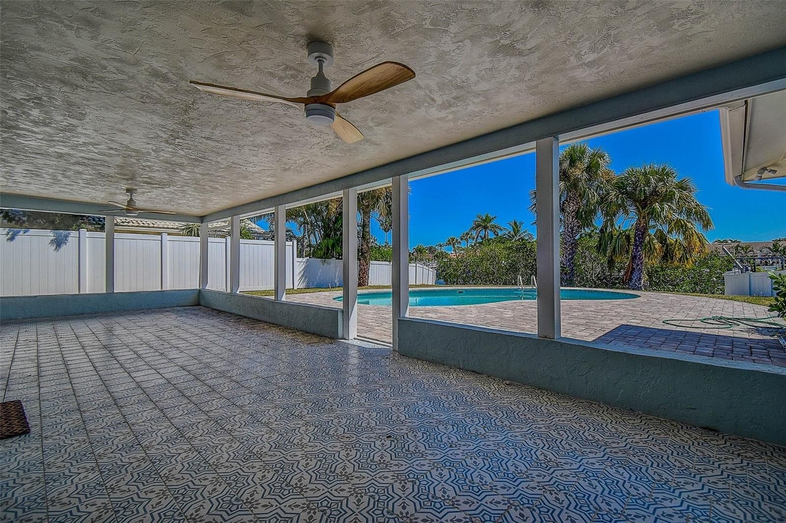 Remote controlled CEILING FANS throughout the home, including the lanai. The IN-GROUND pool features newer equipment and a newly PAVED pool deck. VINYL fencing encloses the property, complemented by fresh landscaping.