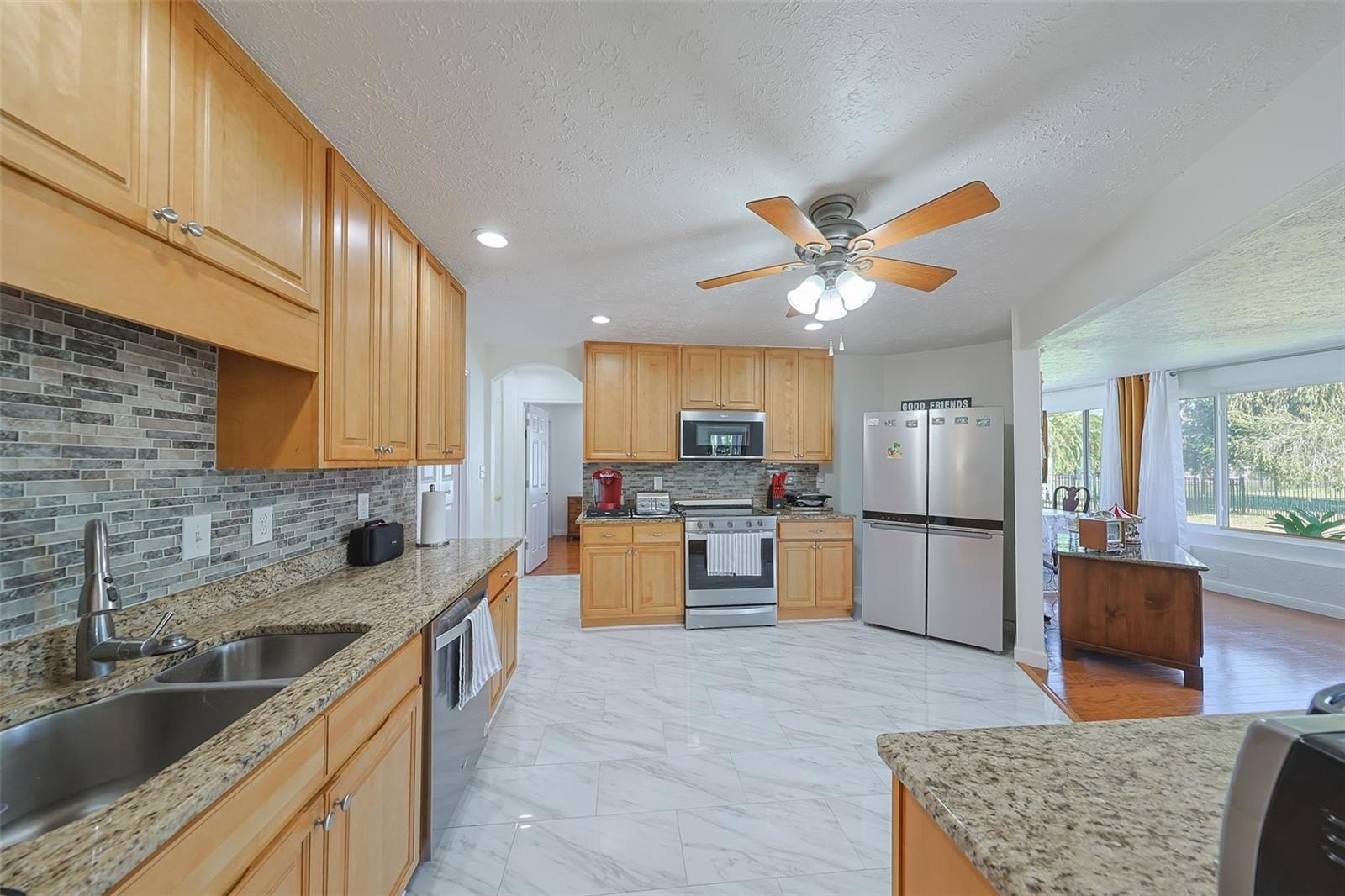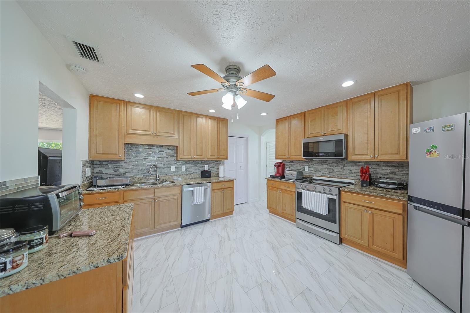 METICULOUSLY MAINTAINED WITH PRIDE OF OWNERSHIP this is a - NO HOA - PET FREE - SMOKE FREE HOME! You will be "Living the Dream" when you become the owner of this gorgeous home in Sun City Center. This "Spanish Colonial" style home is light & bright throughout the Living Room, Family Room, Kitchen & Bathrooms. The oversized Florida Room is perfect for entertaining. The Landscaping has been completely refreshed and the Front Courtyard is a delight for your eyes. The huge backyard is big enough to build a swimming pool for your enjoyment. Newer a/c (2020), Roof (2018), Electrical panel box replaced 2021. Hot water tank, Garbage Disposal, Garage door all replaced 2023-24. Hurricane impact windows. For just $344/person annually you can enjoy all the amenities of Sun City Center, featuring indoor & outdoor swimming pools, 10 har-thru tennis courts, 2 dog parks, horseshoes, PICKLE BALL, softball for men & women, woodworking and various Art & Crafts. With over 200 social clubs available that include travel, ceramics, gardening, computer, bridge, poker, writing, 10 dance groups, a theatre group you'll never be bored. The community offers several grocery stores, a hospital, 2 "Big Box" stores, restaurants, doctors' offices, various Houses of Worship, all accessible by golf cart. Strategically located near Tampa, Sarasota & St Petersburg you'll have easy access to Tampa International Airport, World class Beaches, Professional Sporting events & Fine Dining. The Entertainment of Orlando is approximately 90 minutes away. This one of a kind home will delight the most descripinating buyer. Warm & Friendly neighbors. Make an appointment to view ths home today! Furniture is available under separate contract.