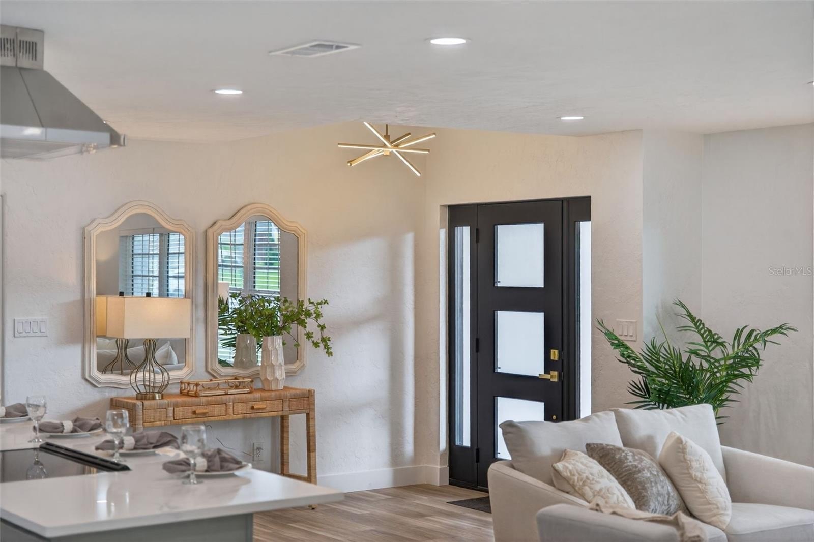 One or more photo(s) has been virtually staged. "Make Every Day Feel Like a Holiday" - Welcome to this stunning, fully renovated home in the desirable Holiday Park neighborhood of West St. Pete. Situated on a spacious corner lot, this 1,558 sqft residence seamlessly blends modern comfort with effortless Florida living.