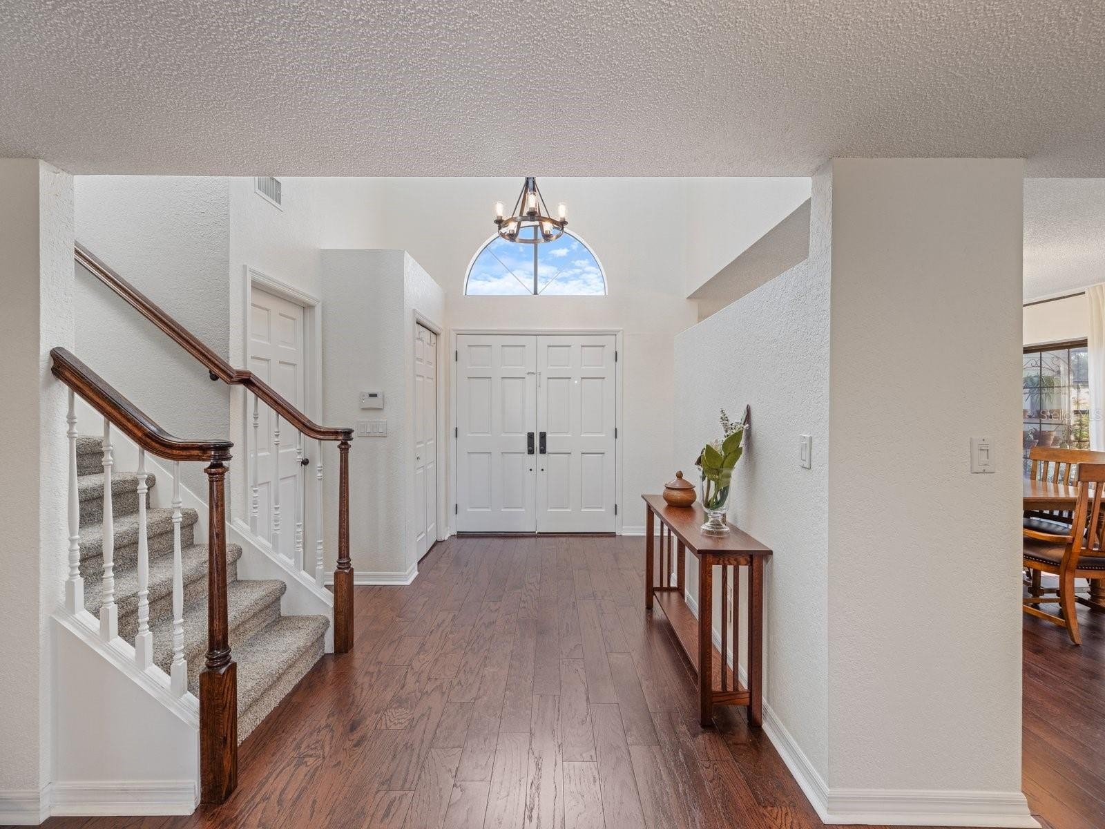 Discover the perfect blend of comfort, character, and convenience in this beautiful two-story home, tucked away on a peaceful cul-de-sac in Safety Harbor. From the moment you step inside, you’ll feel the warmth of solid wood doors, gleaming wood floors, and the inviting glow of the family room’s floor-to-ceiling wood-burning fireplace. At the heart of the home lies a spacious kitchen featuring rich wood cabinetry, granite countertops, a center island, and high-end GE Profile and Bosch stainless steel appliances—perfect for both everyday living and entertaining family or friends. Nearly every room enjoys serene pond views, with more than 160 feet of combined waterfront creating a picturesque backdrop for relaxing or hosting gatherings by the large screened-in pool area. Upstairs, the primary suite offers a private retreat with an ensuite bath, while two additional bedrooms share a generous secondary bathroom. A fourth bedroom on the main floor opens directly to the screened lanai and pool area and has access to a full bath that also serves as the convenient pool bath.