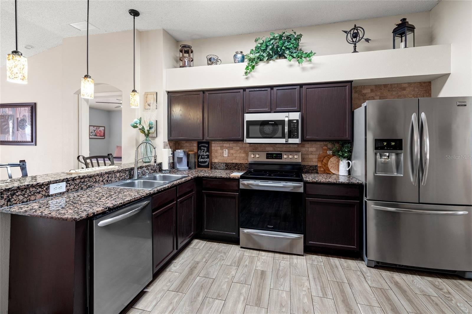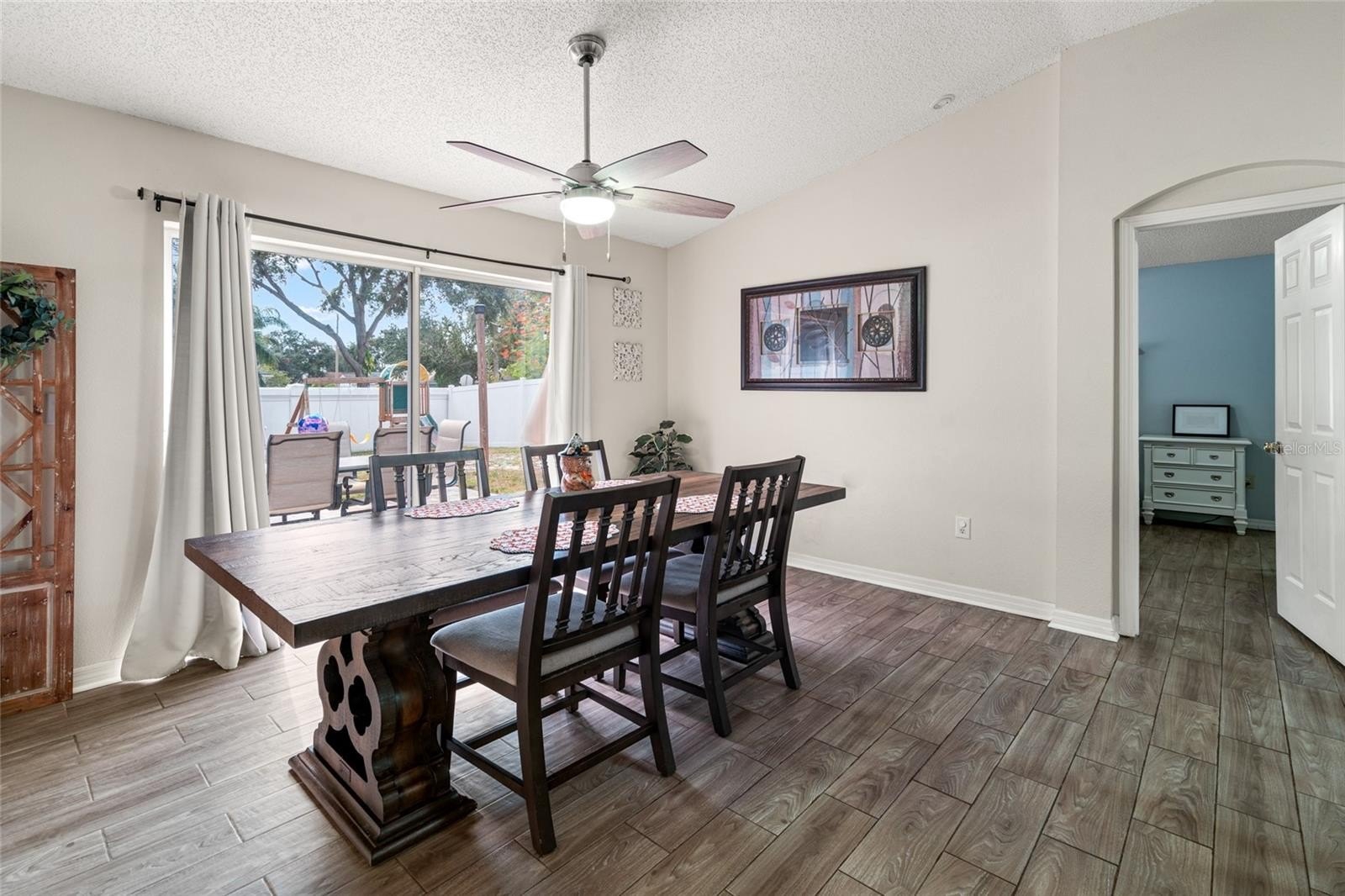 Inside, you'll love the open-concept great room—perfect for family gatherings and entertaining guests. The chef-inspired kitchen features stainless steel appliances and plenty of counter space, with multiple dining options including a breakfast bar, an eat-in area, and a formal dining room. The split floor plan provides added privacy, while the spacious primary suite boasts a dual vanity and a relaxing garden tub. Tile flooring runs throughout the main areas, and recent updates like a 3-year-old roof and energy-efficient UV-protected windows give you peace of mind.