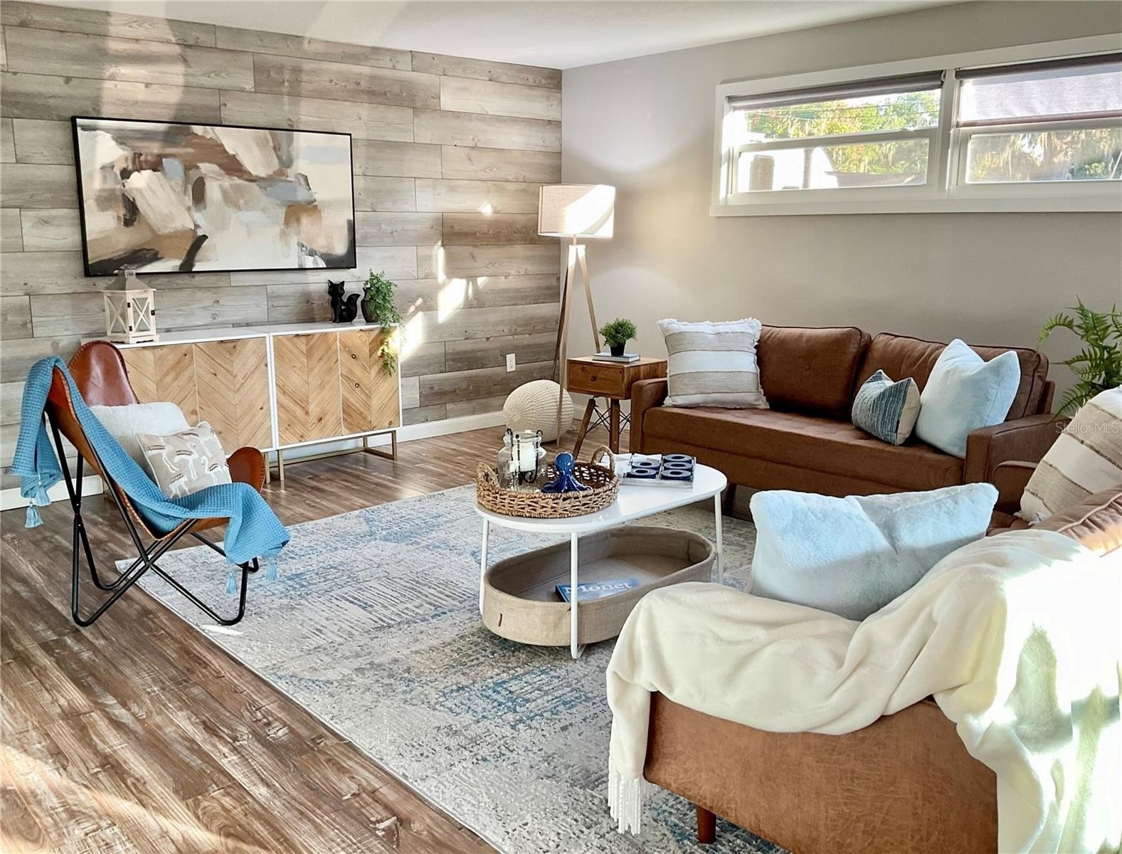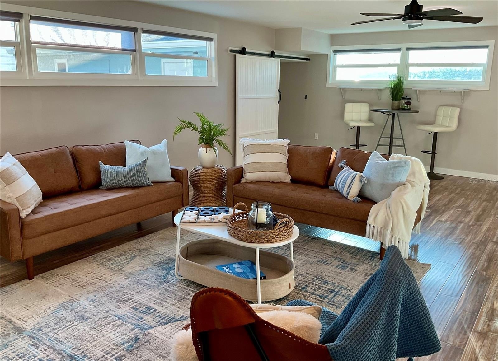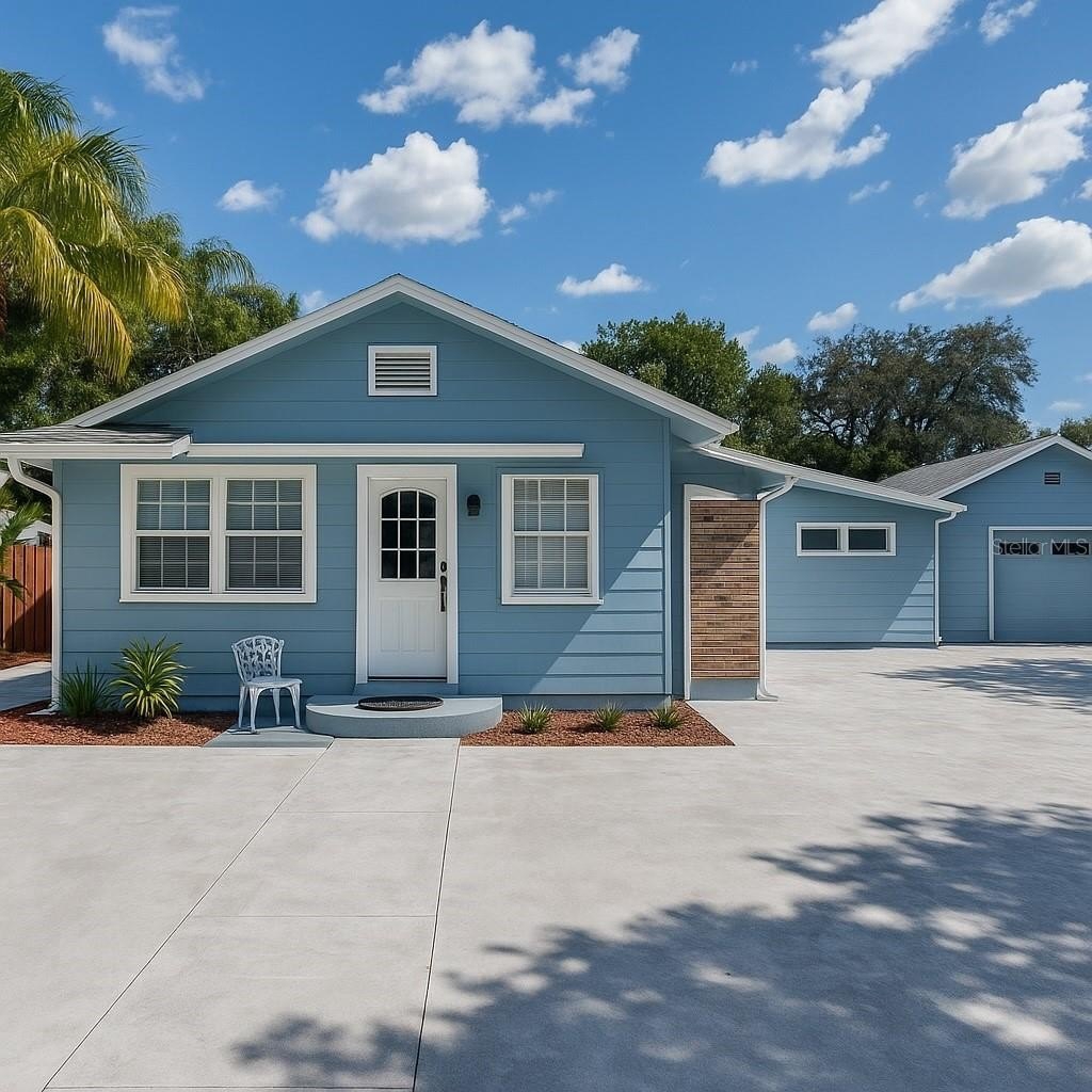 Fully Renovated 3-Bedroom Home with Oversized Heated & Cooled Garage. Welcome to this unique downtown gem—a beautifully renovated 3-bedroom, 2-bathroom home offering 1755 square feet of modern living space and a 750 sq. ft. climate-controlled metal garage. Perfectly situated in the heart of Downtown New Port Richey, this property blends timeless charm with contemporary comfort and unbeatable functionality. Property Highlights: Completely remodeled interior featuring new flooring throughout, Stunning kitchen with solid wood cabinetry and stainless steel appliances, Split-bedroom layout, formal dining room, and oversized living area, primary suite with sliding barn door, updated en-suite bath, solid-surface vanity, and custom tile shower, Indoor laundry room and abundant storage, Oversized driveway accommodates up to six vehicles, Covered nook ideal for motorcycles, bicycles, or golf cart storage. Versatile Heated & Cooled Garage: