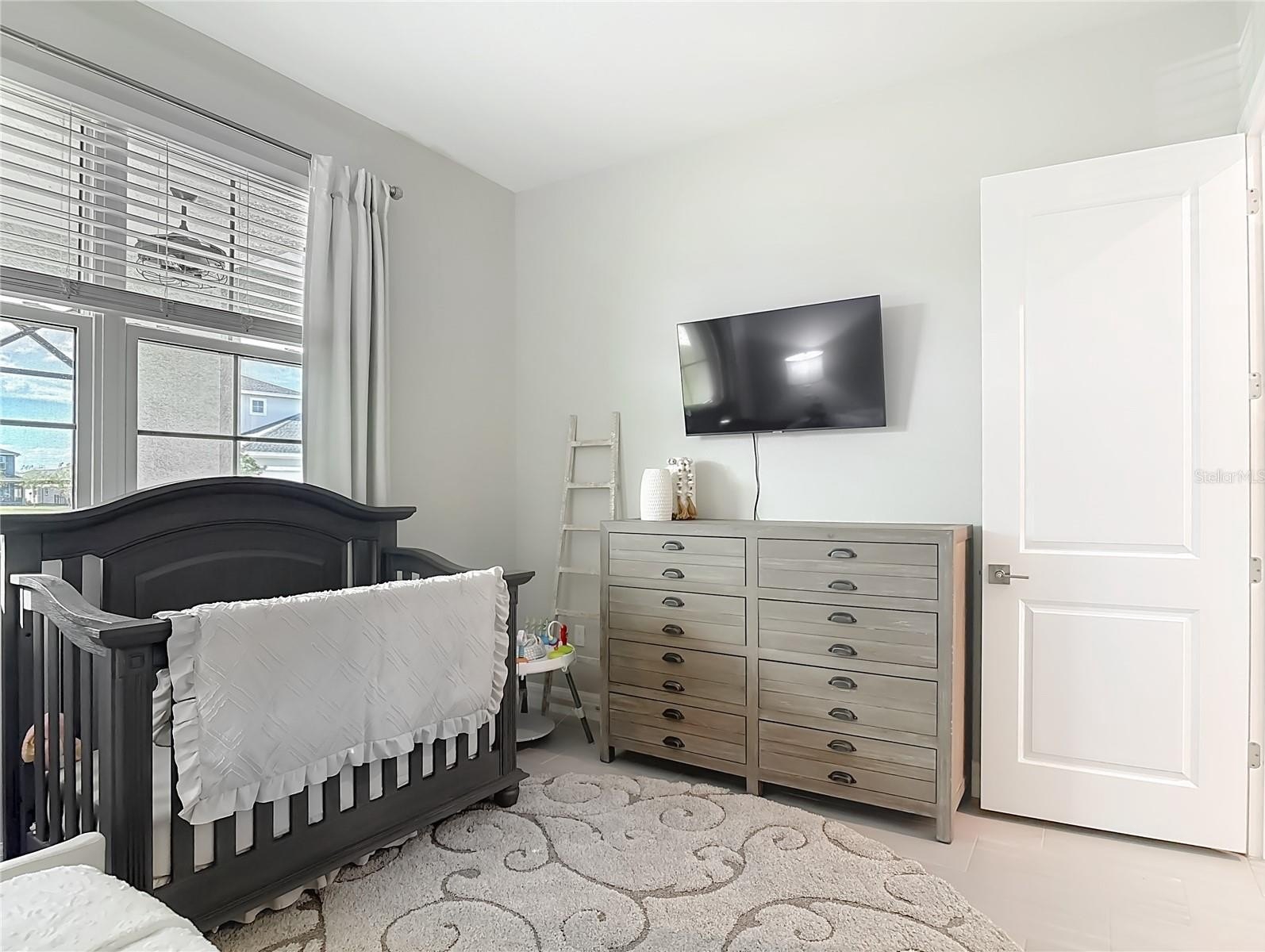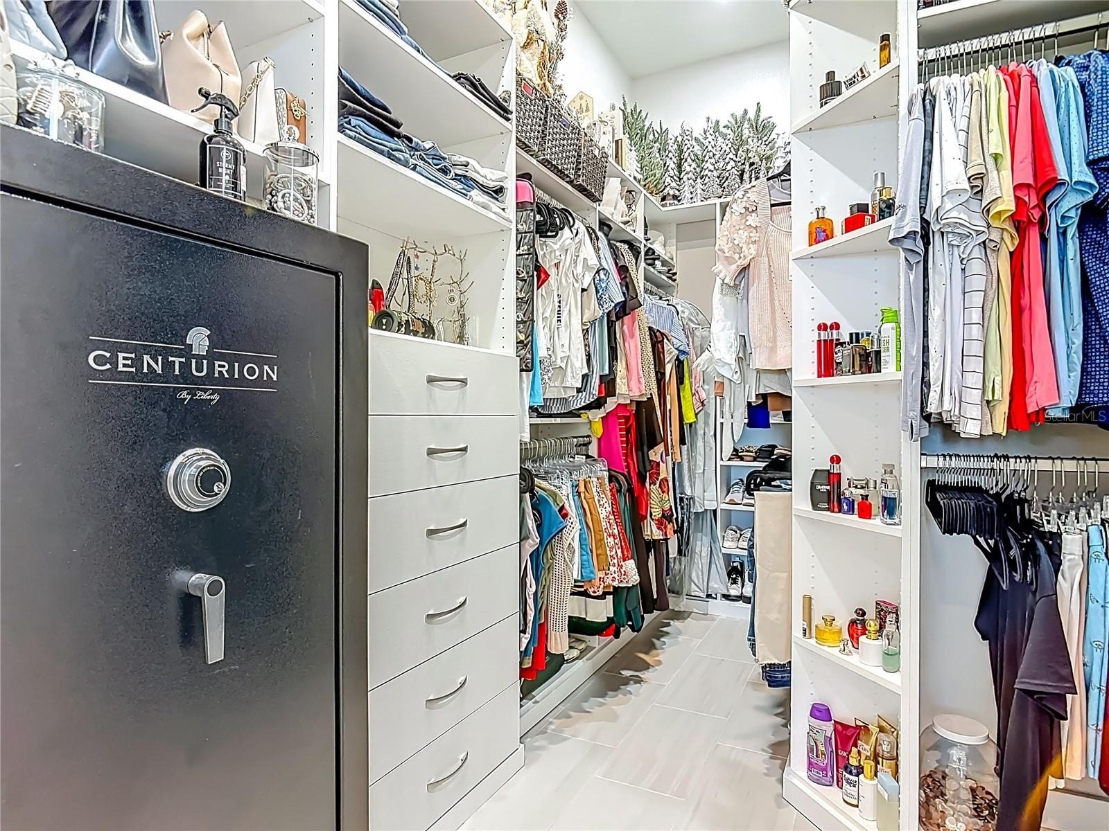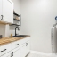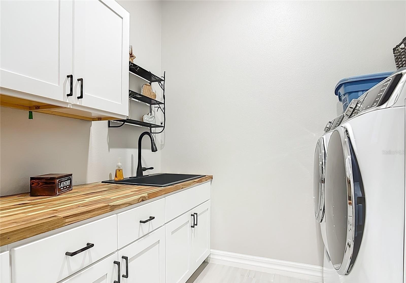 The owner's suite is a private escape, featuring a designer accent wall, a walk-in closet with custom built-ins and a gun safe, and a spa-style bathroom with upgraded finishes. The laundry room includes cabinetry, a sink, and a washer and dryer already in place for your convenience.