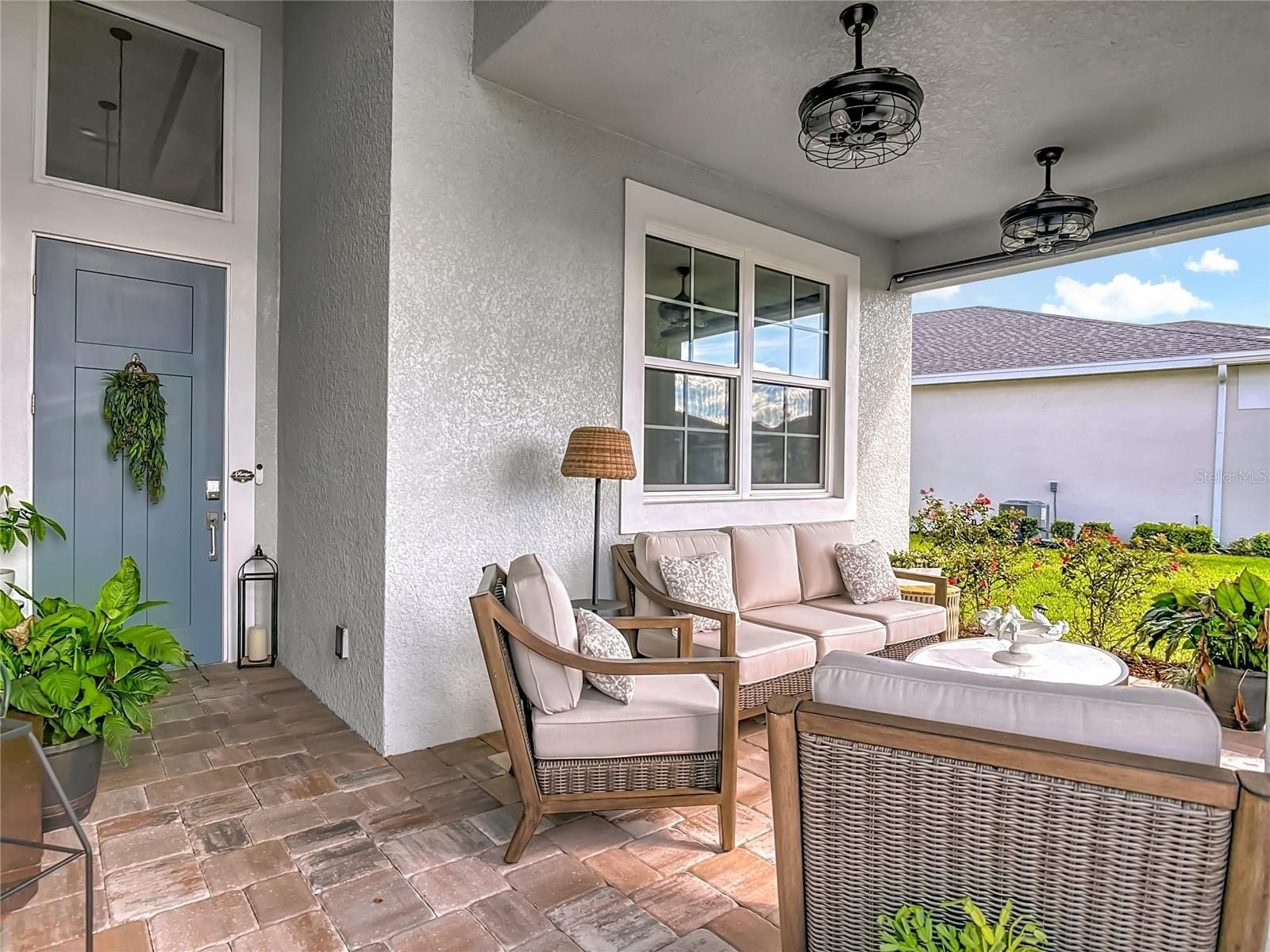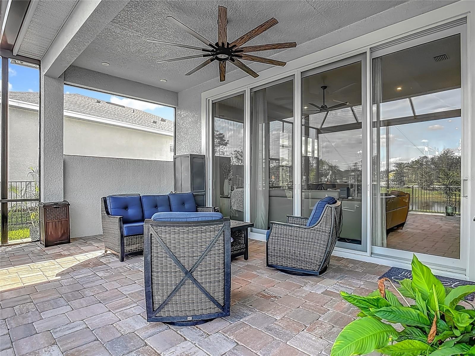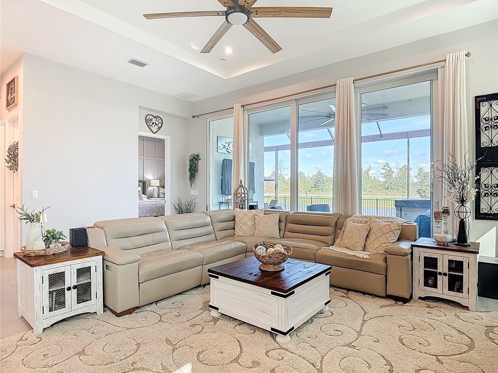Enjoy Florida living at its best with an extended front porch and a spacious, extended screened-in lanai complete with a jacuzzi and prepped for a future summer kitchen. The fully fenced backyard offers great outdoor enjoyment. Tasteful window treatments, multiple ceiling fans, stylish lighting, and GoVe exterior accent lighting beautifully highlight the home's architectural details and add to its inviting curb appeal.