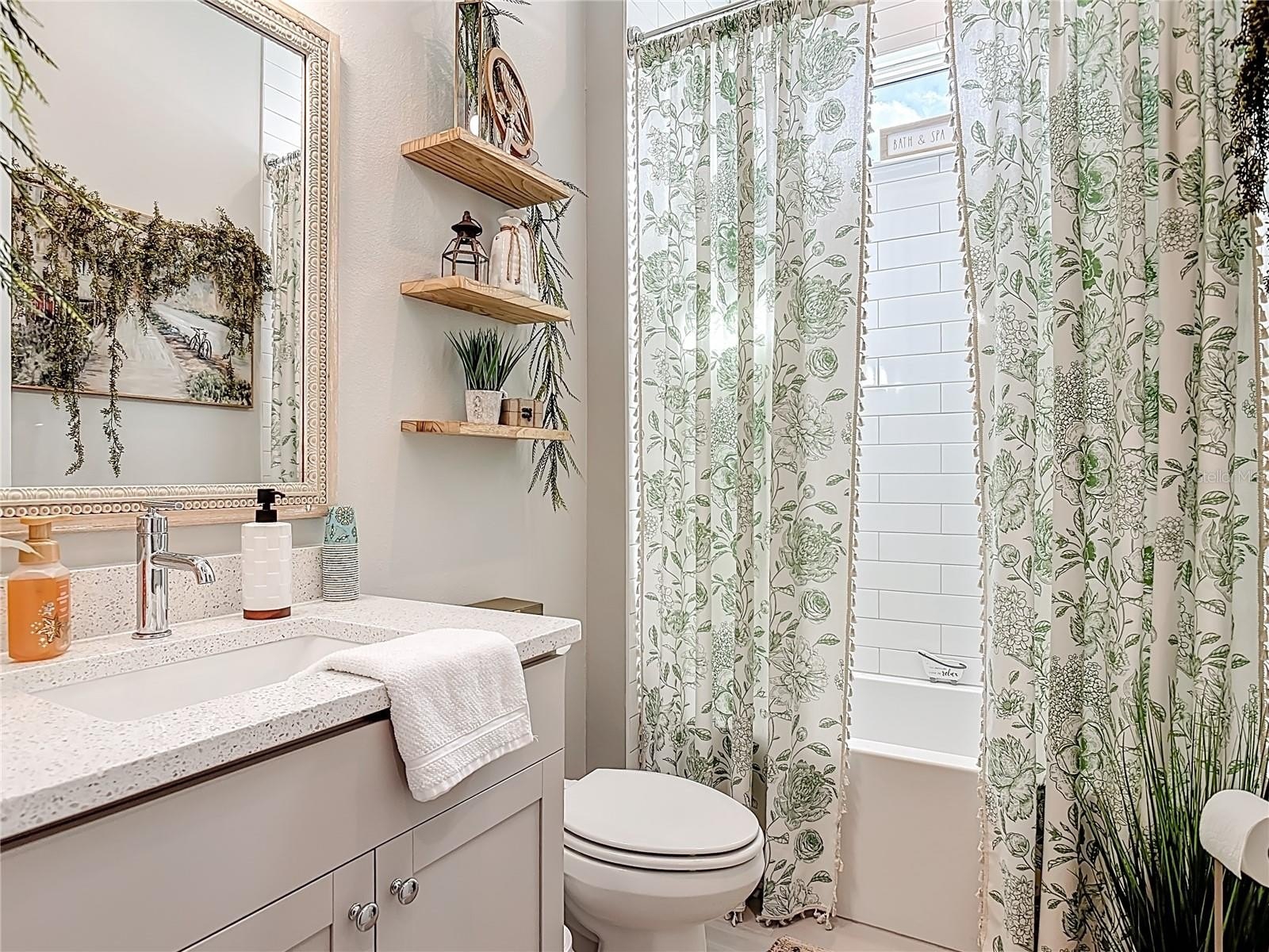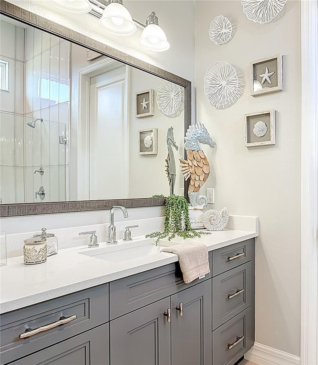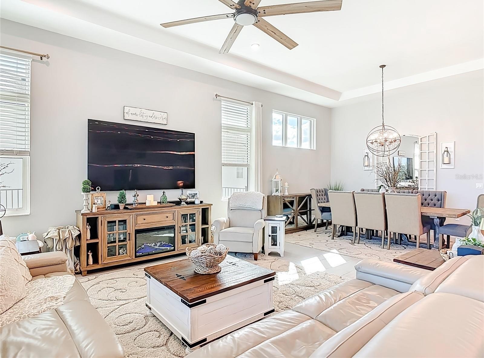 Enjoy Florida living at its best with an extended front porch and a spacious, extended screened-in lanai complete with a jacuzzi and prepped for a future summer kitchen. The fully fenced backyard offers great outdoor enjoyment. Tasteful window treatments, multiple ceiling fans, stylish lighting, and GoVe exterior accent lighting beautifully highlight the home's architectural details and add to its inviting curb appeal.