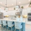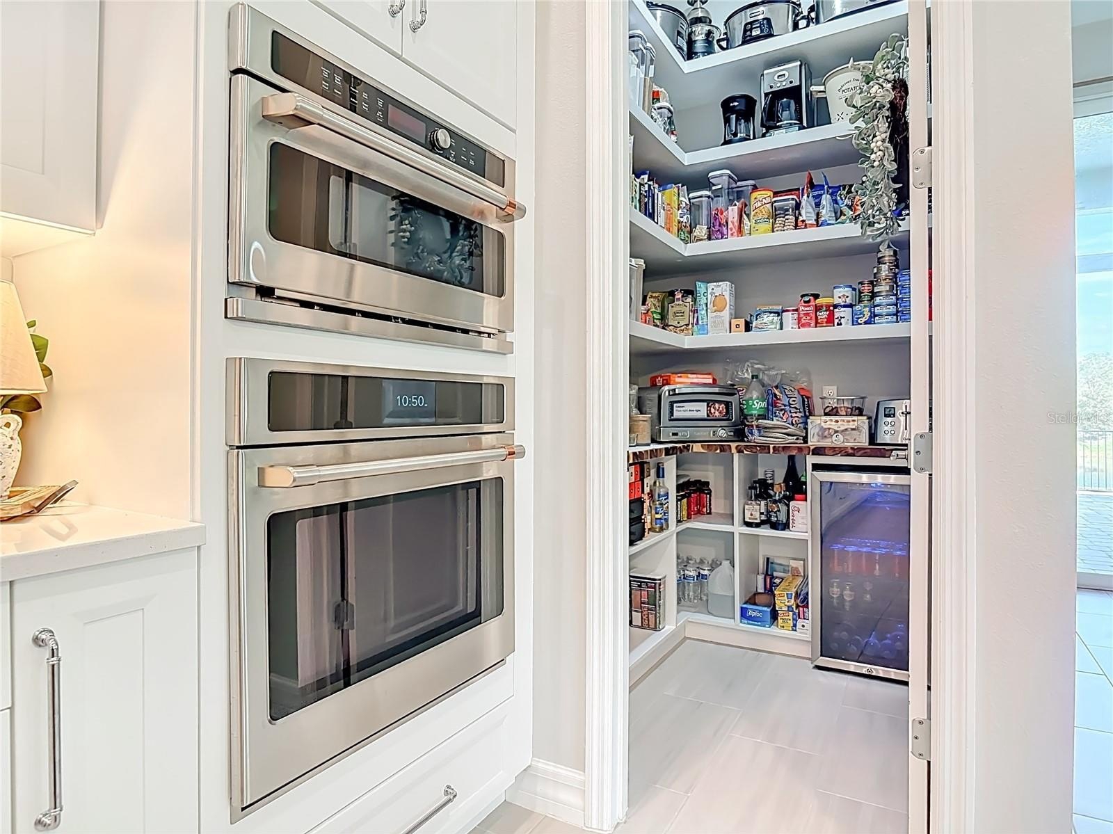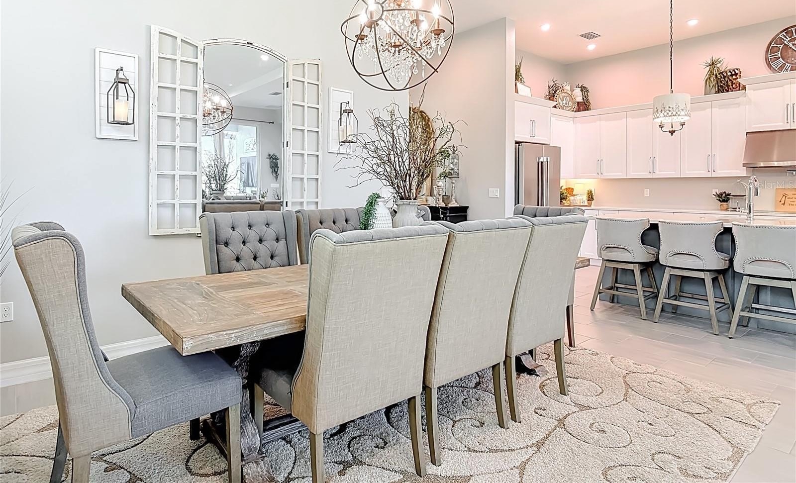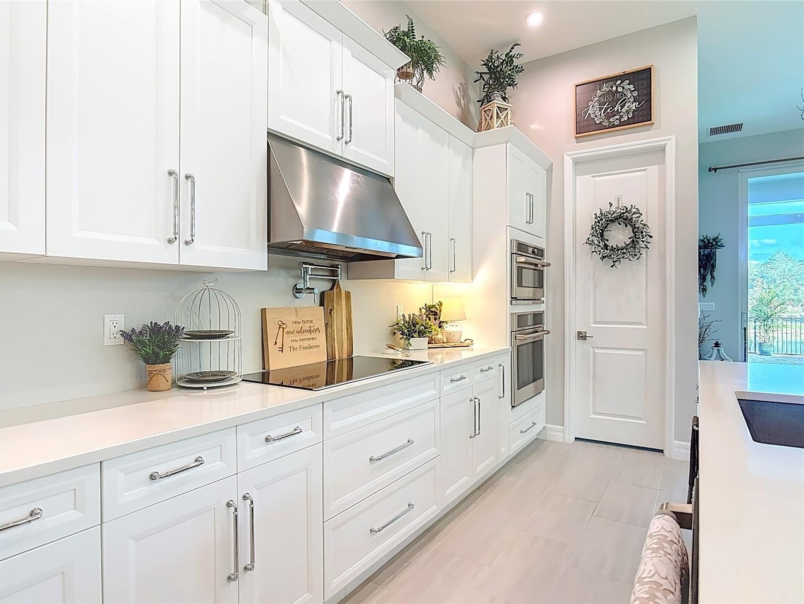 The gourmet kitchen is a showpiece designed for both everyday living and entertaining. It features a custom island wrap, pot filler, stunning chandeliers, included barstools, and a pantry with custom shelving and a beverage fridge. All appliances stay. A flex room with custom-built-ins and barn doors offers the ideal space for a home office or creative retreat.