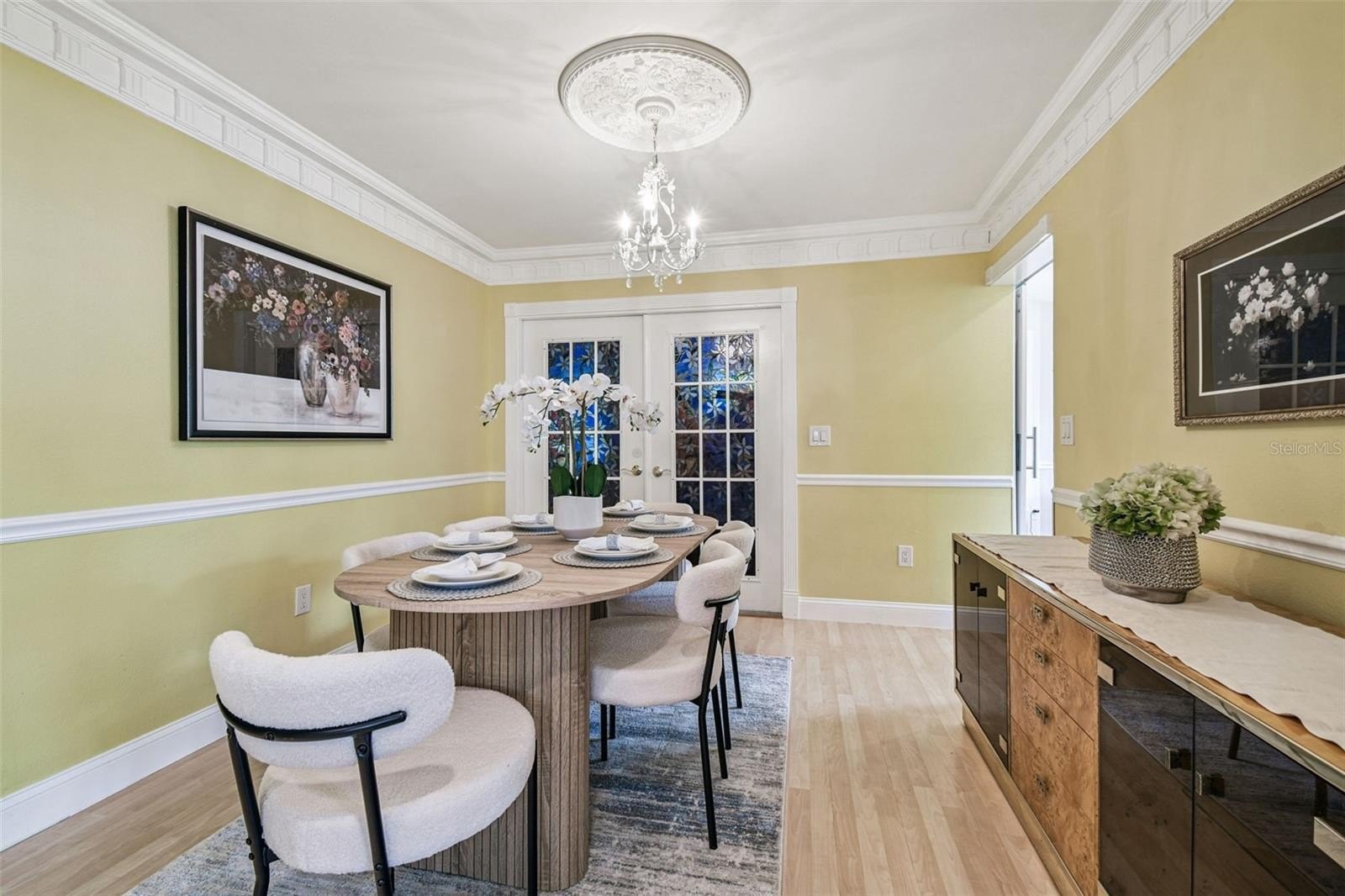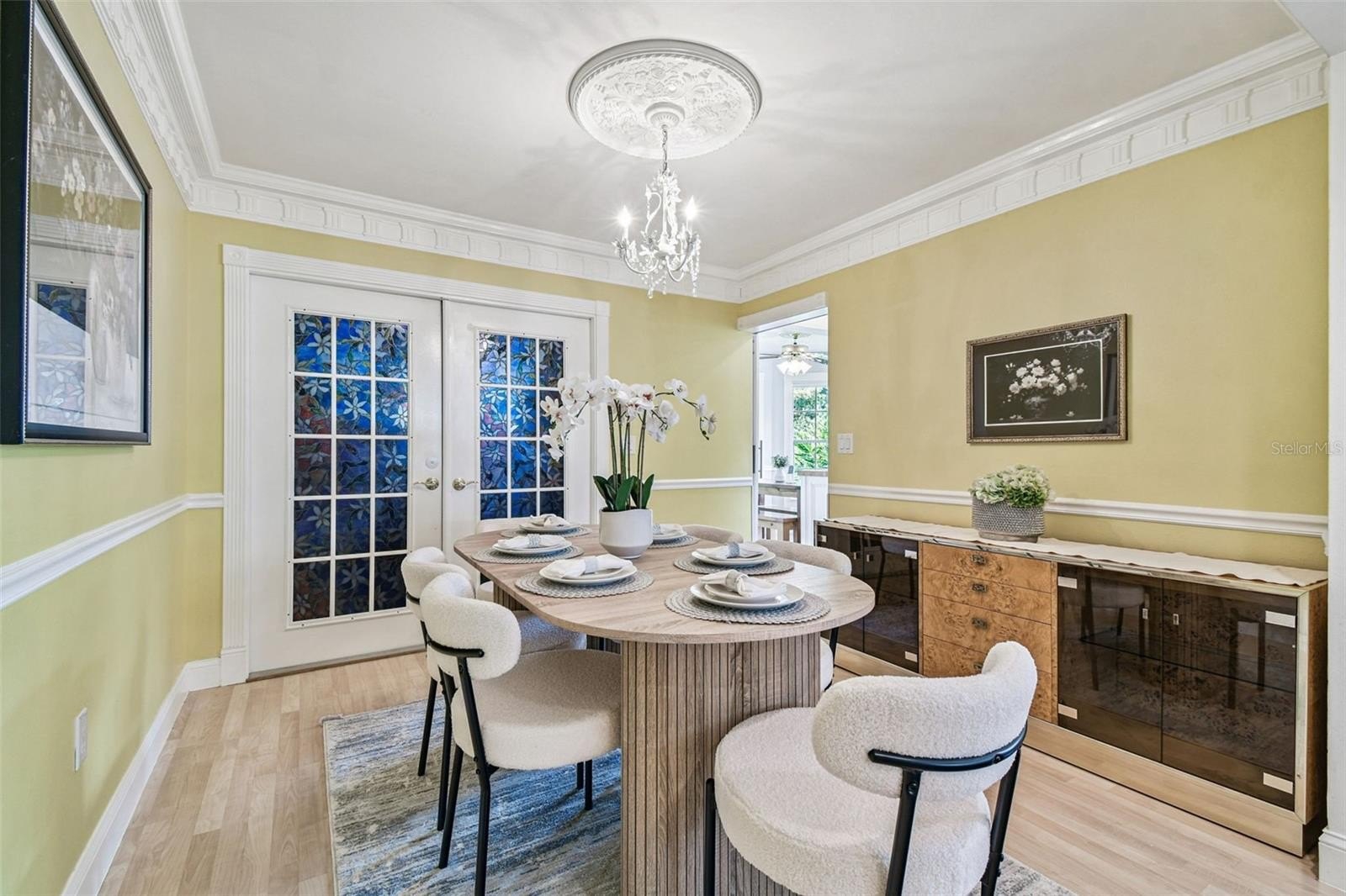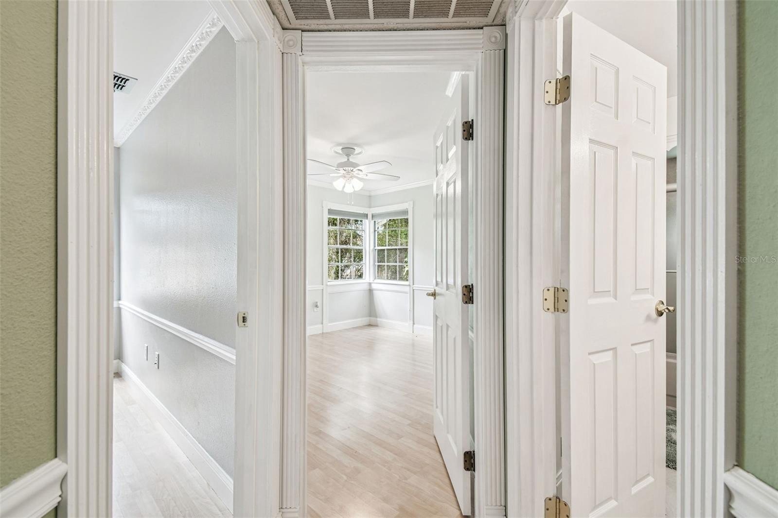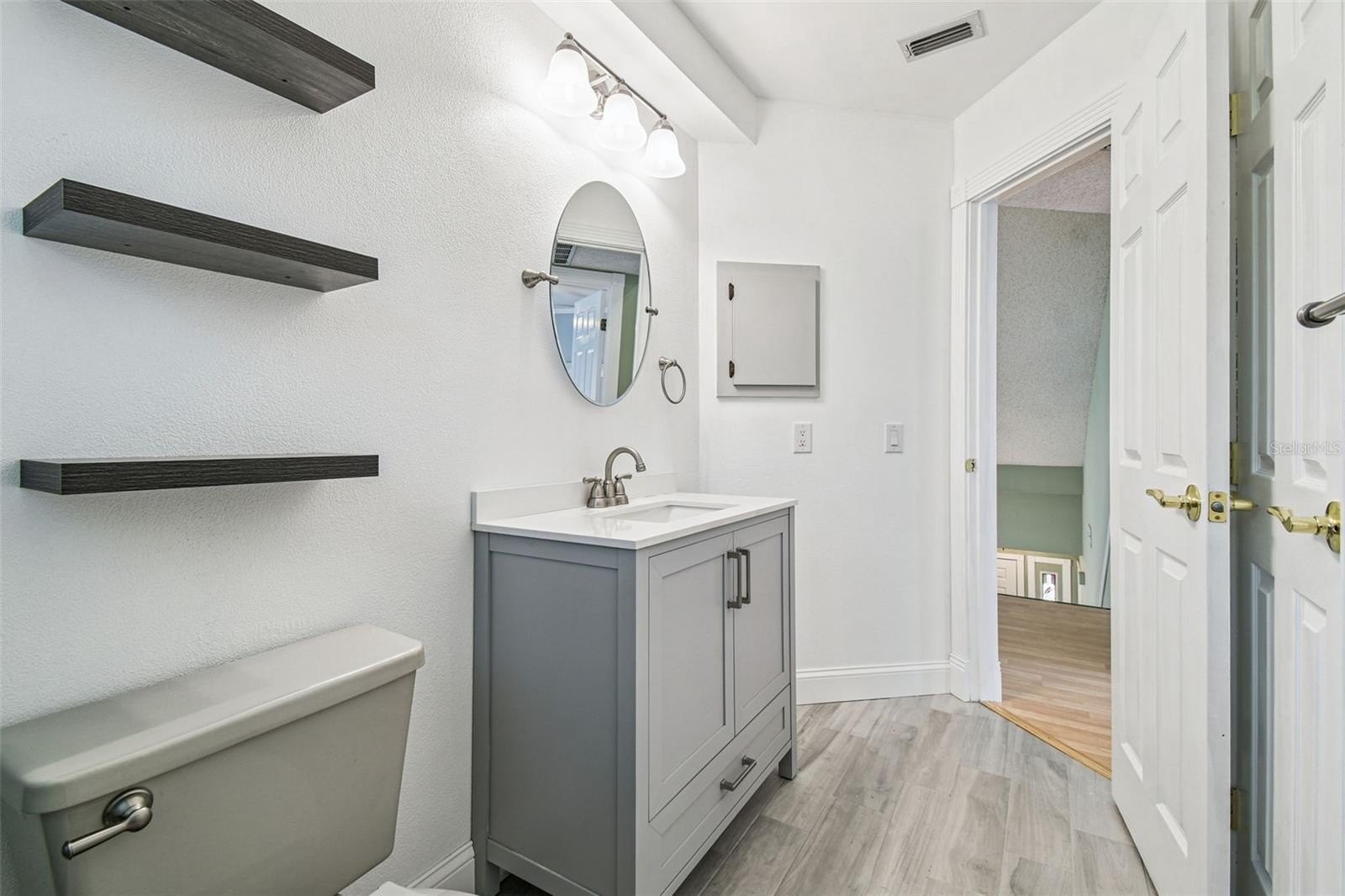 Tired of cookie-cutter homes? You MUST SEE this distinct and exquisite 3 bedroom plus office/bonus/ or 4th bedroom (no closet), 2.5 bathroom, 2 car garage, two-story home located in beautiful Nature's Hideaway, centrally located in New Port Richey/Trinity, FL. Old charm mixed with modern design is sure to please! Charming yellow exterior covered front porch and paver walkway is the ideal welcoming for your guests. Open the doors to the breath-taking 2-story high ceilings- 20 ft- open floor plan and amazing hardwood staircase. Focal point of the living room is the WOOD burning fireplace with mantle, brick chimney, and detailed trim. Stained glass insert will for sure be a conversation piece. The home provides an inclusive and cozy feel with tons of bright lights. All windows have custom trim and you can see the intricate trim details as you walk throughout this "old world charm" home. Dining room connects to the living room for easy entertaining. Surround sound in place. Tucked in the back for privacy is the primary retreat with ensuite. This very spacious room offers a french door entry and french doors to the covered back porch. Newly remodeled ensuite has dual sinks, walk-in tiled shower with durable corian base, a walk-in closet and garden tub. Tastefully done and with a modern touch. 1/2 bath on main floor for guests. The kitchen has been remodeled with can lighting, extensive trim work, custom backsplash, sparkling quartz counter tops, stainless steel appliances, and light and bright 42 inch cabinets/drawers. Beautiful views of the outdoors from the bumped out bay windows trimmed with custom woodwork. Pantry is a walk-in with a barn door. Upstairs you have 2 spacious bedrooms and a flex/bonus/office space. This could easily be a 4th bedroom. This unique area has the stained glass window that has been inserted into a built-in bookcase and has a vaulted ceiling. The 2nd FULL bathroom is shared and has been remodeled as well. The balcony overlooking the main floor is captivating. Outdoor provides a partially fenced-in yard with detached shed/workshop and can be whatever your lifestyle desires! Currently a beautiful garden takes over bringing color and solitude. This perfect home is located near medical, grocery, restaurants, entertainment, and shopping. A-rated schools. Newer roof 2024, gutters, all appliances stay. Garage does have a security side door. NO CARPET! NO CDD, LOW HOA, NO FLOOD ZONE. Please make sure to view the virtual walk through video.
