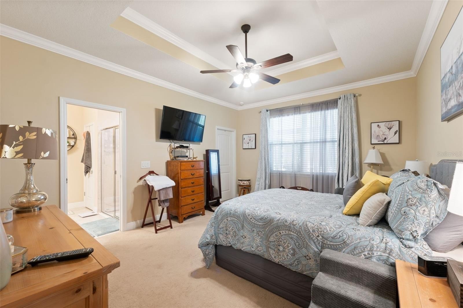 The primary suite offers a private retreat with a spacious layout, walk-in closet, and ensuite bath featuring dual sinks and a step-in shower. The fourth bedroom includes its own full bath and walk-in closet, making it ideal for guests, extended family, or mom’s perfect space to unwind.