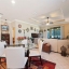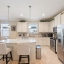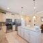 Step inside to an open, light-filled floor plan featuring high ceilings and a seamless flow between the main living, dining, and kitchen areas. The chef’s kitchen showcases stone countertops, a large island, stainless-steel appliances, and plenty of cabinet and pantry storage — perfect for both everyday life and entertaining.
